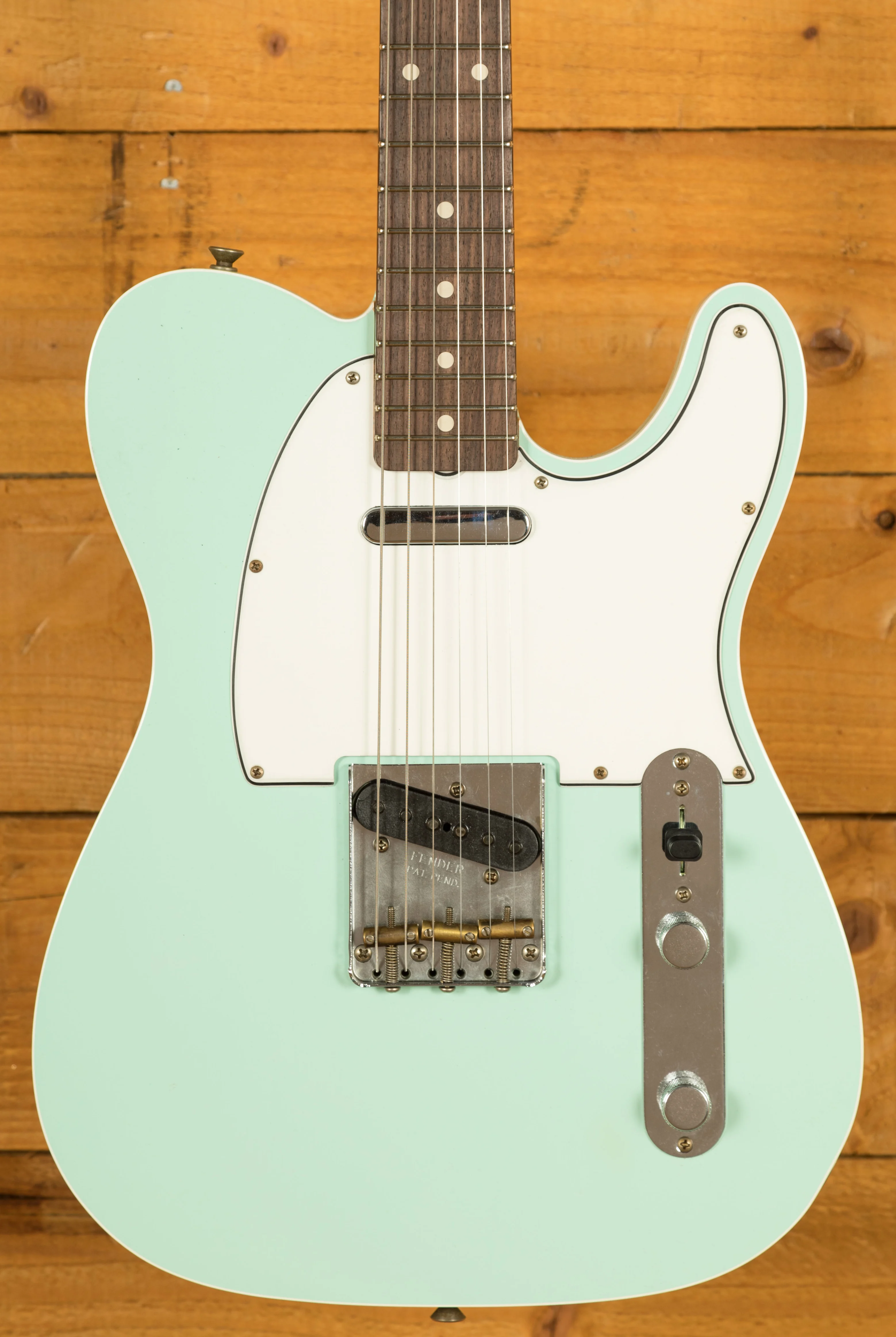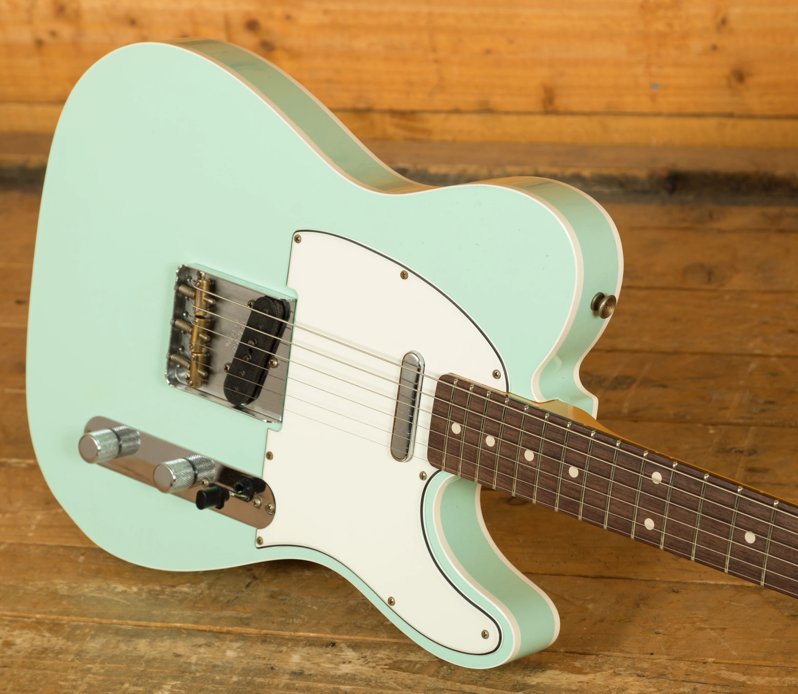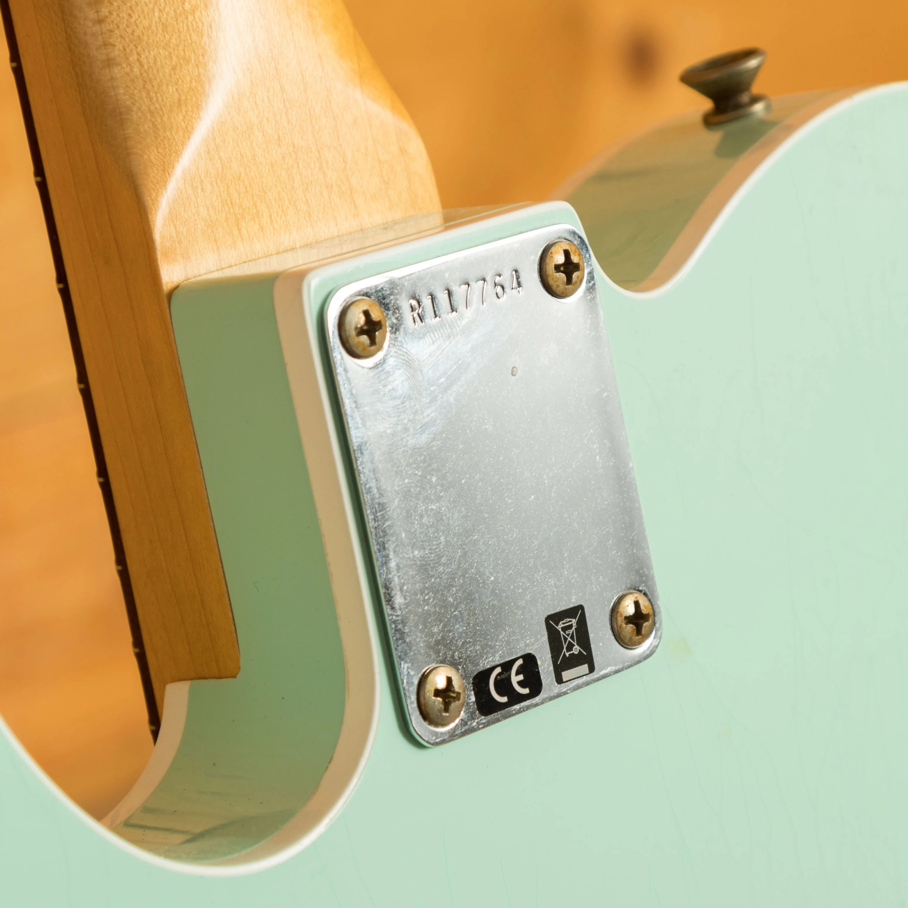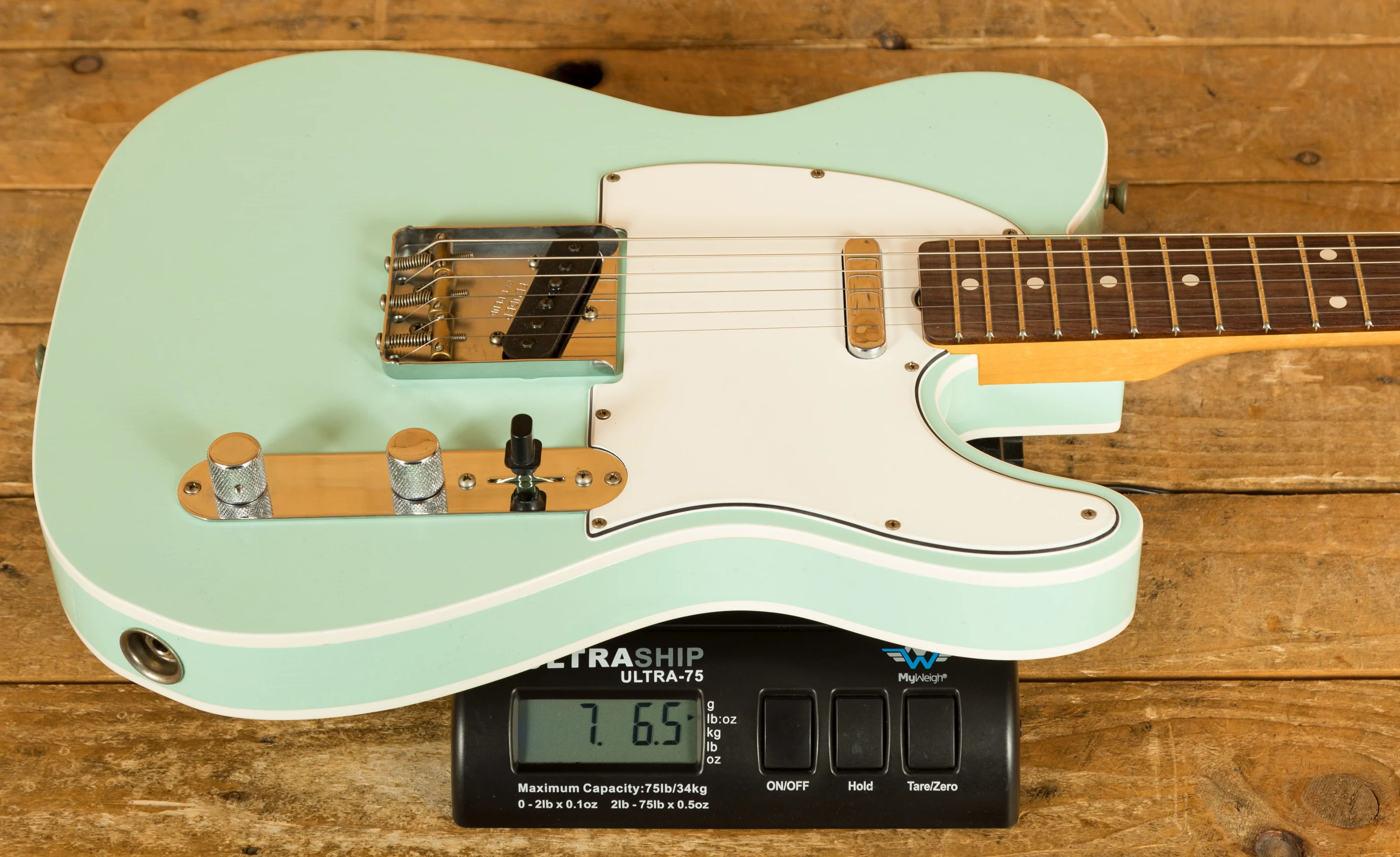 The Alder body is finished in a majestic Surf Green nitrocellulose lacquer. Authentically aged, this finish will wear beautifully with time and develop its own character even further. It also allows the natural resonance of the body to sing and sustain much more effectively compared with other more modern finishes.