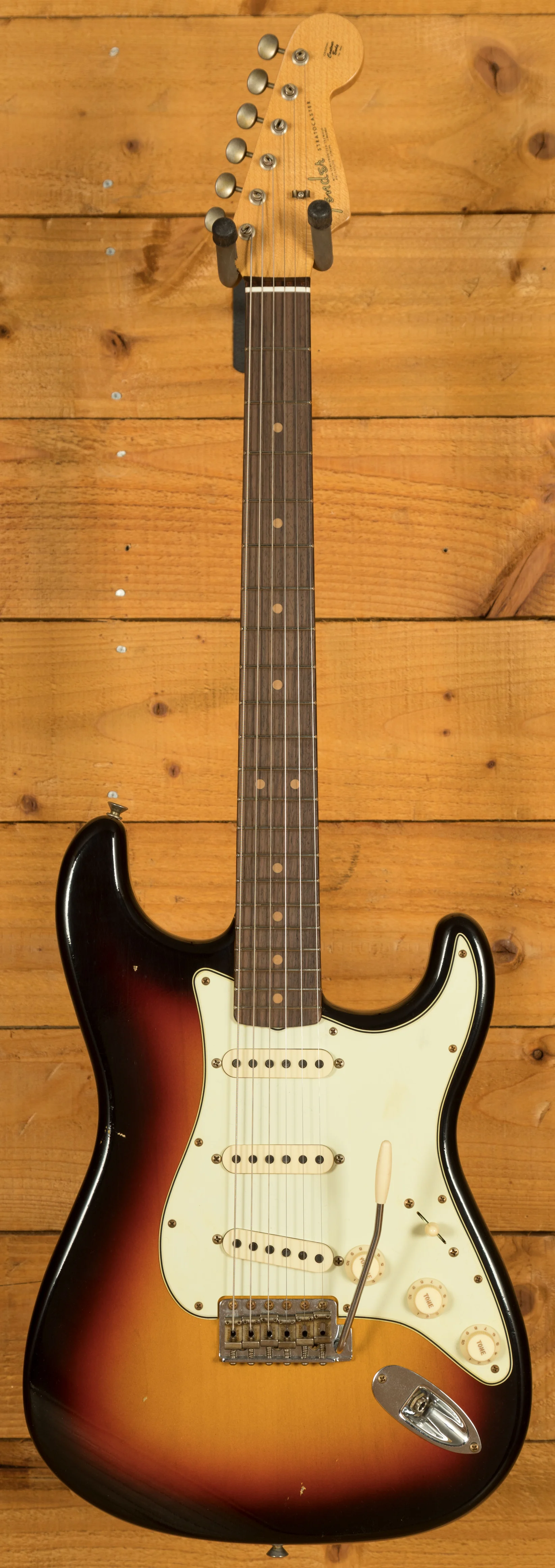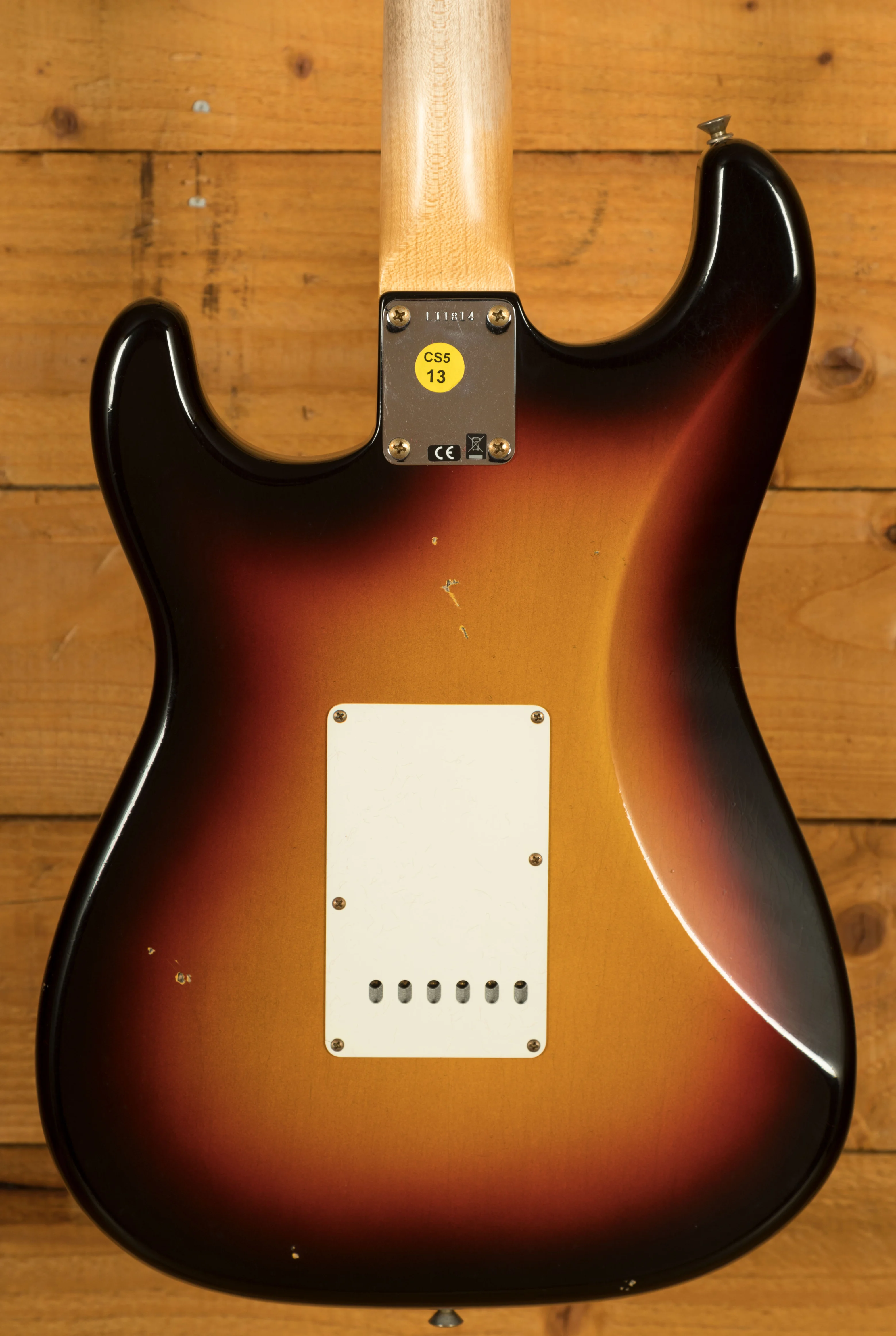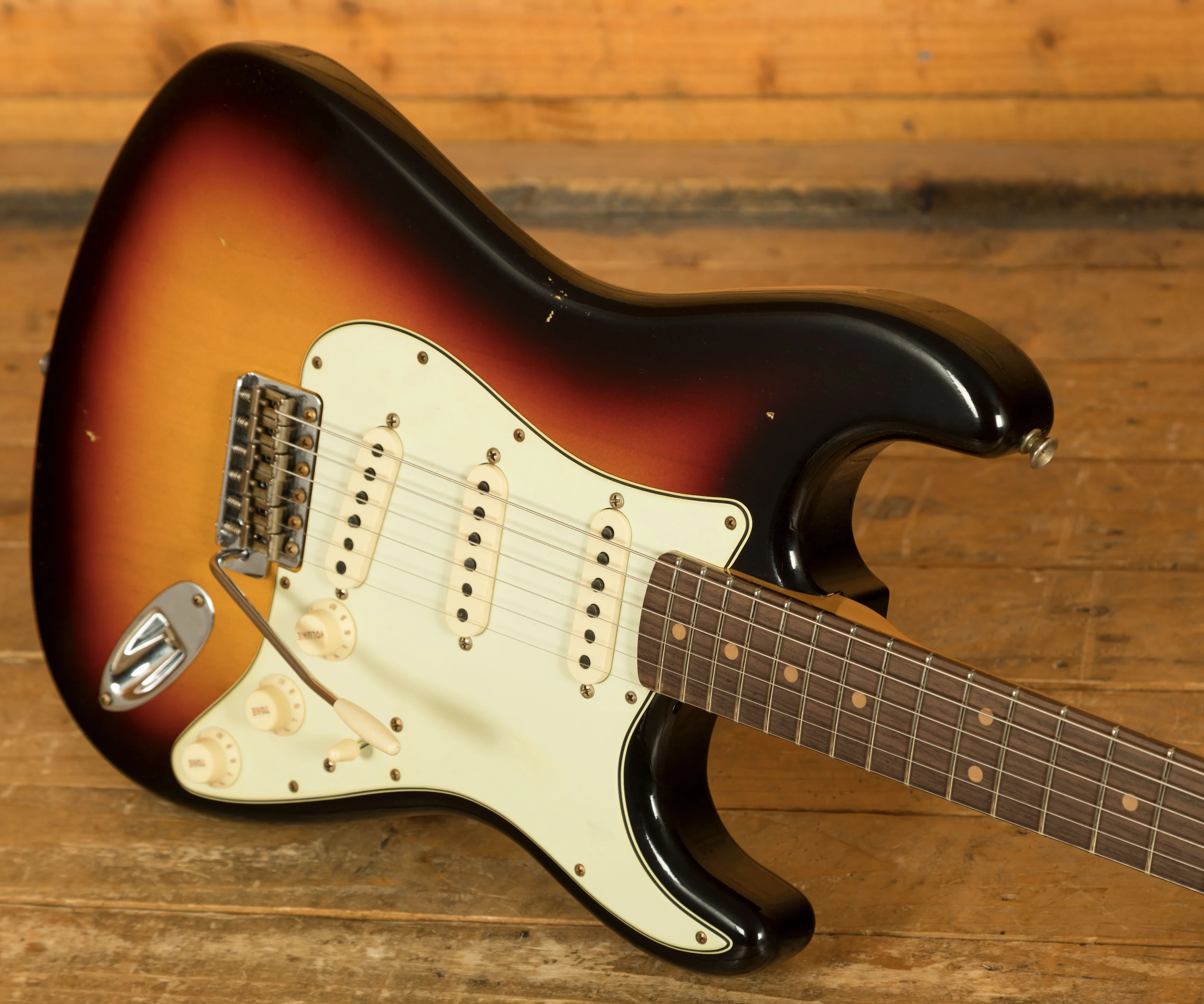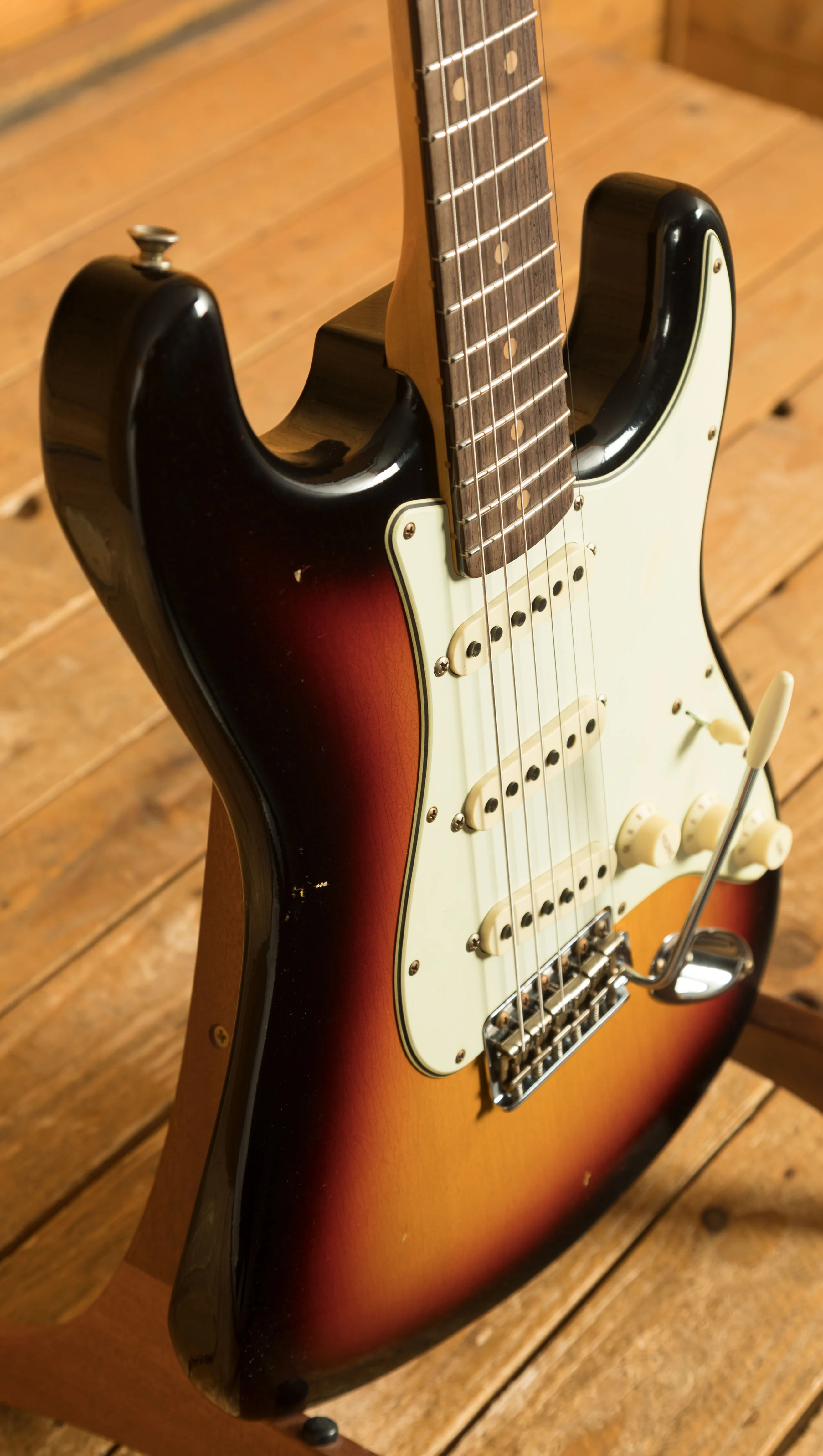 The sort for lightweight Alder body is finished in a classic 3-Tone Sunburst nitro lacquer with a Journeyman Relic. Authentically aged, this finish will wear beautifully with time and develop its own character even further. It also allows the natural resonance of the body to sing and sustain much more effectively compared with other more modern finishes.