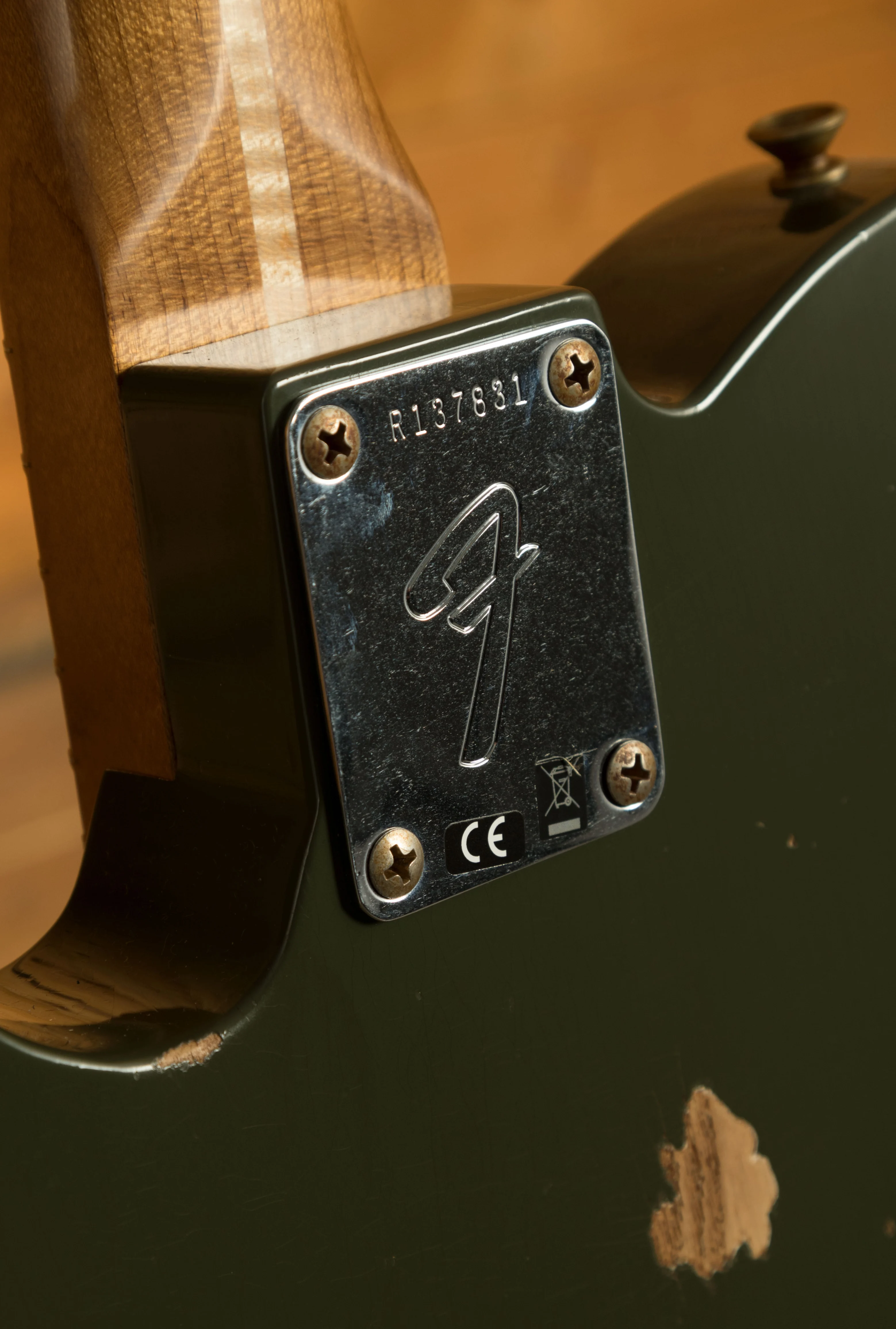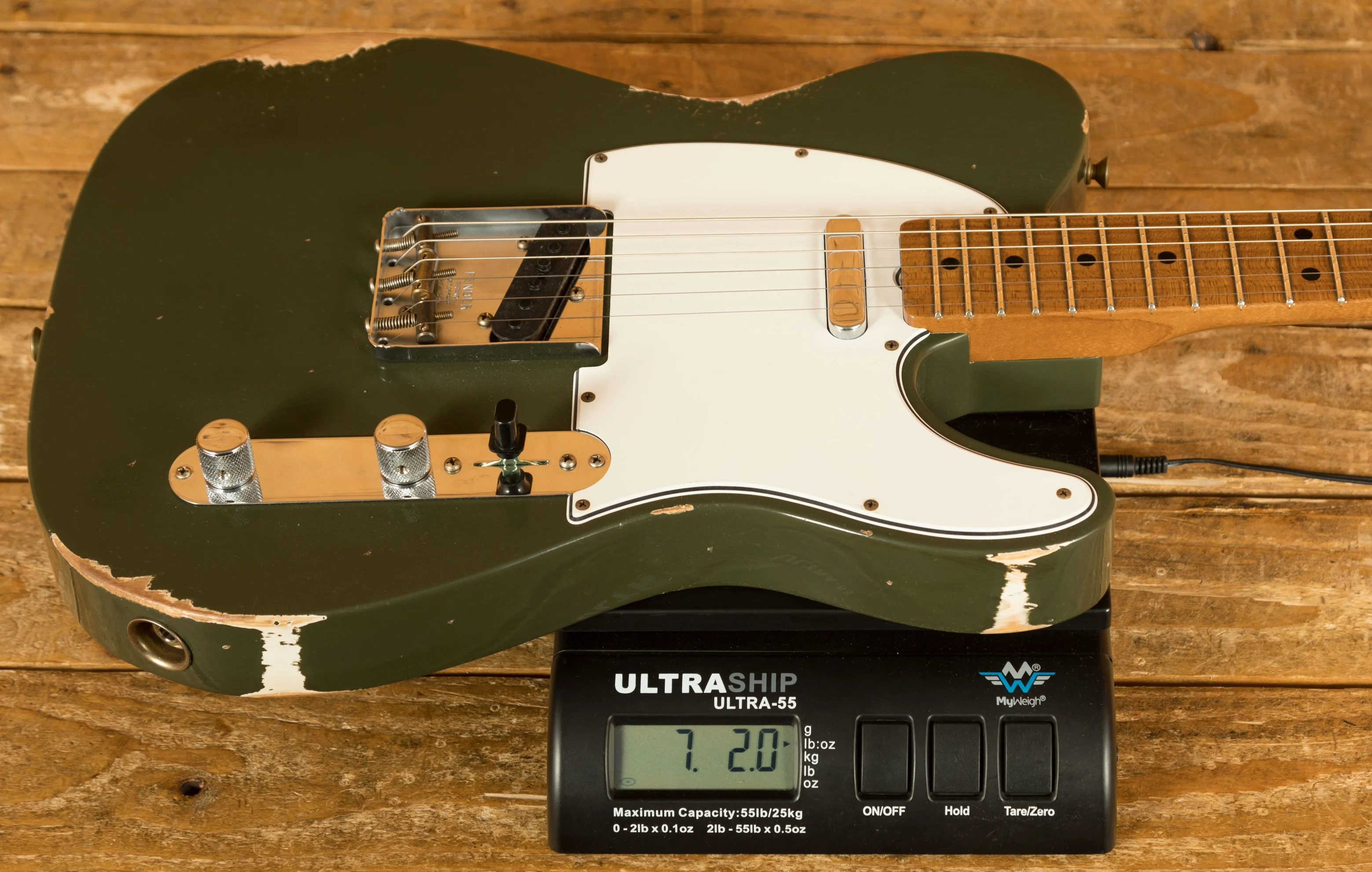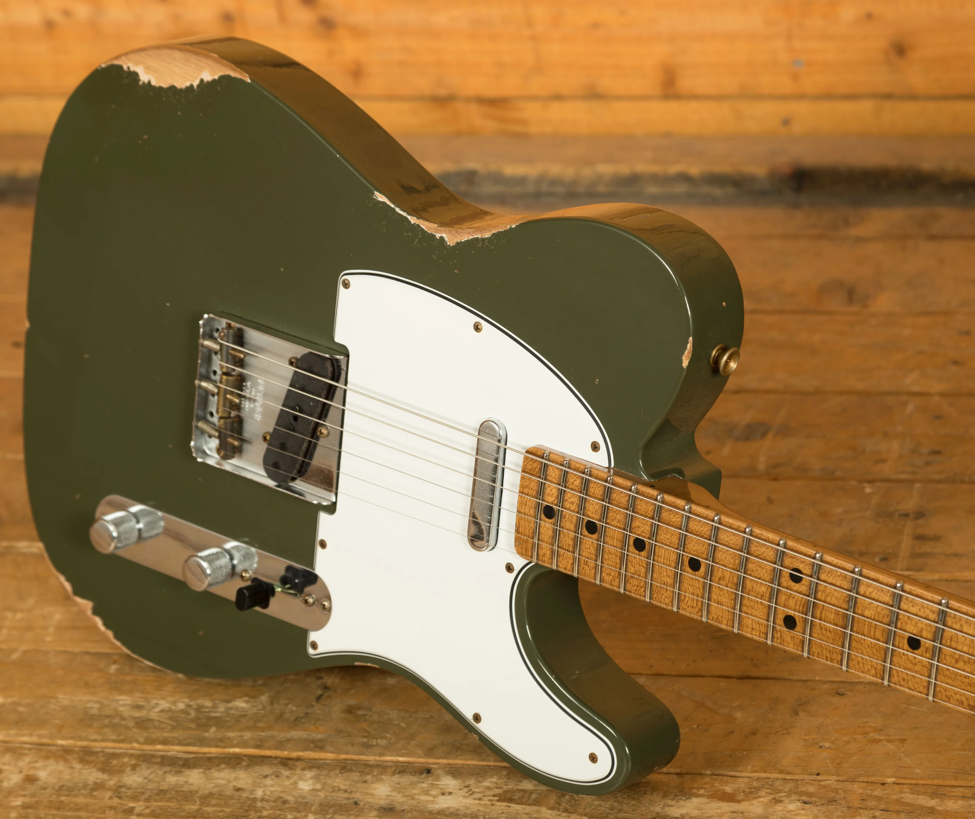 With an Ash body, finished in Olive Green, this guitar is super resonant and has a really bold tone. The Relic is a lightly aged nitro finish; this gives the look and feel of a vintage guitar that has seen it's fair share of use with good care taken. This finish will wear beautifully with time and develop its own character even further. It also allows the natural resonance of the body to sing and sustain much more effectively compared with other more modern finishes.