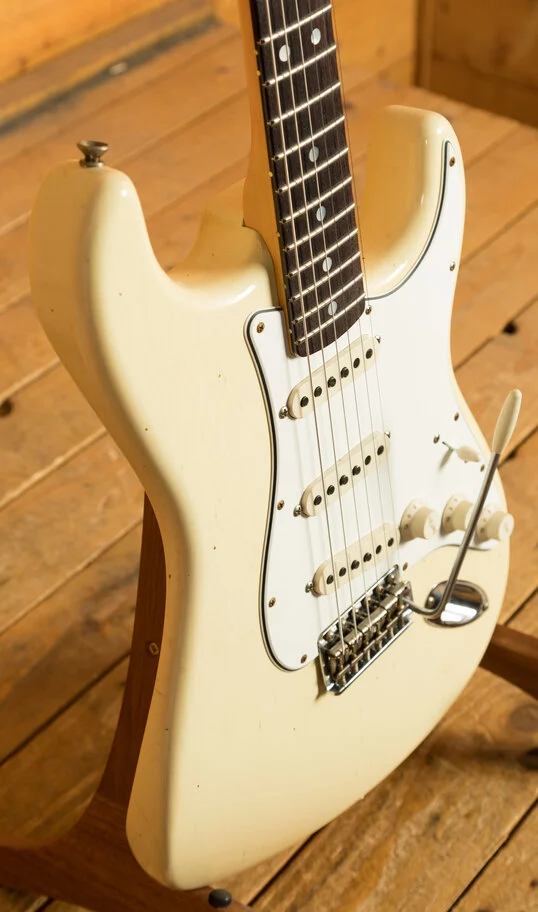 With a traditional Alder body this guitar is super resonant and has a really bold tone. The Journeyman Vintage White finish gives the appearance of a well-loved and gigged guitar, it's totally authentic and really cool. The level of attention to detail that has been applied to this guitar is simply out of this world!
