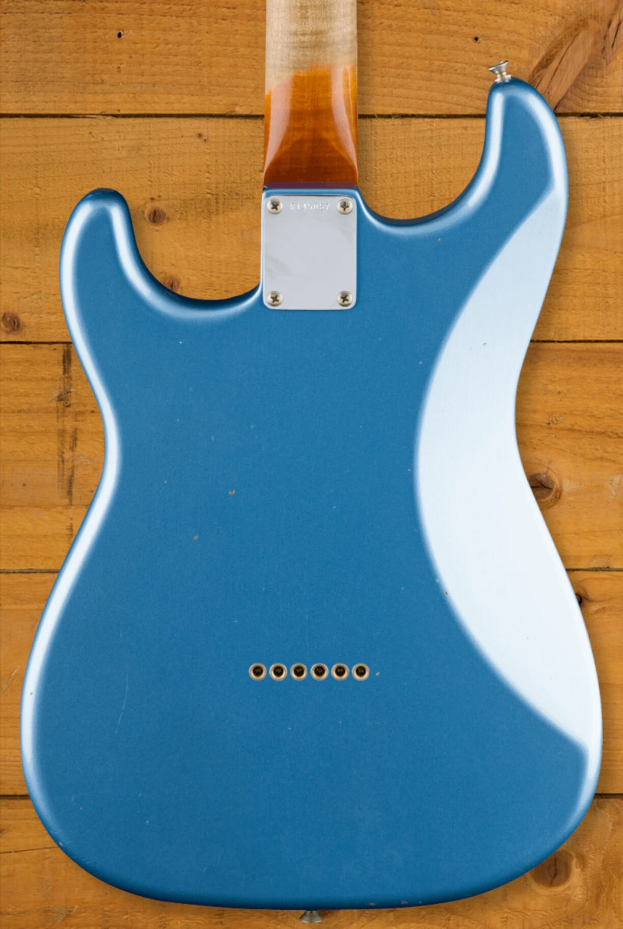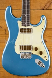 This Strat features a select roasted alder body. This piece of alder has been hand selected due to its lightweight nature and then roasted to enhance its stability and resonance. The body feature a faded lake placid blue nitrocellulose lacquer, when has been carefully aged by the Fender Custom Shop team. This guitars ageing level is relic so you can expect to see lots of lacquer checking, dings, and wear across the guitar.