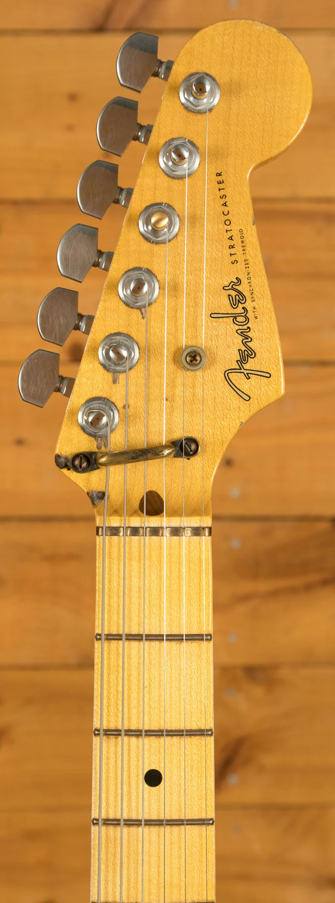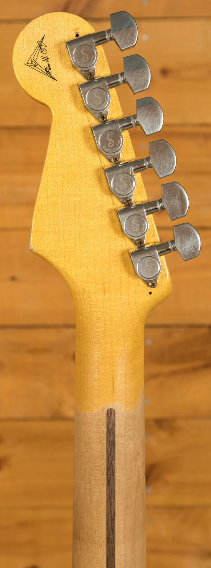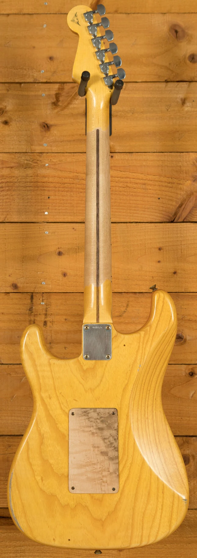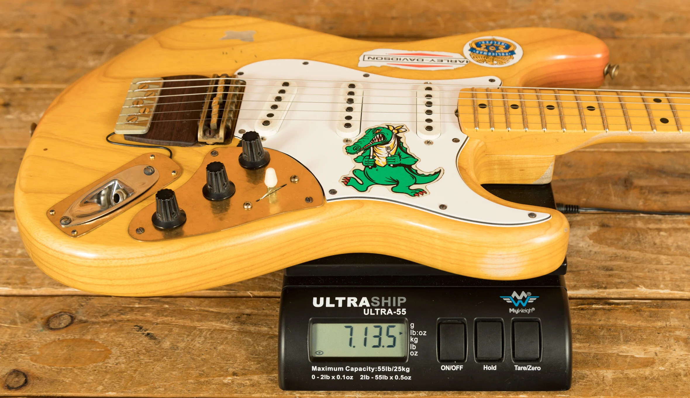 A 1-Piece sort for lightweight Ash body has been finished in a super awesome natural nitro lacquer, it's a real beauty. This guitar has gone through the full masterbuilt treatment. Austin MacNutt has painstakingly examined every last detail of the legendary original to ensure he creates a faithful replica. This guitar has been beautifully aged and will continue to age as you play due to the super thin Nitro lacquer used. The relic is truly unbelievable; the attention to detail here is meticulous and super authentic