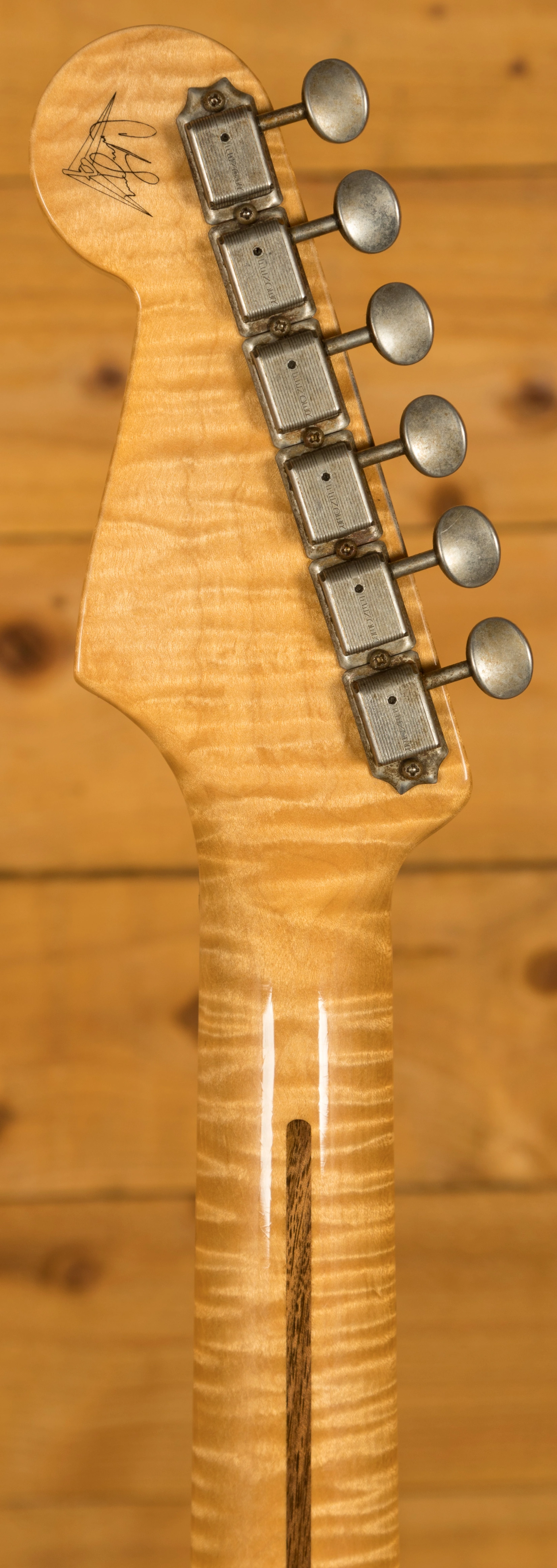 The Sassafrass body is finished in a really authentic Closet Classic Sunburst. This finish will wear beautifully with time and develop its own character even further, it also allows the natural resonance of the body to sing and sustain much more effectively. The wear patterns are incredible, so genuine and authentic, Carlos has clearly learnt from the best and his relic technique is flawless.