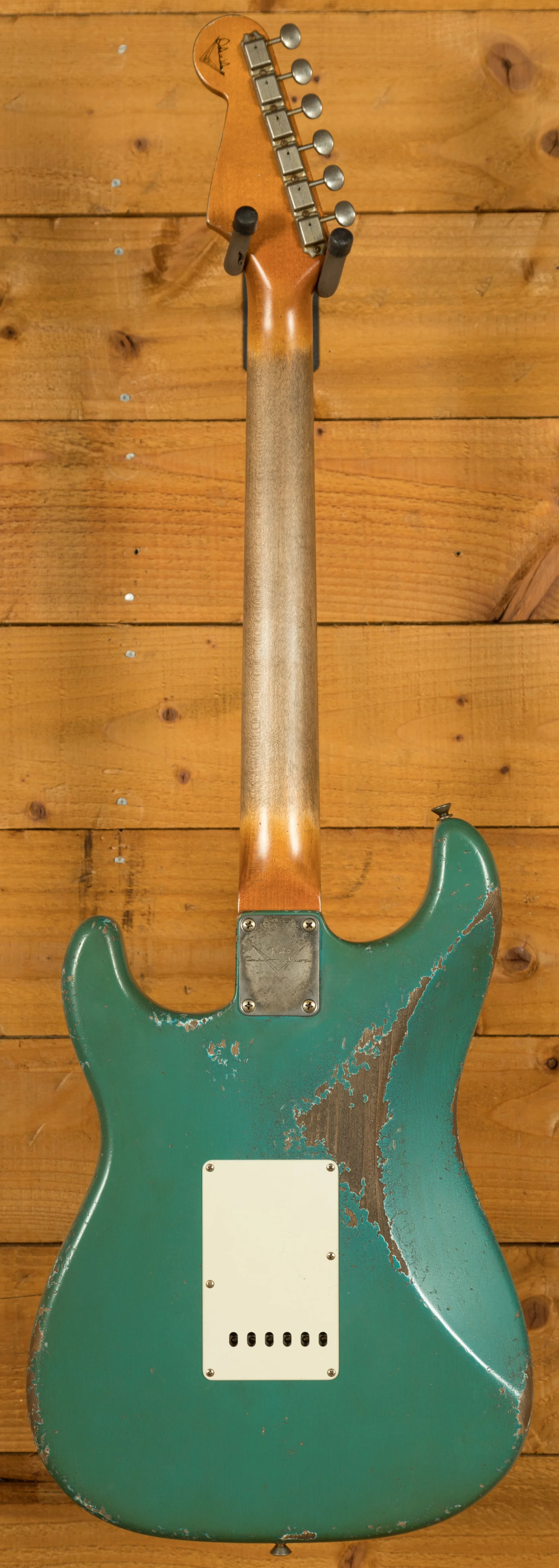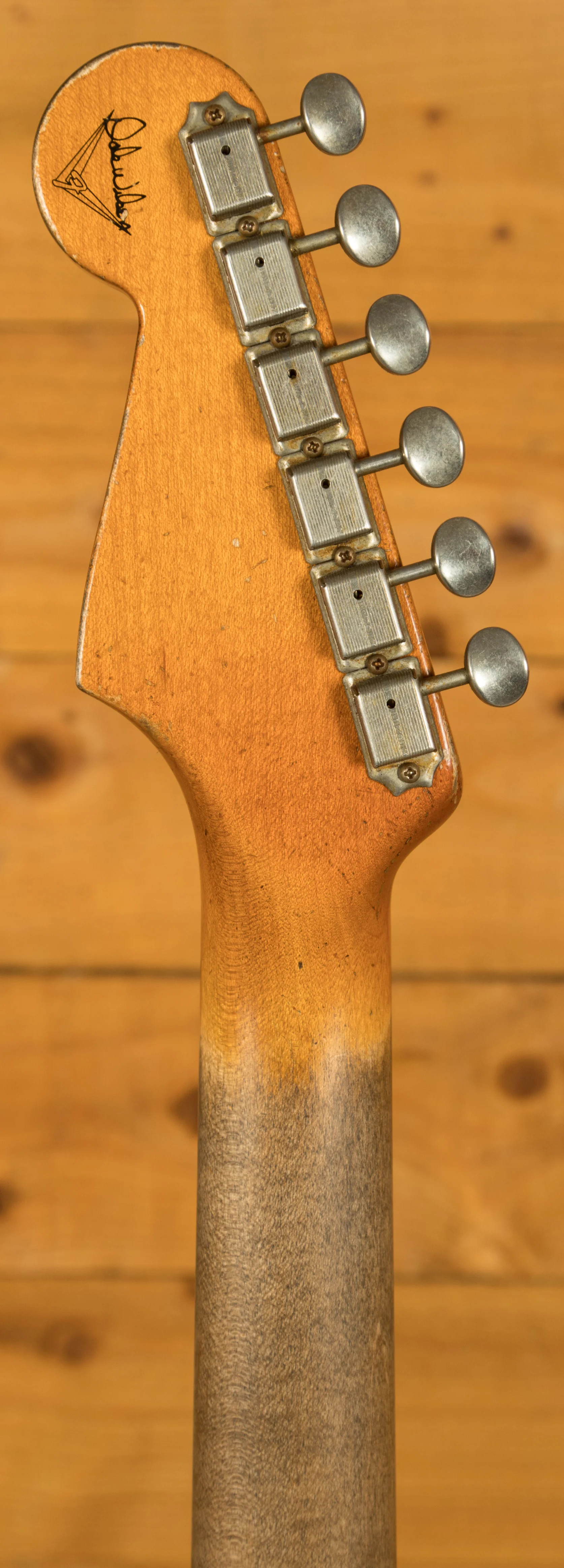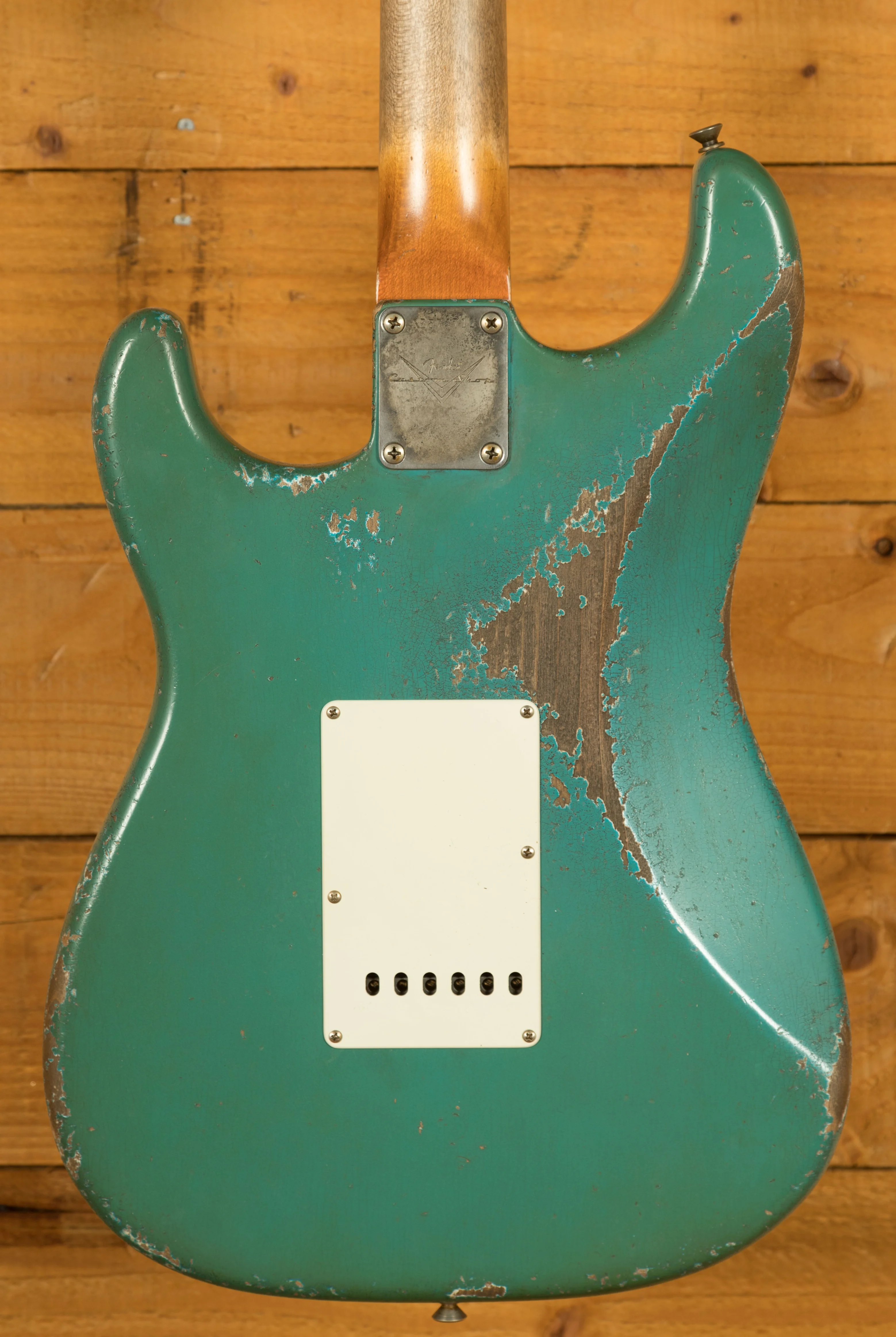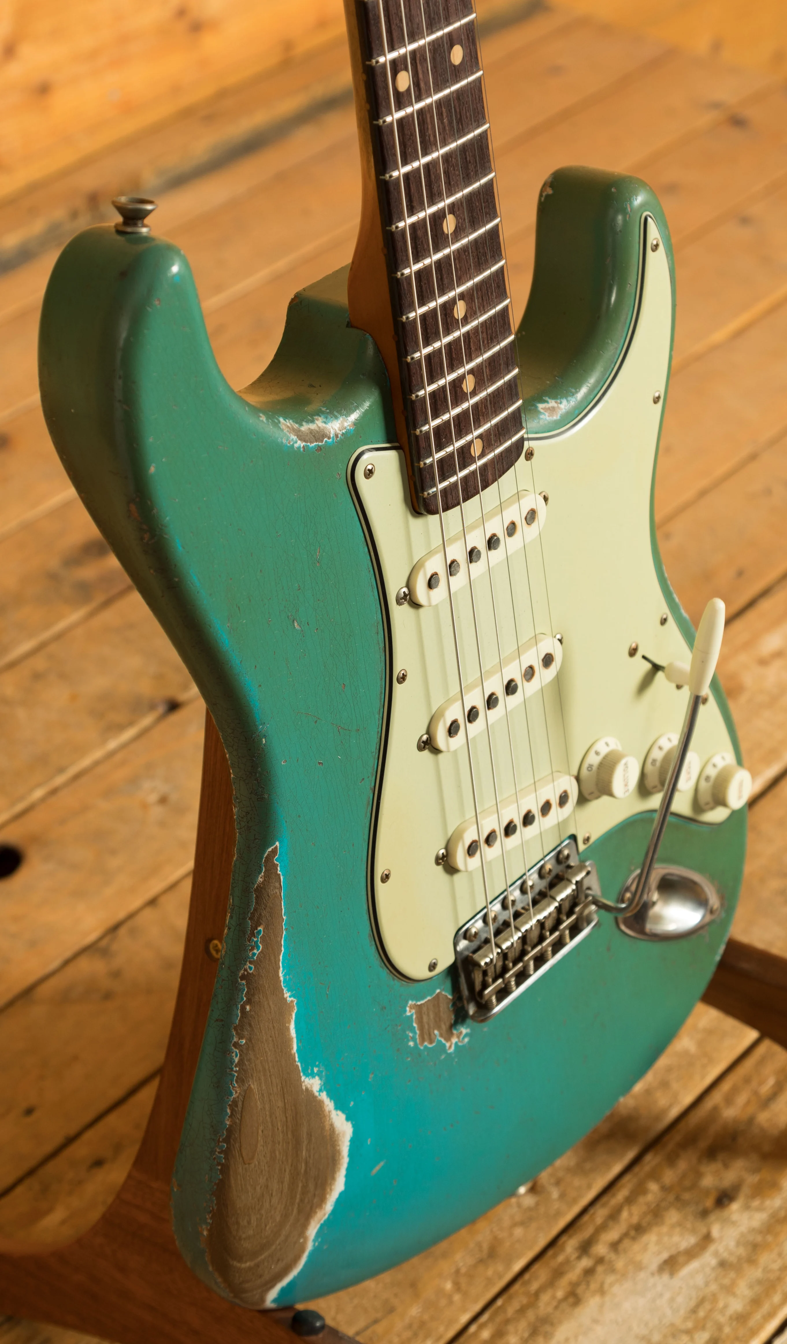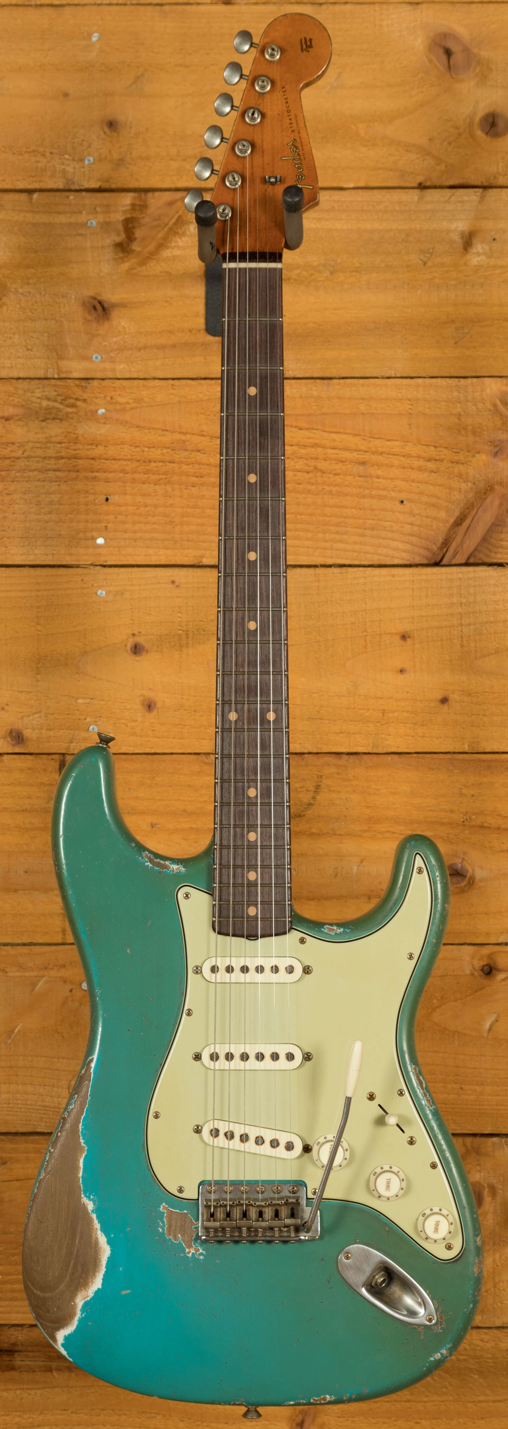 A sort for lightweight Alder body is finished in a stunning Aged Taos Turquoise nitro lacquer. Authentically aged, this finish will wear beautifully with time and develop its own character even further. The thin nitro finish also allows the natural resonance of the body to sing and sustain much more effectively. Dale is the King of relic work at the custom shop and this certainly doesn't disappoint though!