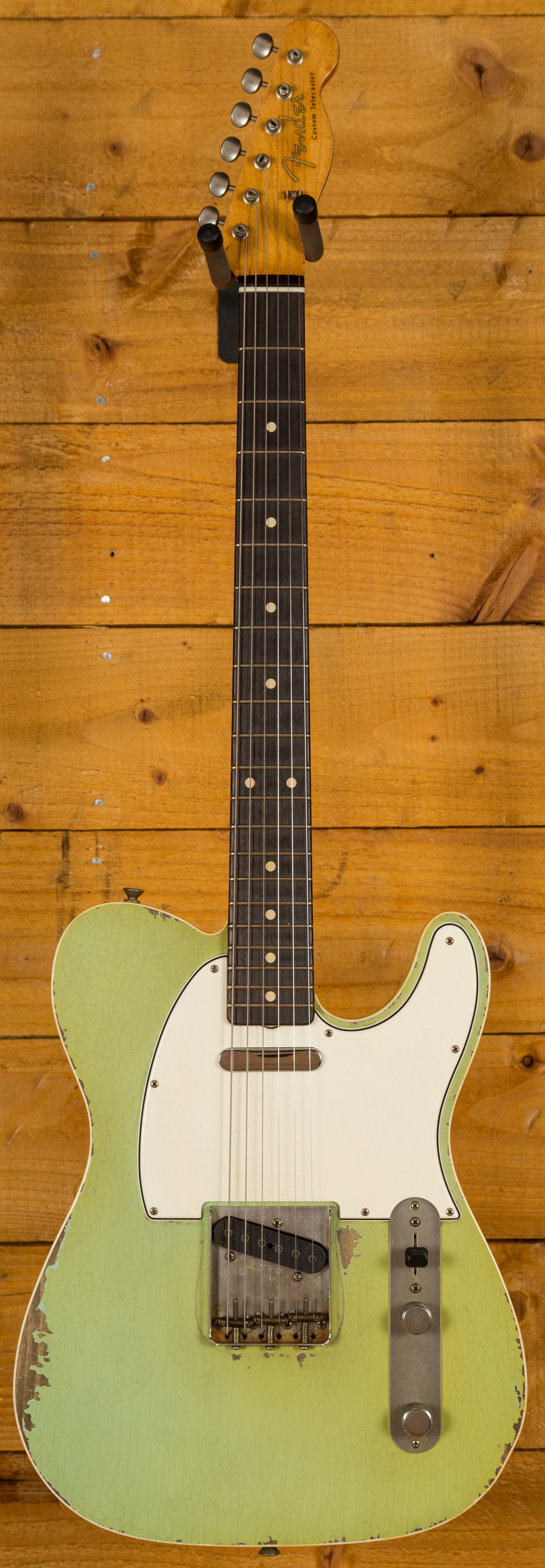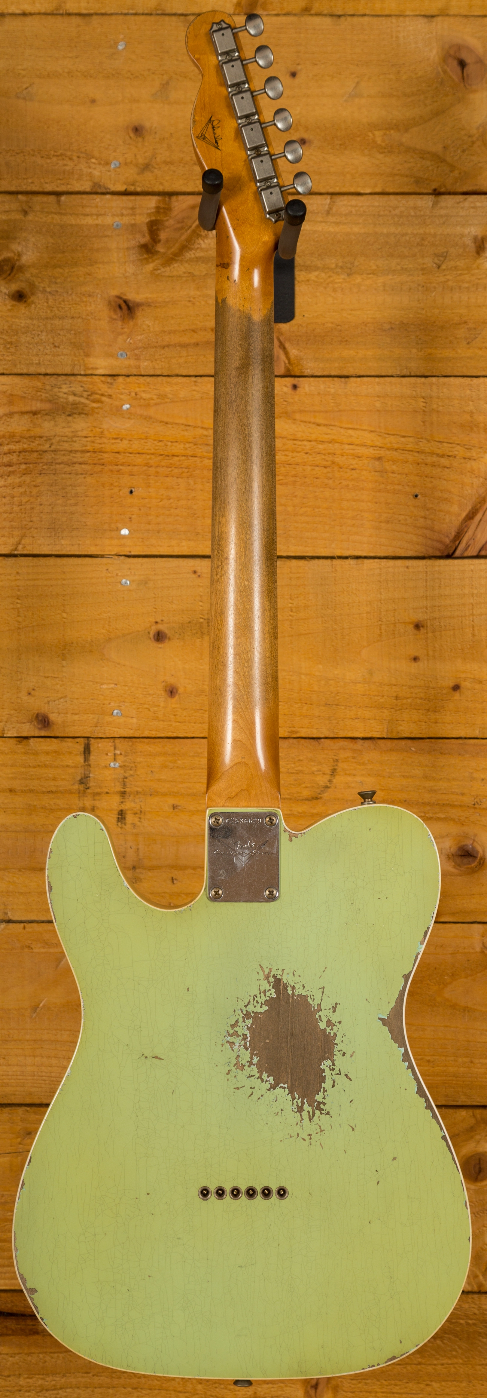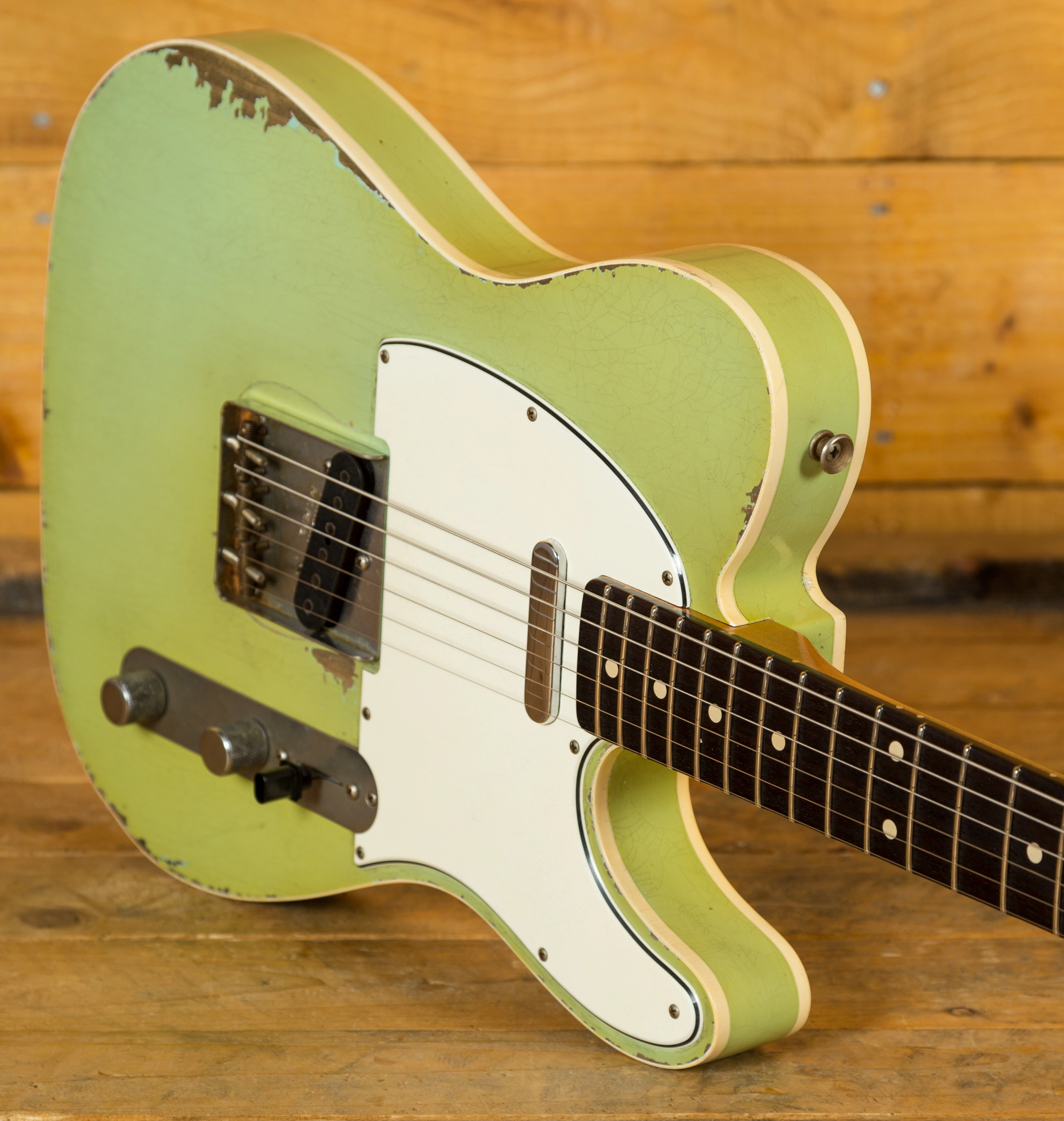 The Alder body is finished in a really authentically aged Surf Green and double bound. This finish will wear beautifully with time and develop its own character even further, it also allows the natural resonance of the body to sing and sustain much more effectively.