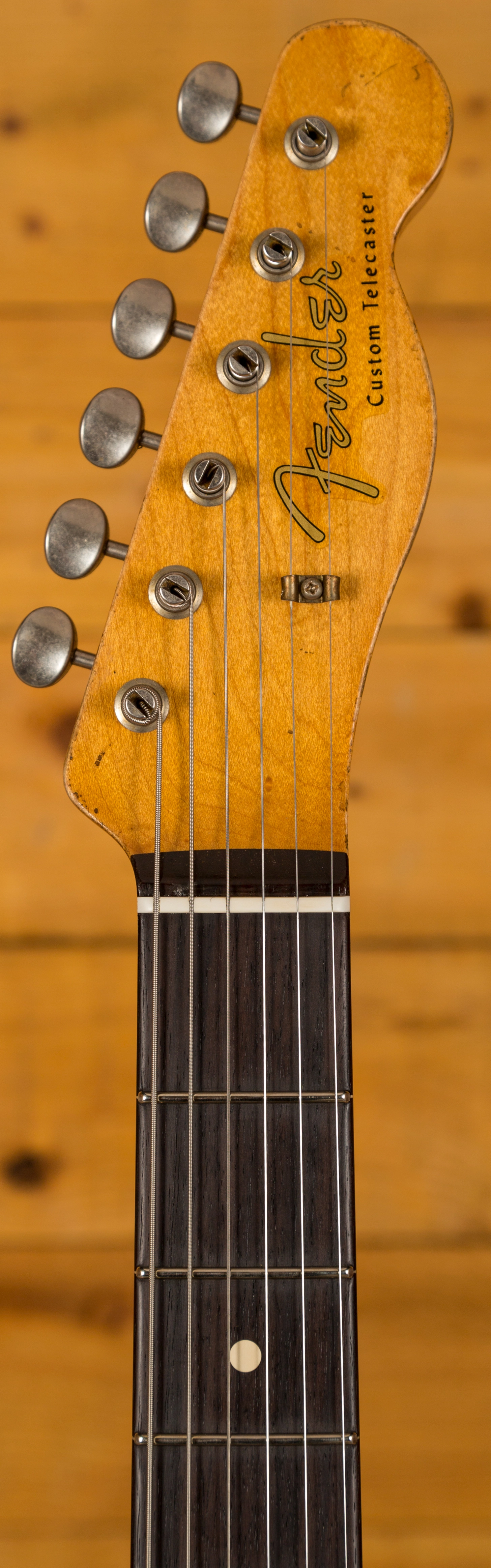 The plain grain Maple neck is real comfortable. With a '65 Strat C profile, 7.25"-9.5" compound radius and 6105 frets it's super resonant and feels incredible underhand. The AAA grade Rosewood fingerboard is a treat to play, perfectly balanced and with flawless playability right up the neck, it's a real player's piece.