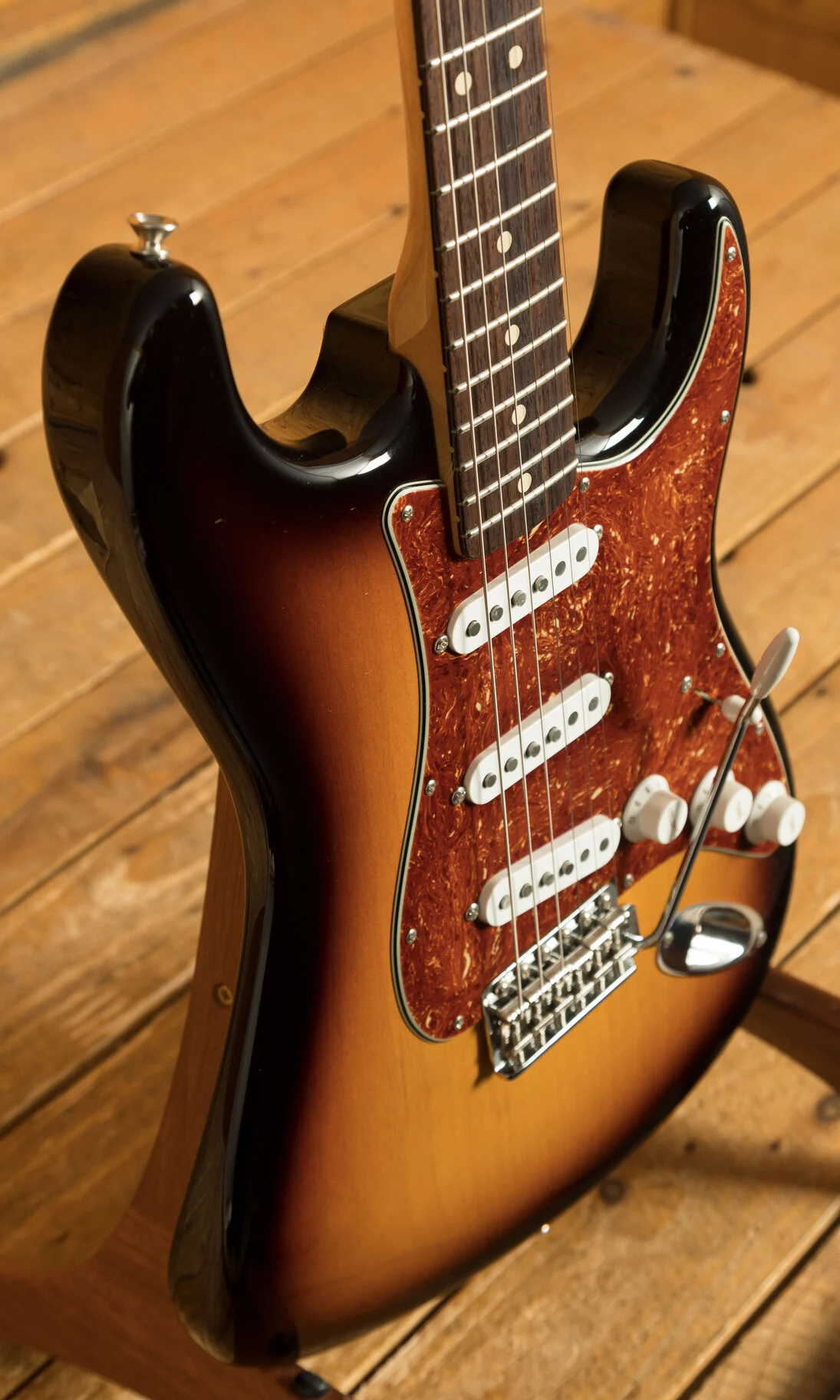 The Alder body is finished in a stunning Bleached 3-Tone Sunburst nitro lacquer. Authentically aged, this finish will wear beautifully with time and develop its own character even further. The thin nitro finish also allows the natural resonance of the body to sing and sustain much more effectively.