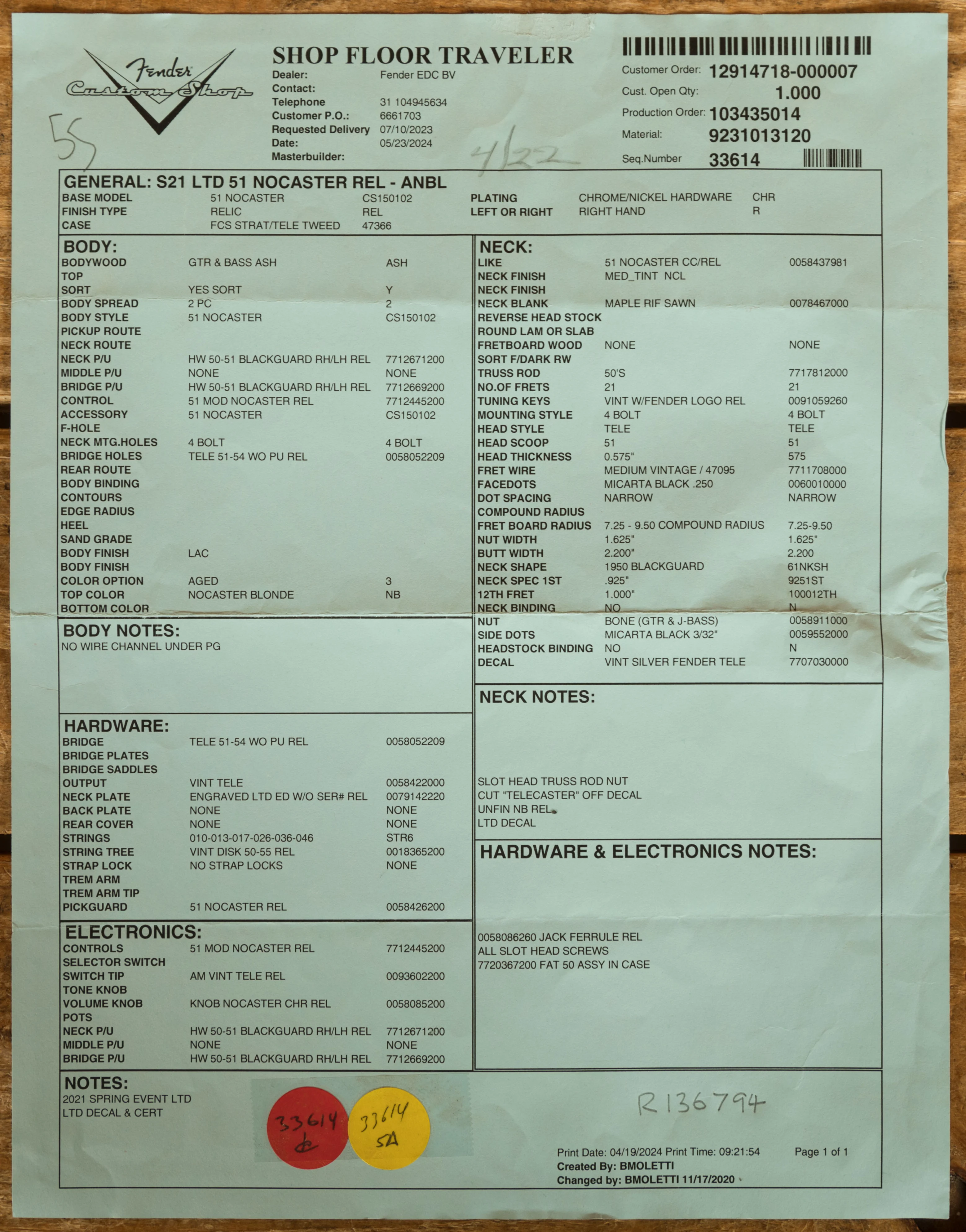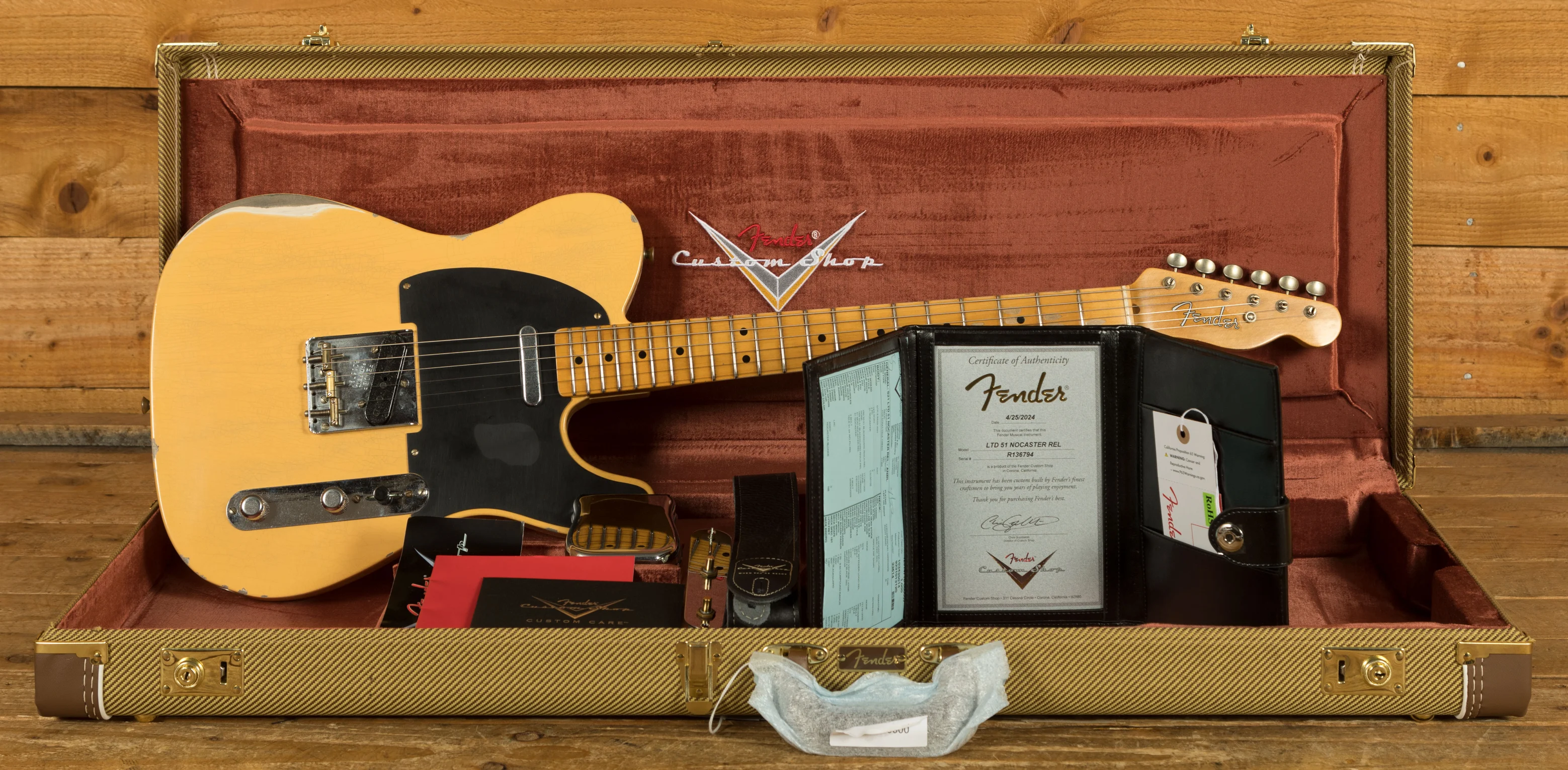 Named after the esteemed Nocaster lineage, the Limited Edition '51 Nocaster Relic boasts a captivating history. Initially dubbed the "Broadcaster," our cherished Telecaster faced a naming conflict with Gretsch's Broadkaster drum set, prompting Fender to hastily remove the headstock decals, leaving only "Fender" behind. Thus, the legend of the Nocaster was born, gracing a mere 475 instruments before the advent of the Telecaster name. Hence, Nocasters hold a rare distinction, rendering the Limited Edition '51 Nocaster Relic a coveted 6-string gem.
