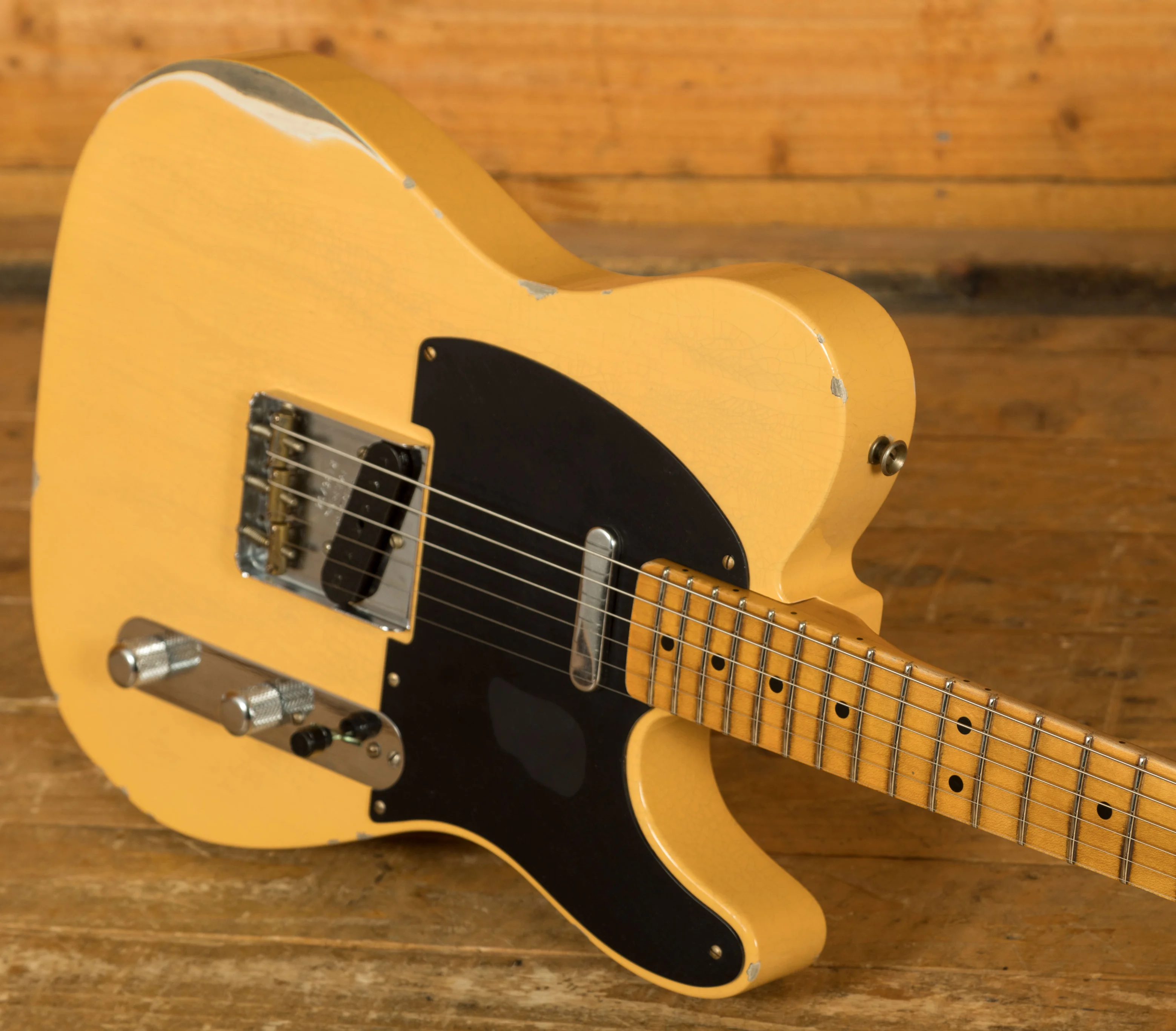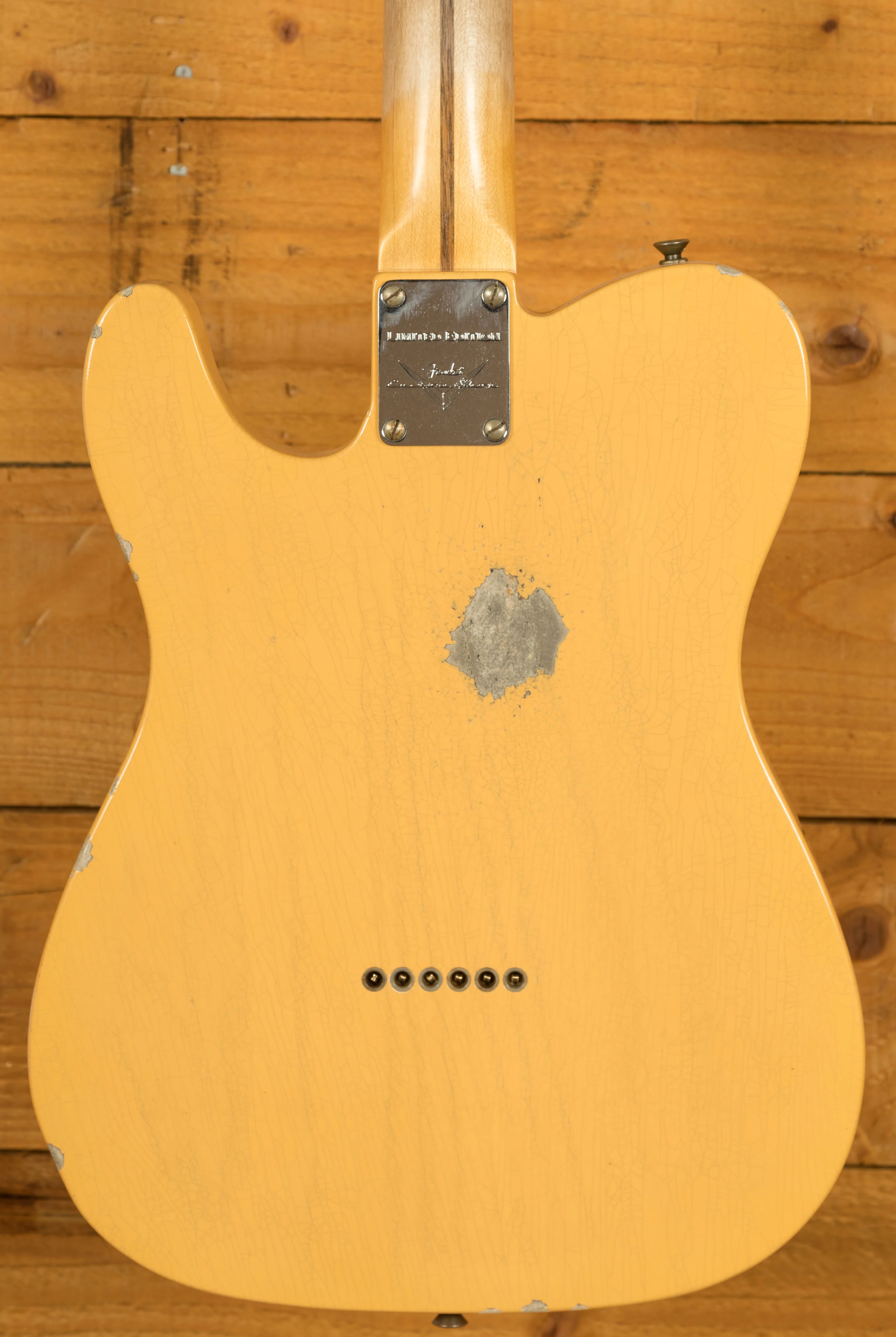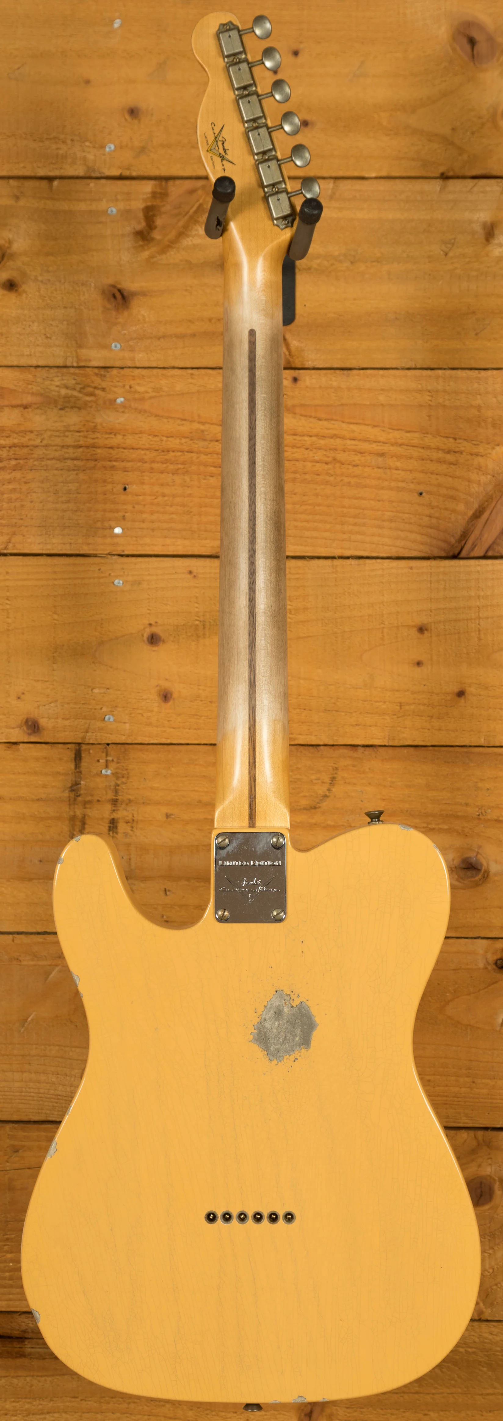 Crafted by the skilled hands of Fender's Custom Shop, this limited edition model features hand-wound pickups for authentic Telecaster tones. A '50-'51 Blackguard single-coil pickup resides in the neck position, while a matching pickup graces the bridge. Known for its distinctive "flat pole piece" design, the '50-'51 Blackguard pickup delivers a twangy punch that can peel paint off walls. Both pickups showcase exquisite relicing, marrying aesthetics with sound quality. Moreover, the guitar boasts the original Nocaster wiring scheme, complete with Fender's renowned dark circuit, with a modern Fat 50 wiring harness included for those desiring contemporary switching options.