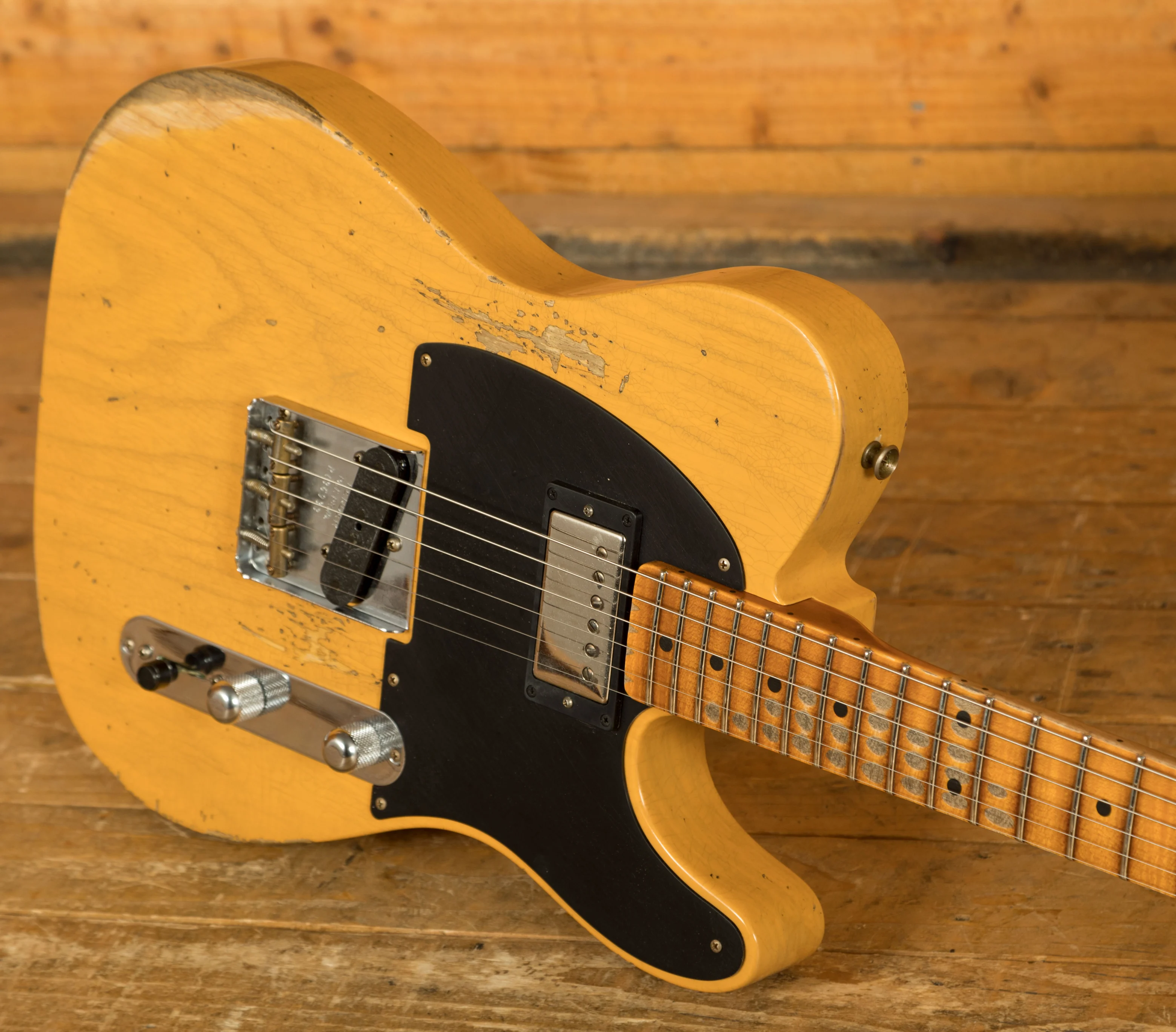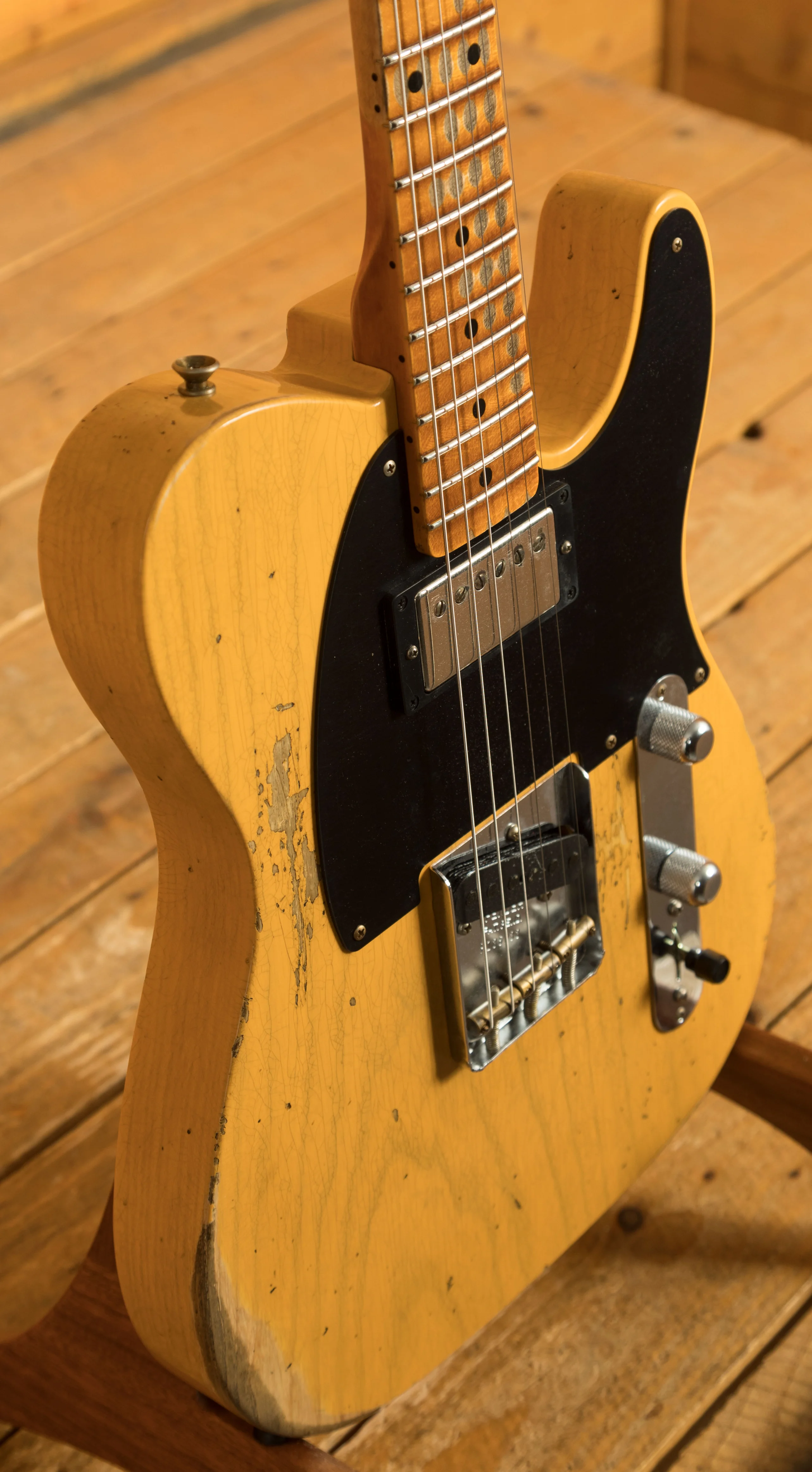 A sort for lightweight Ash body is finished in an awesome Aged Butterscotch Blonde Nitro lacquer, period correct, this finish will wear beautifully with time and develop its own character even further. It also allows the natural resonance of the body to sing and sustain much more effectively compared with other finishes.