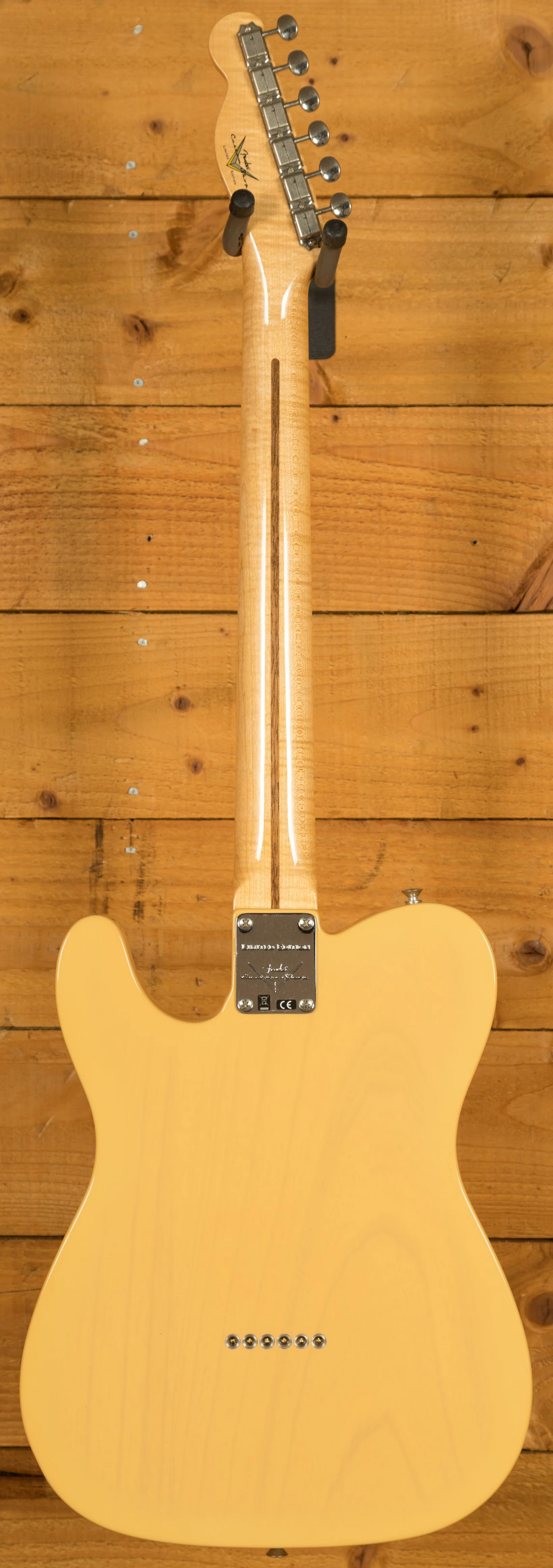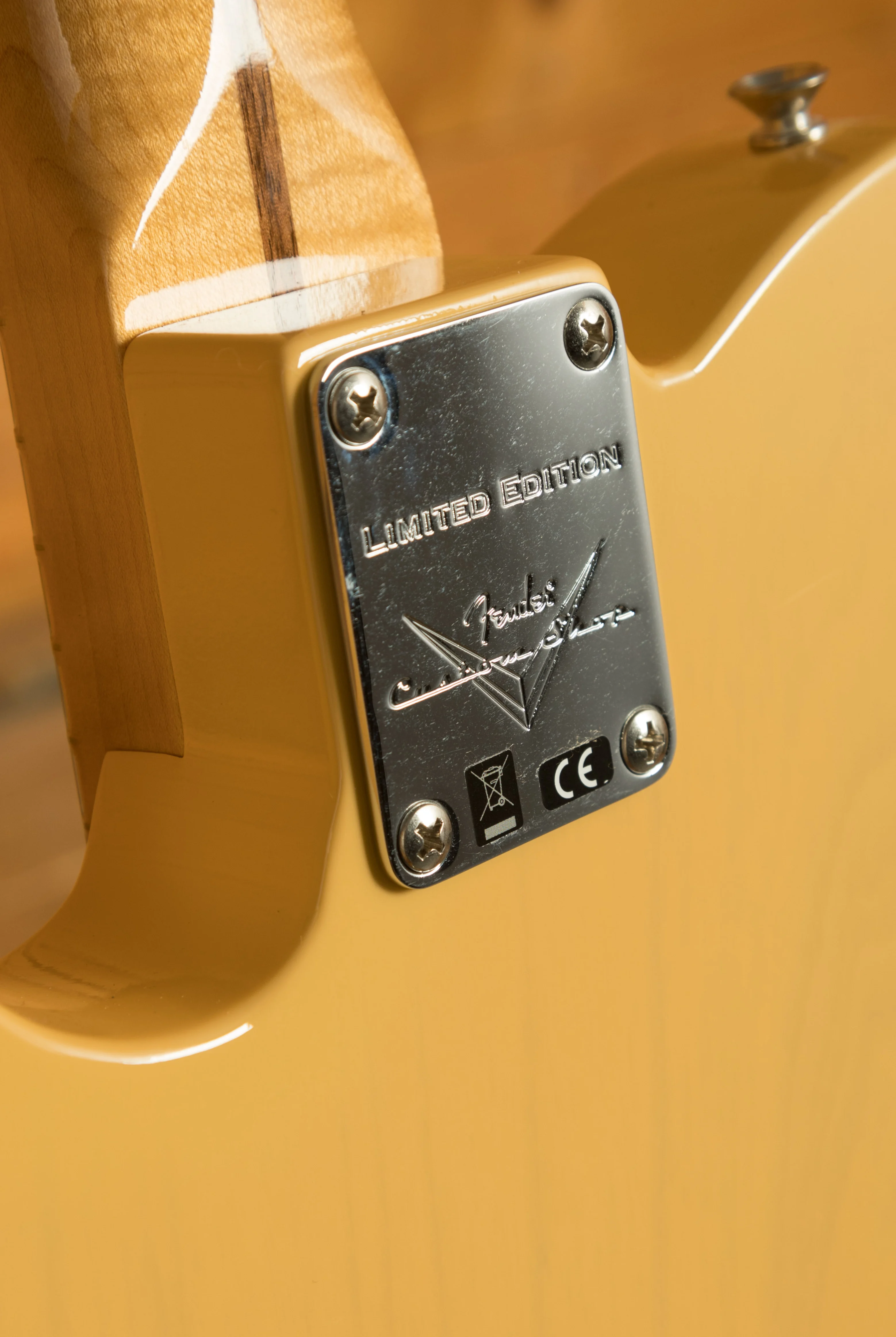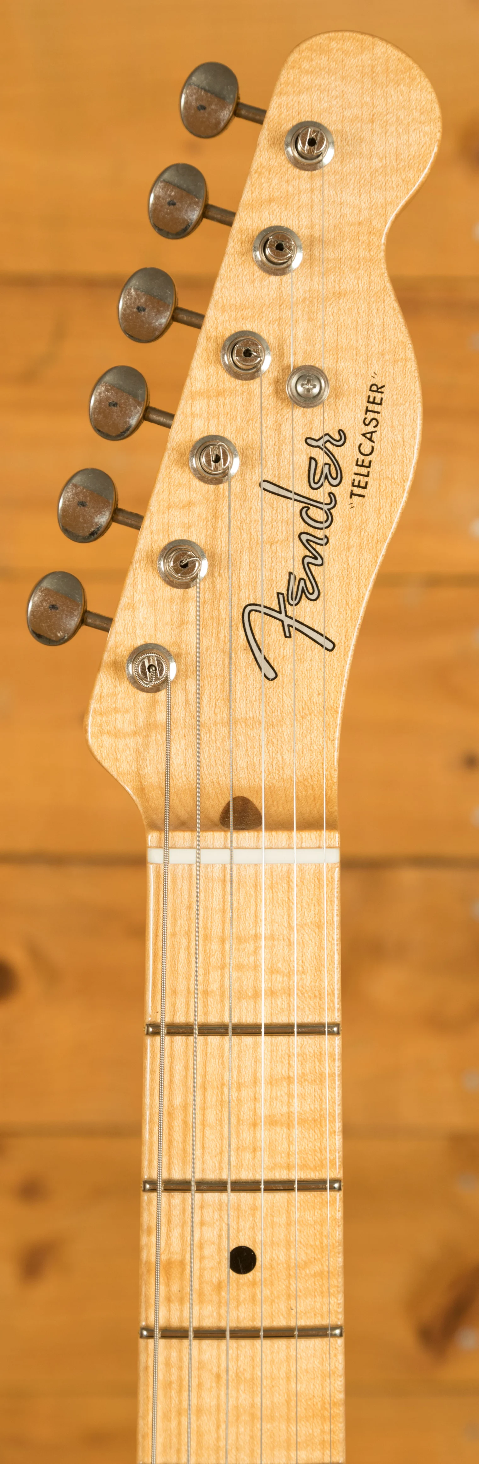 The medium tint 2A Quartersawn Flame Maple neck has a smooth, vintage feel. With a 7.25"-9.50" compound radius and 21 6105 frets, the '53 Telecaster features a 1954 "U" profile which measures out at .940" at the 1st fret and .970" at the 12th and has a bone nut of width 1.650"; it feels comfortable and robust, just like a vintage Fender should.