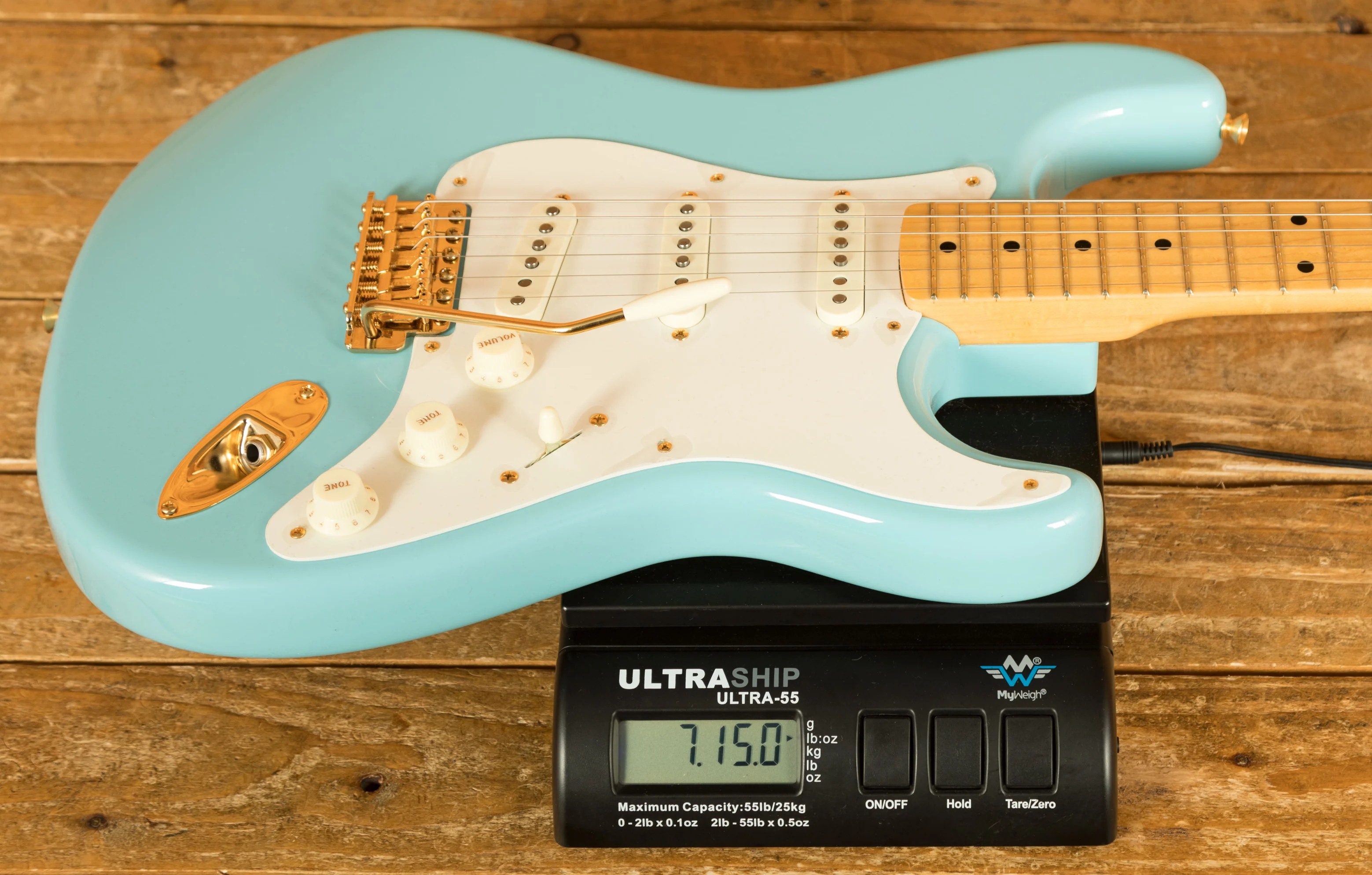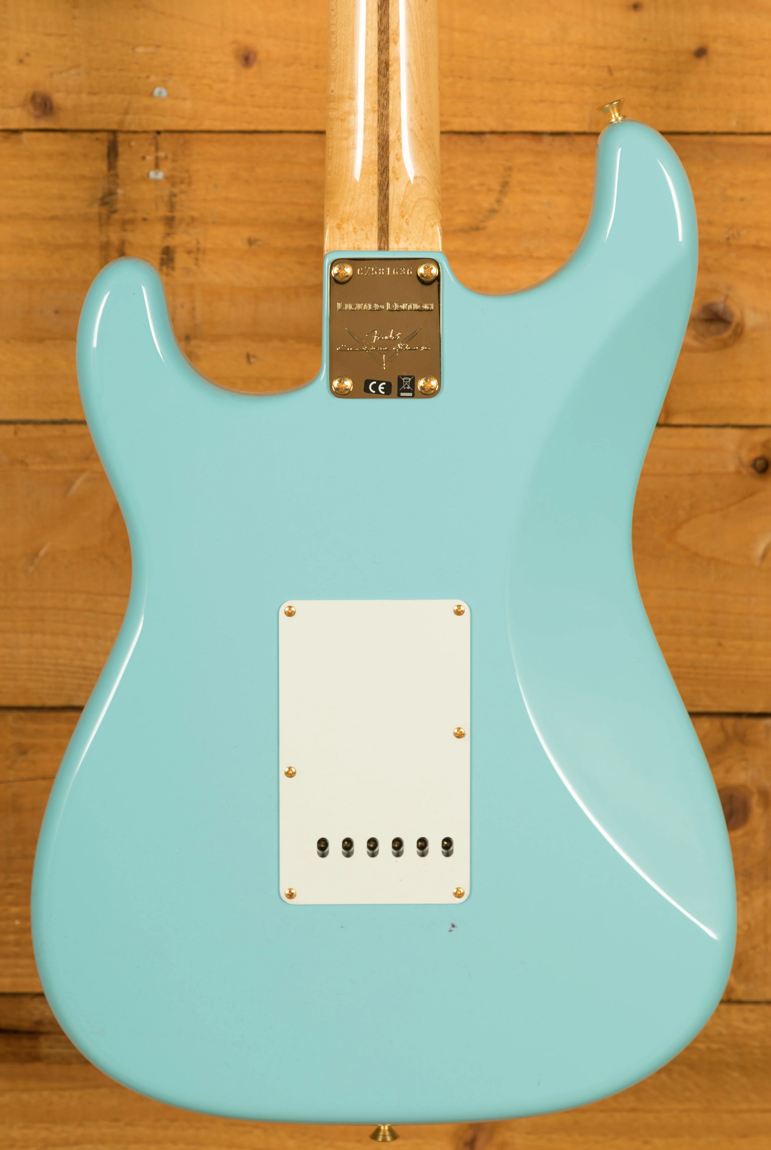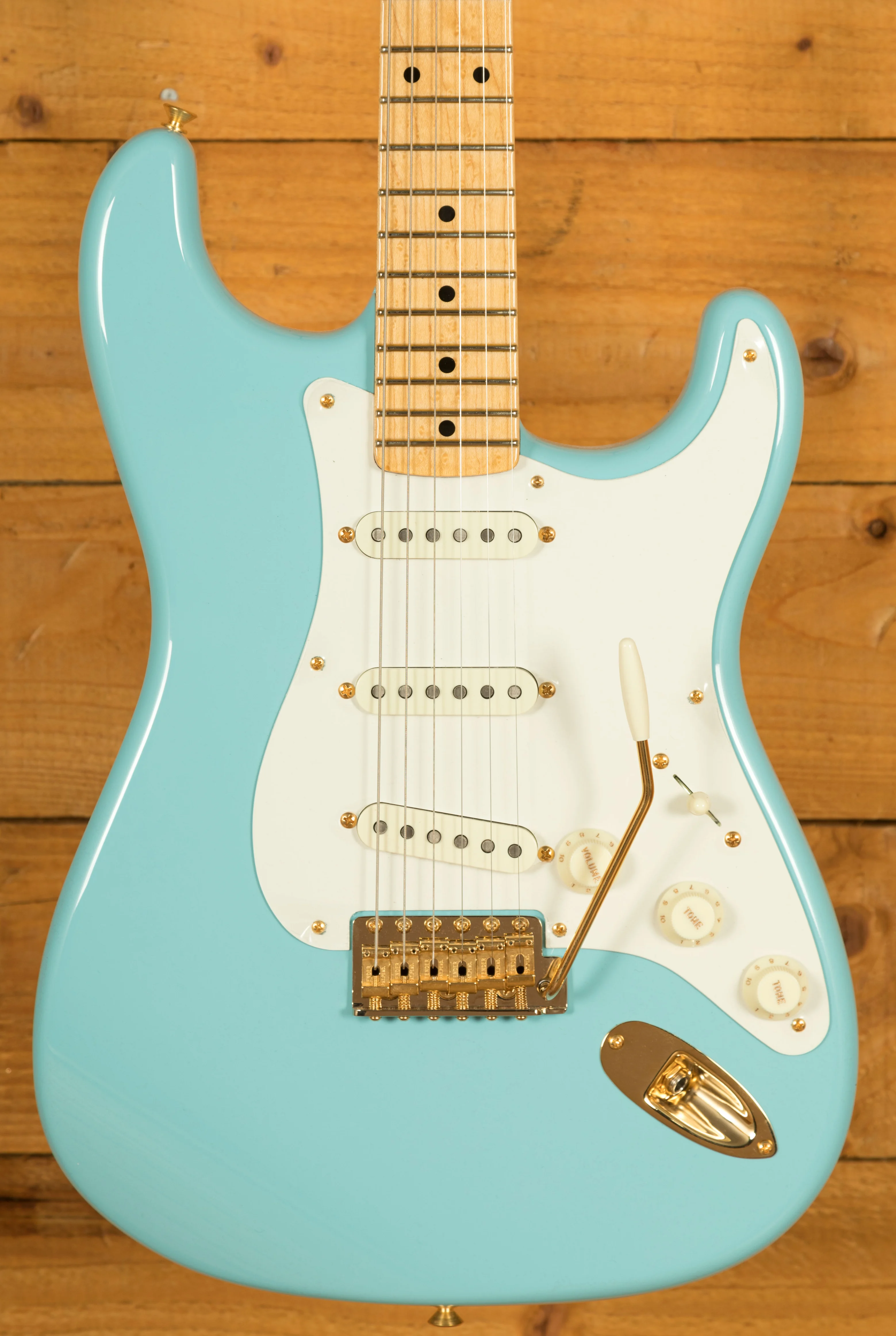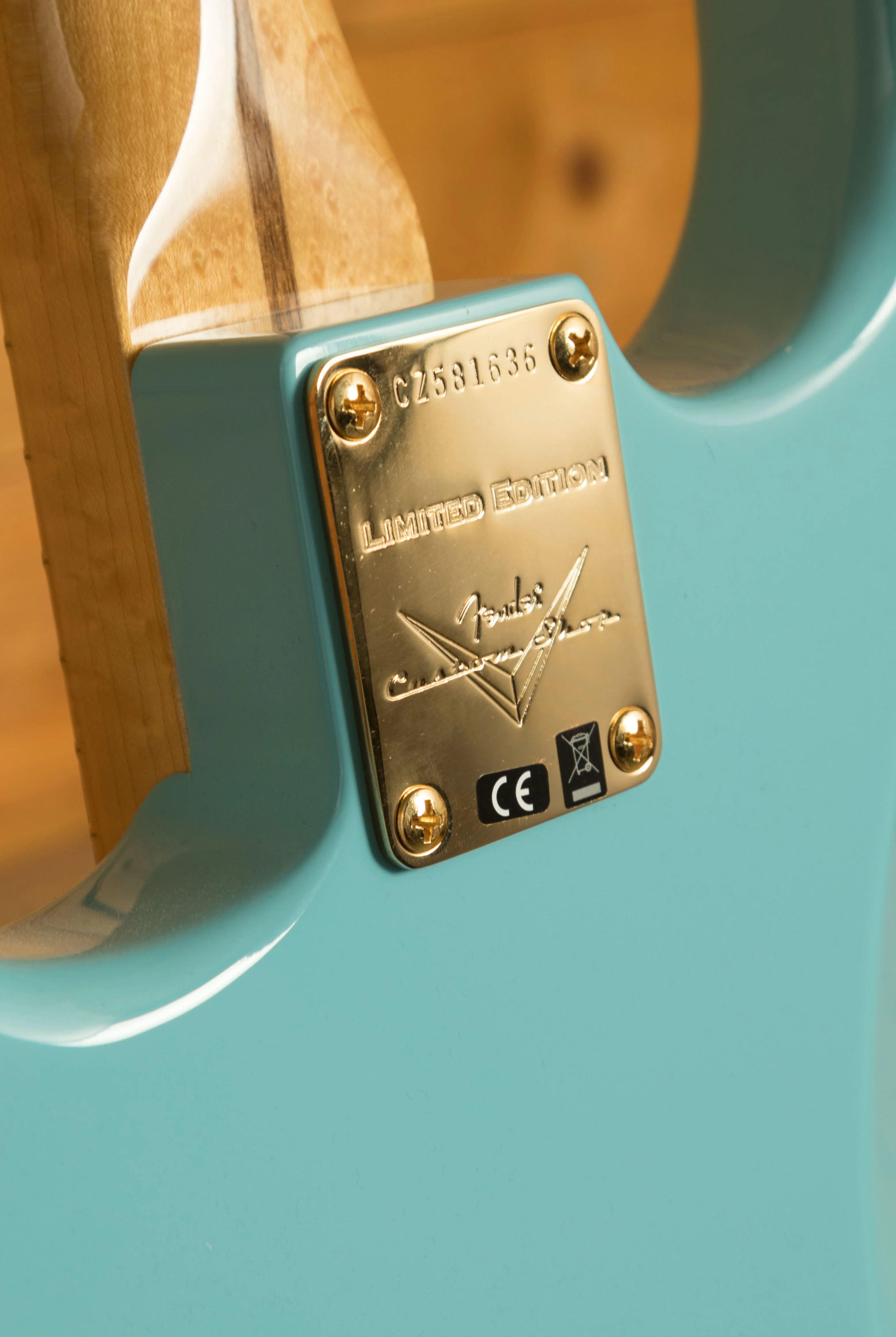 This Fender Custom Shop Limited-Edition '59 Stratocaster in Daphne Blue is a stunning homage to a classic, blending vintage appeal with modern refinements. Fender has spared no expense in selecting the finest materials and components, ensuring that this model not only reflects the look and feel of a 1959 Fullerton Stratocaster but also benefits from significant upgrades in both tonewoods and hardware.