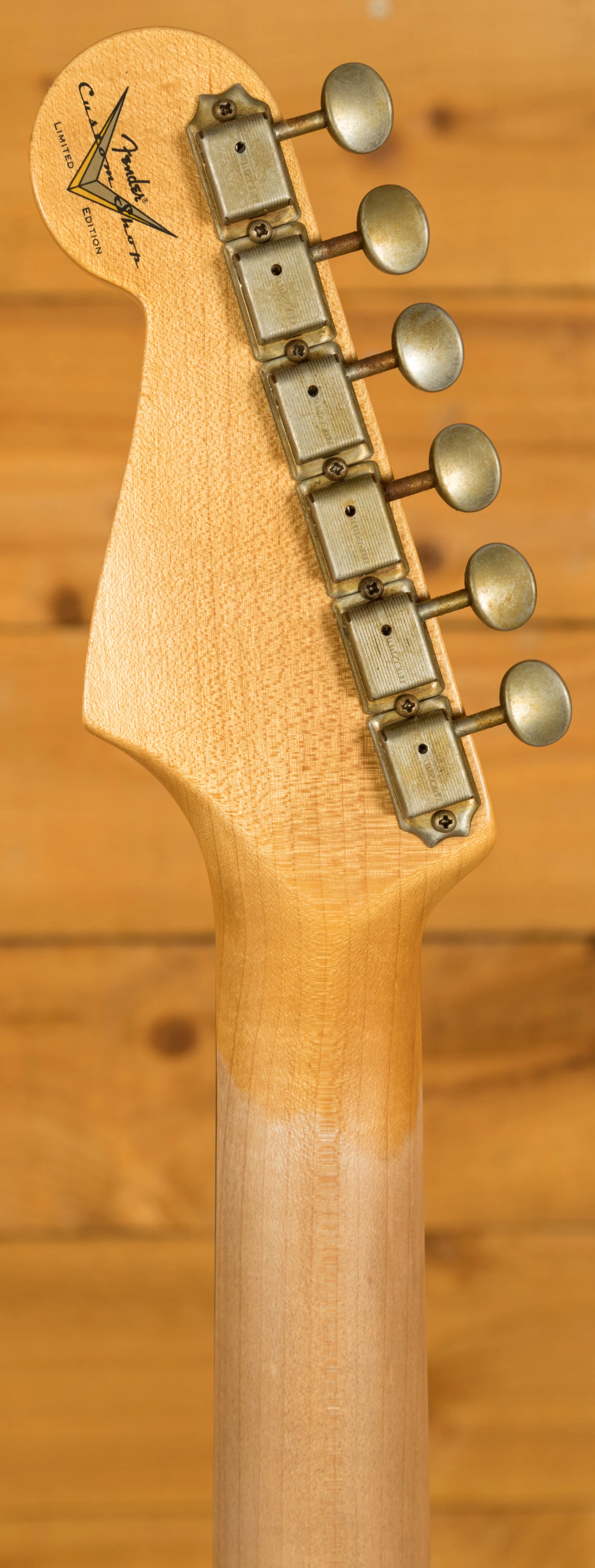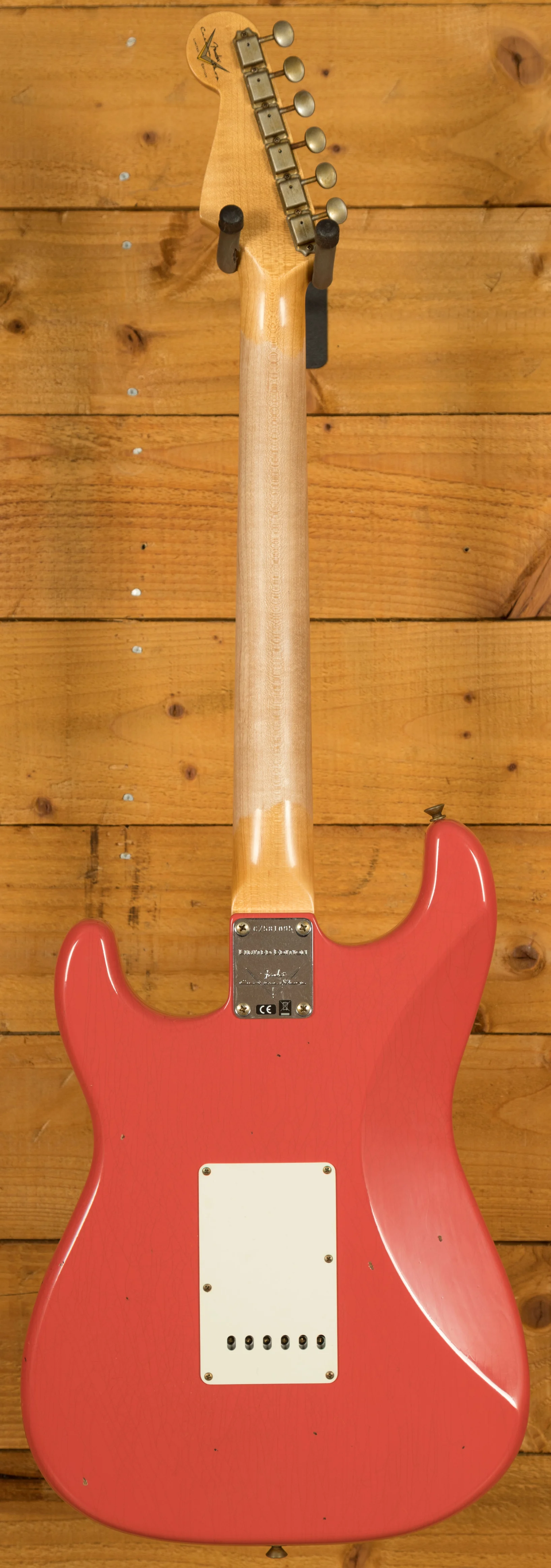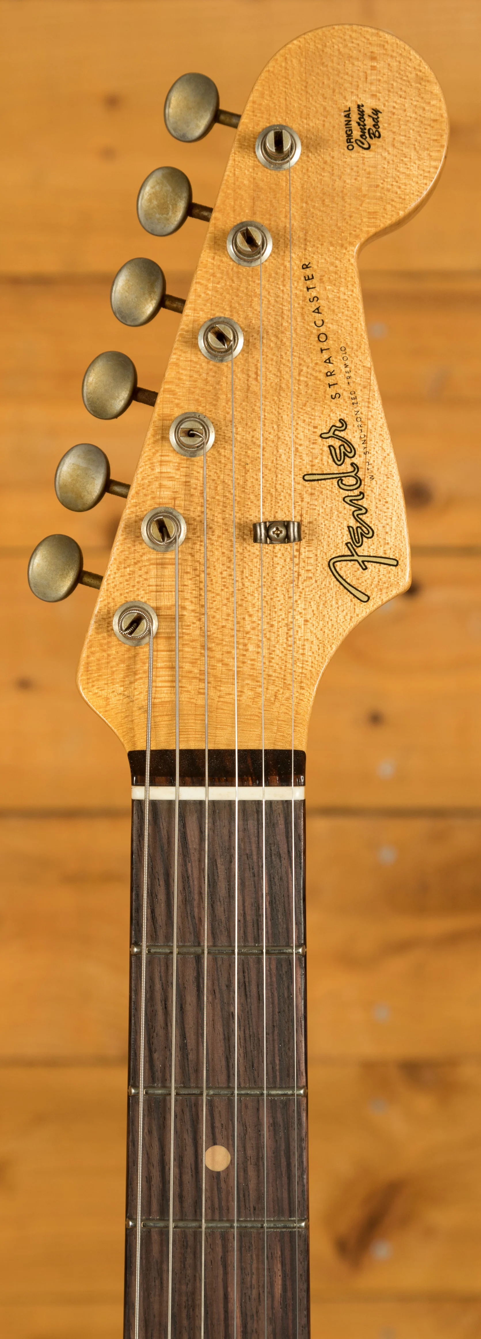 The medium tint 5/4 quarter sawn Maple neck has a smooth finish and a AAA grade sort for dark Rosewood fingerboard. With a 9.5" radius and 21 6105 frets, the '59 Custom Shop Stratocaster can handle anything you throw at it without even breaking a sweat; it's supremely comfortable and well balanced. The 1959 "D" profile is a joy to play and offers a great platform for both rhythm and lead playing. It measures at .800" at the 1st fret and .980" at the 12th