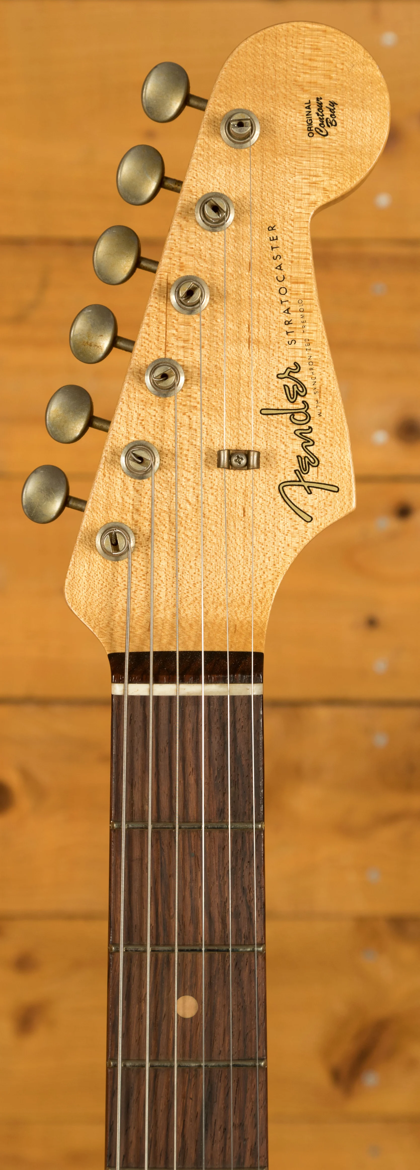 The medium tint 5/4 quarter sawn Maple neck has a smooth finish and a AAA grade sort for dark Rosewood fingerboard. With a 9.5" radius and 21 6105 frets, the '59 Custom Shop Stratocaster can handle anything you throw at it without even breaking a sweat; it's supremely comfortable and well balanced. The 1959 "D" profile is a joy to play and offers a great platform for both rhythm and lead playing. It measures at .800" at the 1st fret and .980" at the 12th
