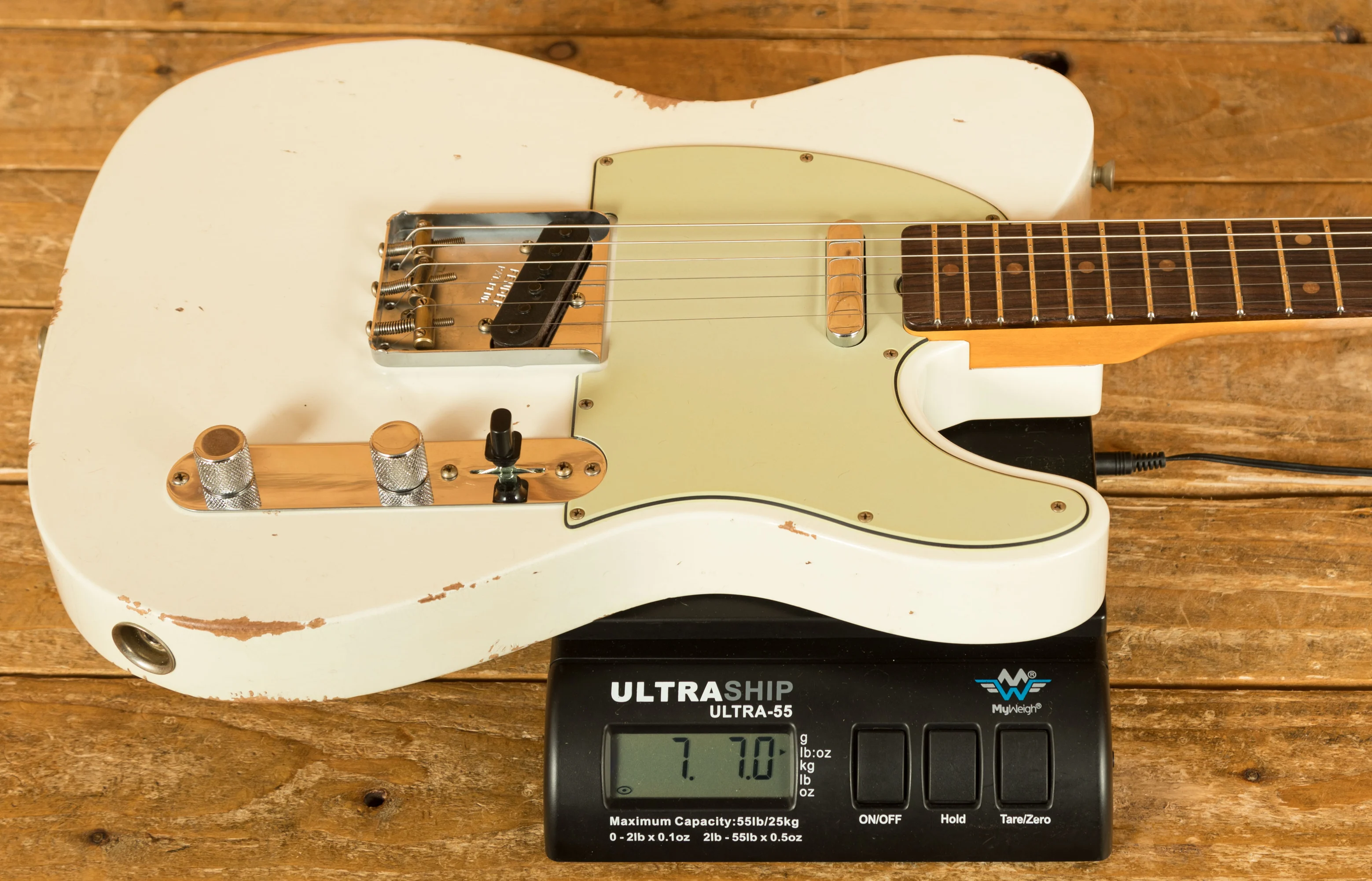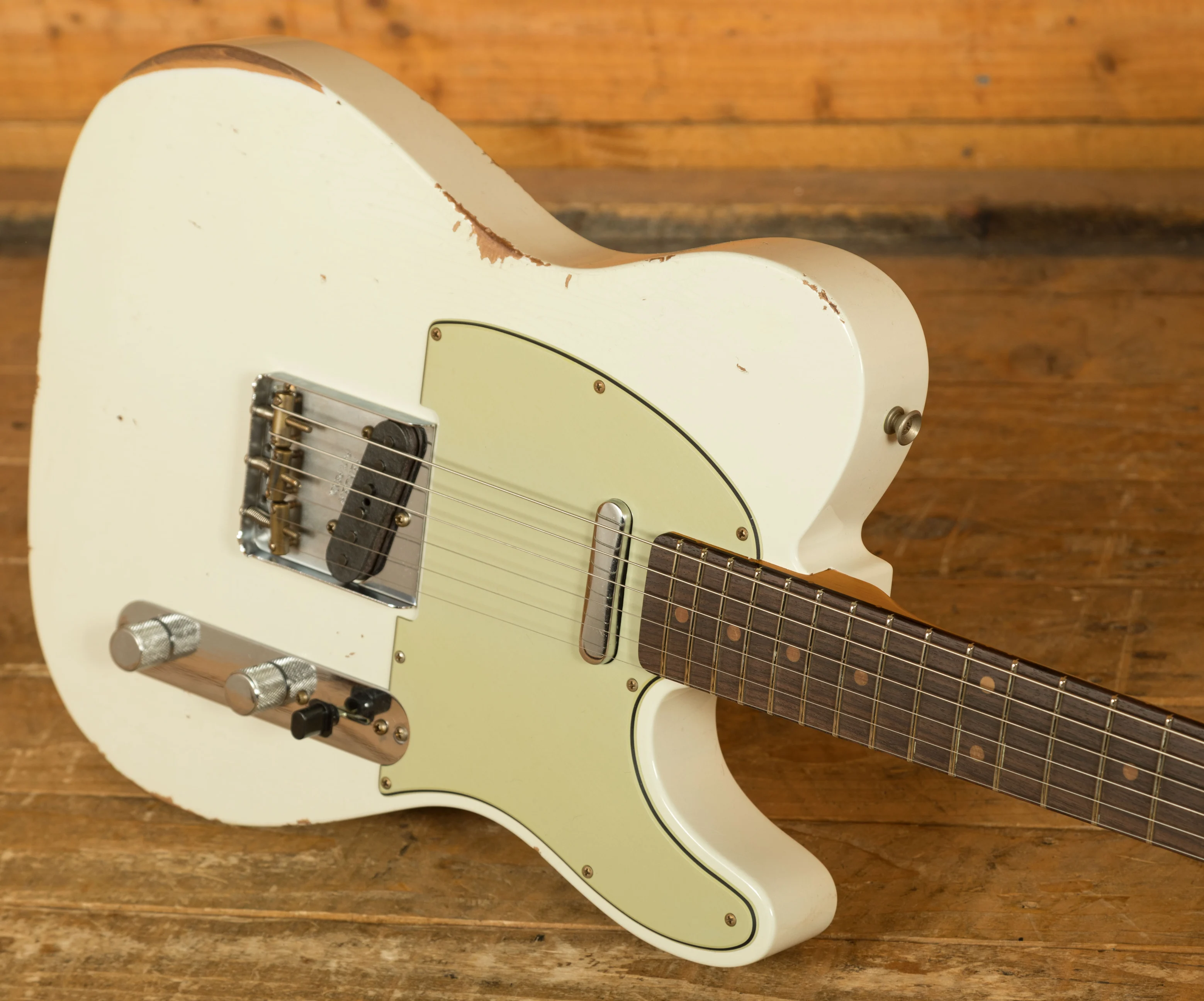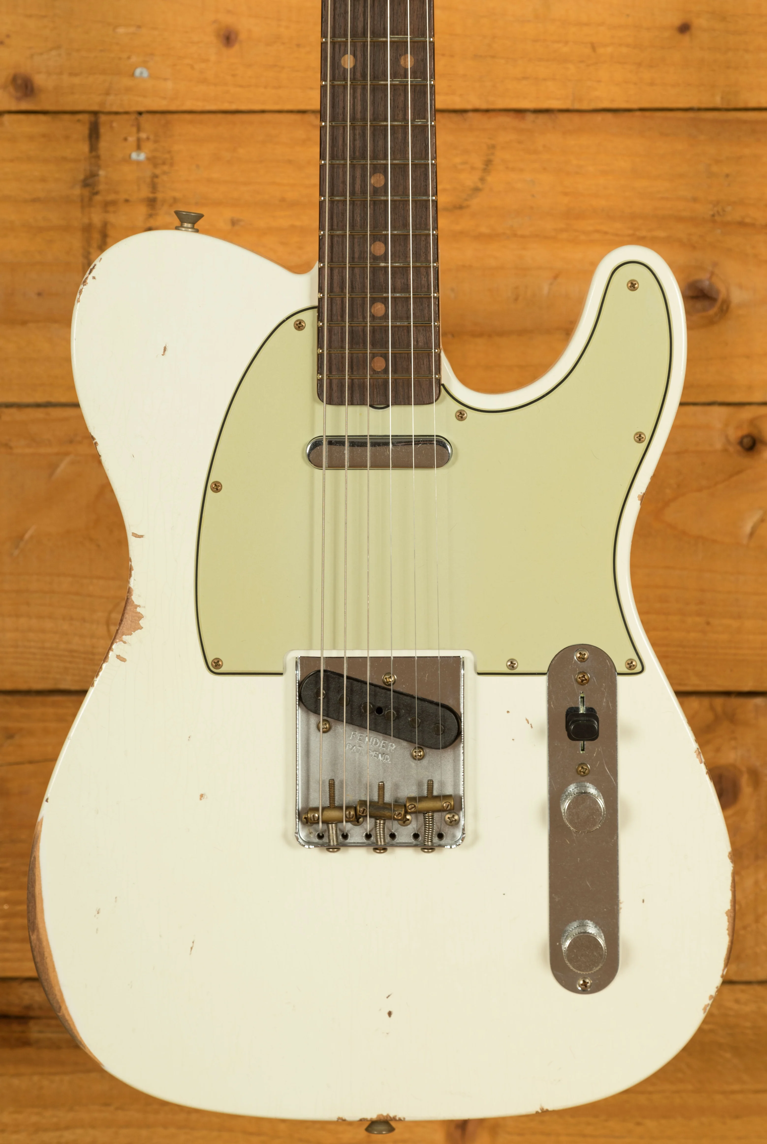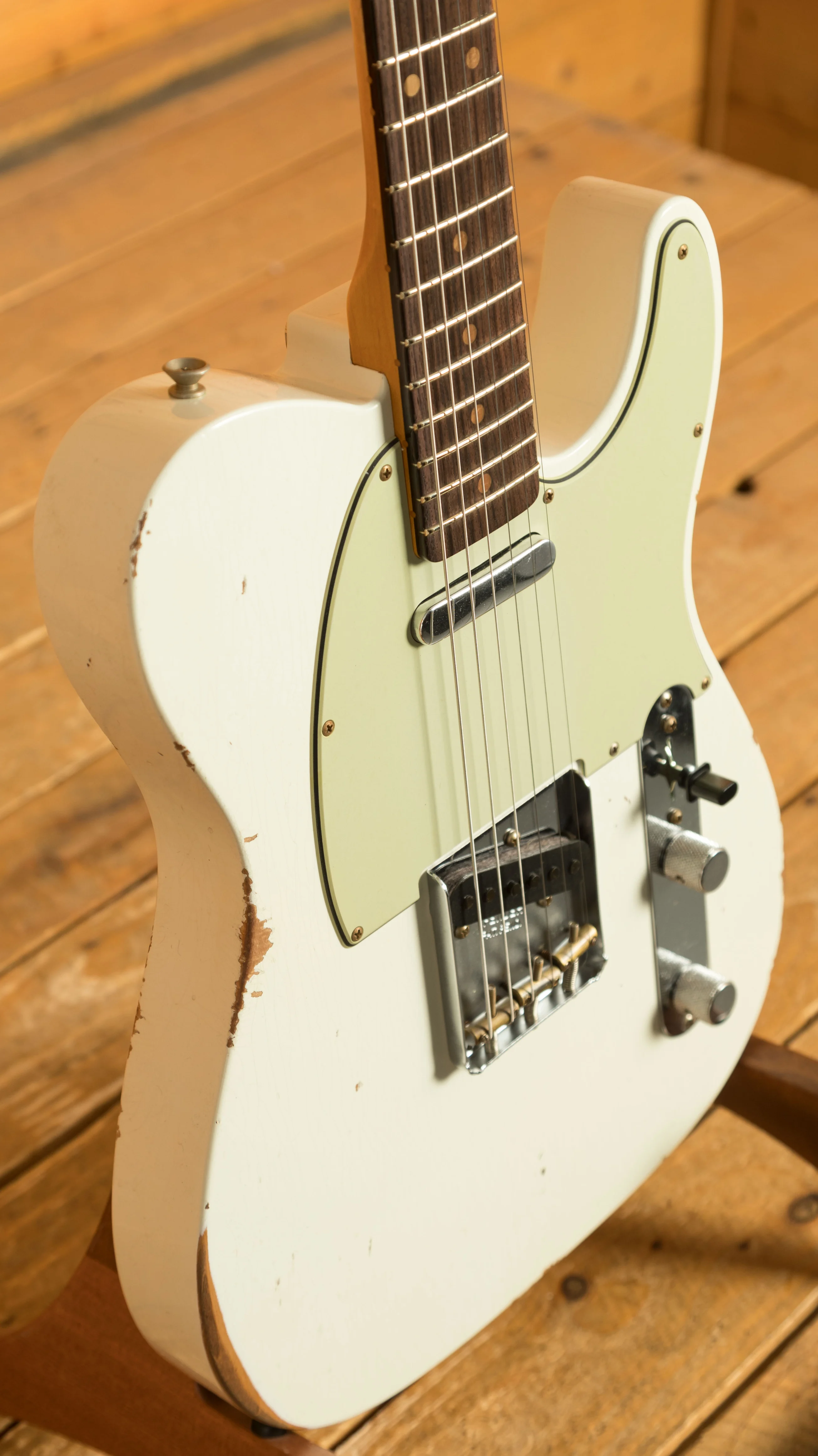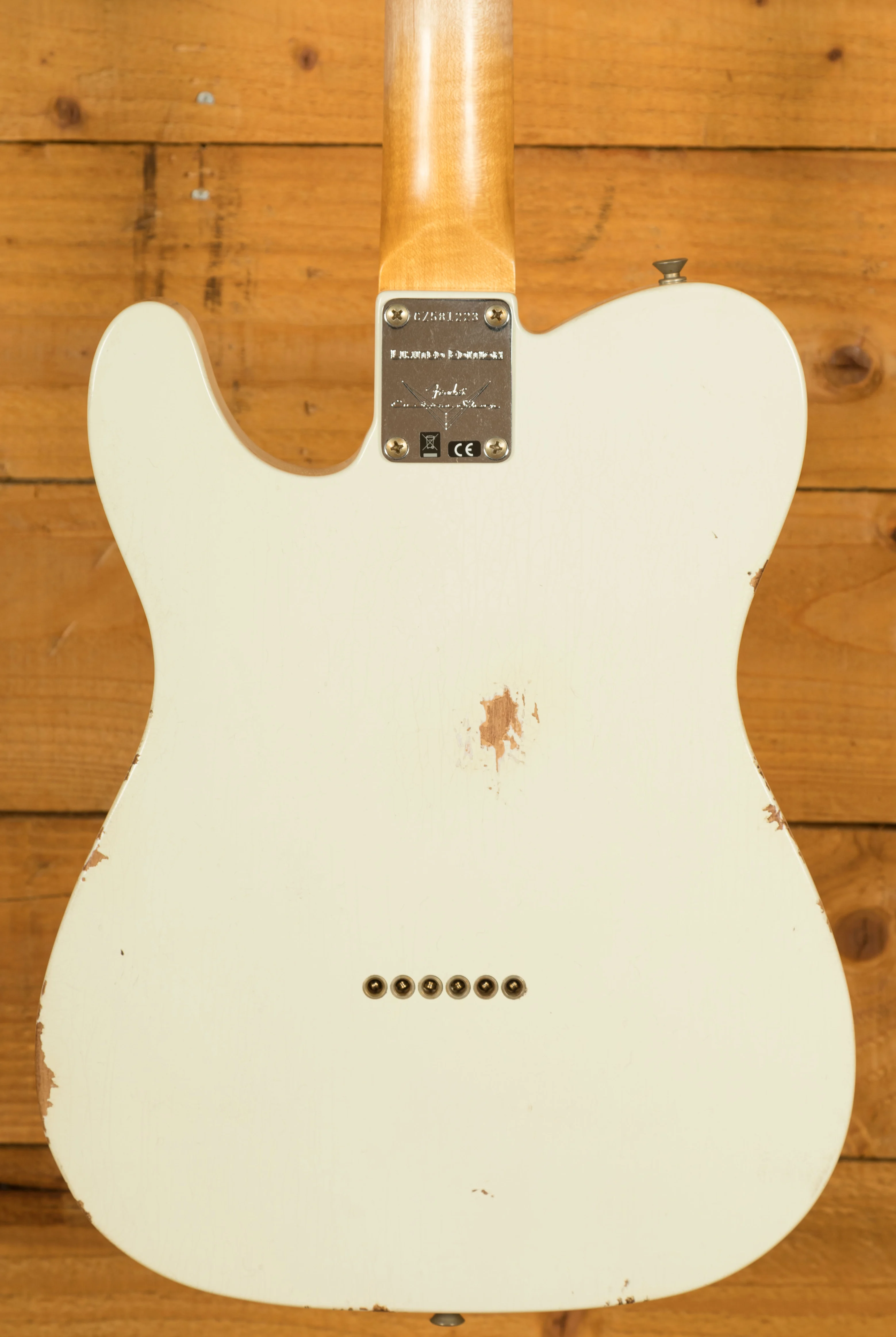 The Alder body is finished in an awesome Relic Aged Olympic White Nitro lacquer, period correct, this finish will wear beautifully with time and develop its own character even further. It also allows the natural resonance of the body to sing and sustain much more effectively compared with other finishes.