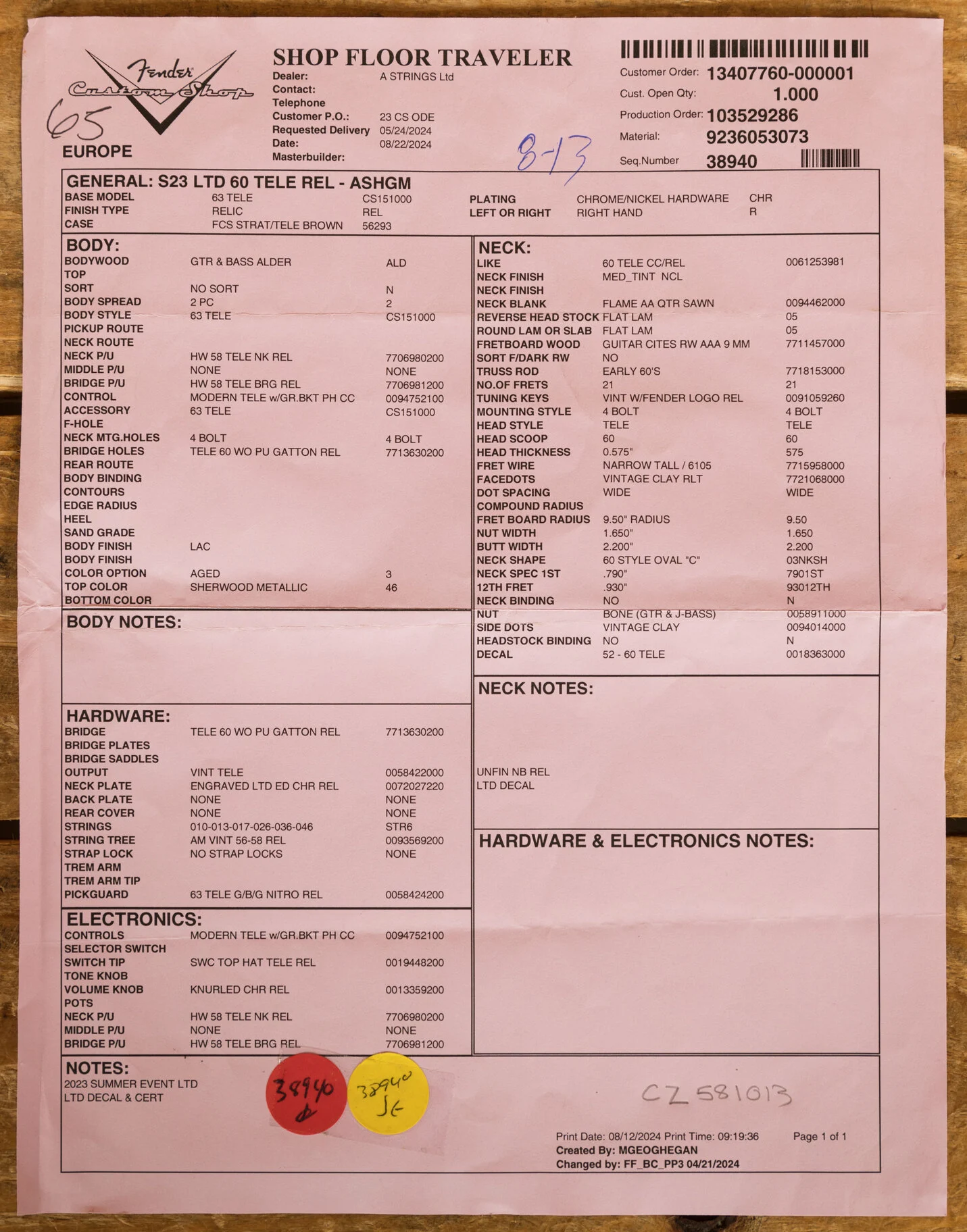 The Alder body is finished in an awesome Aged Sherwood Green Metallic lacquer, period correct, this finish will wear beautifully with time and develop its own character even further. It also allows the natural resonance of the body to sing and sustain much more effectively compared with other finishes.