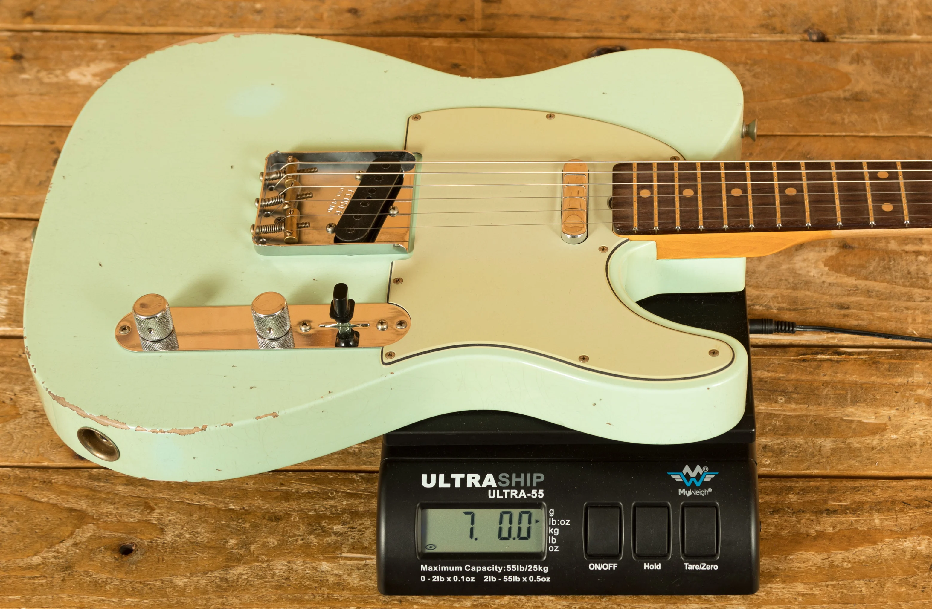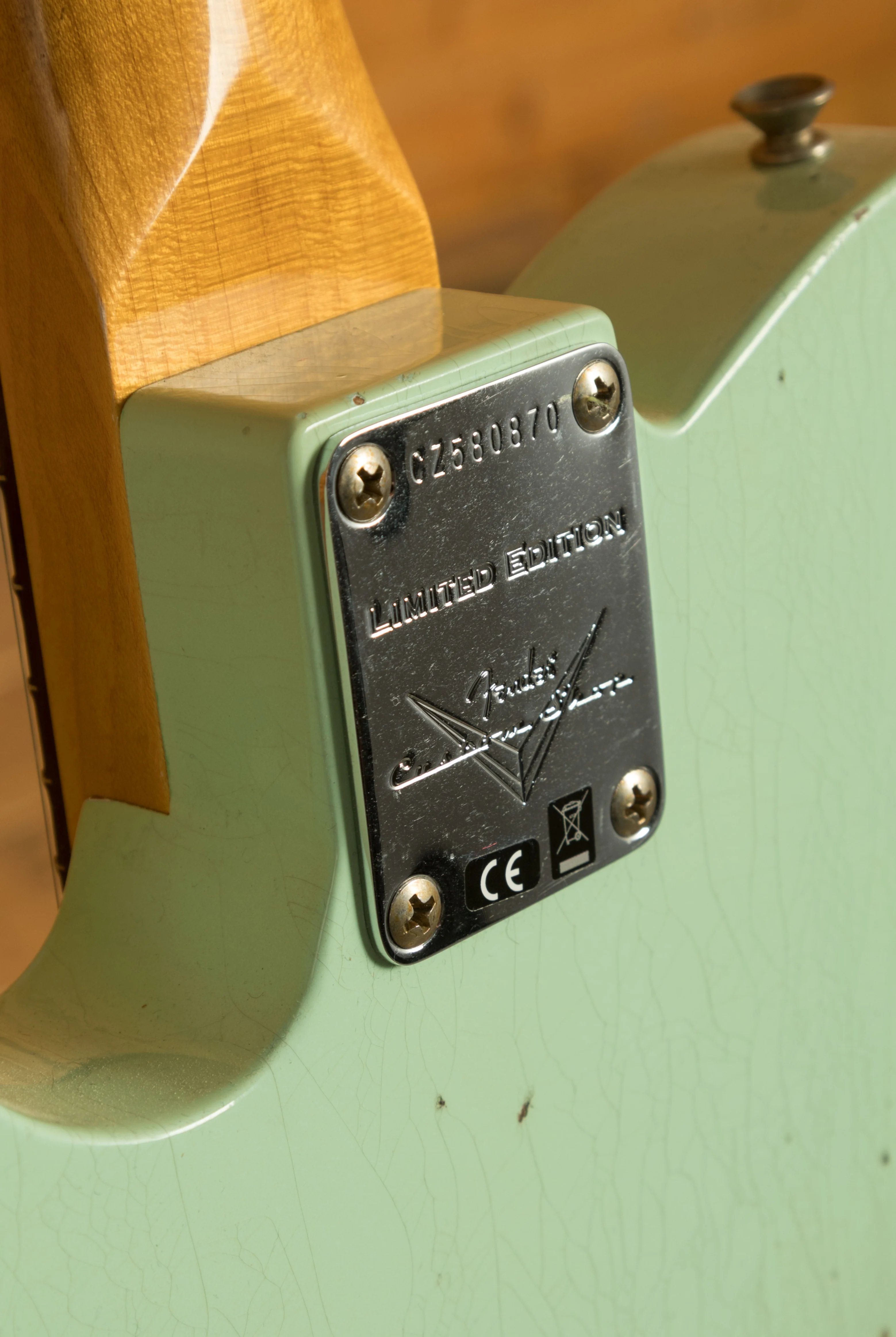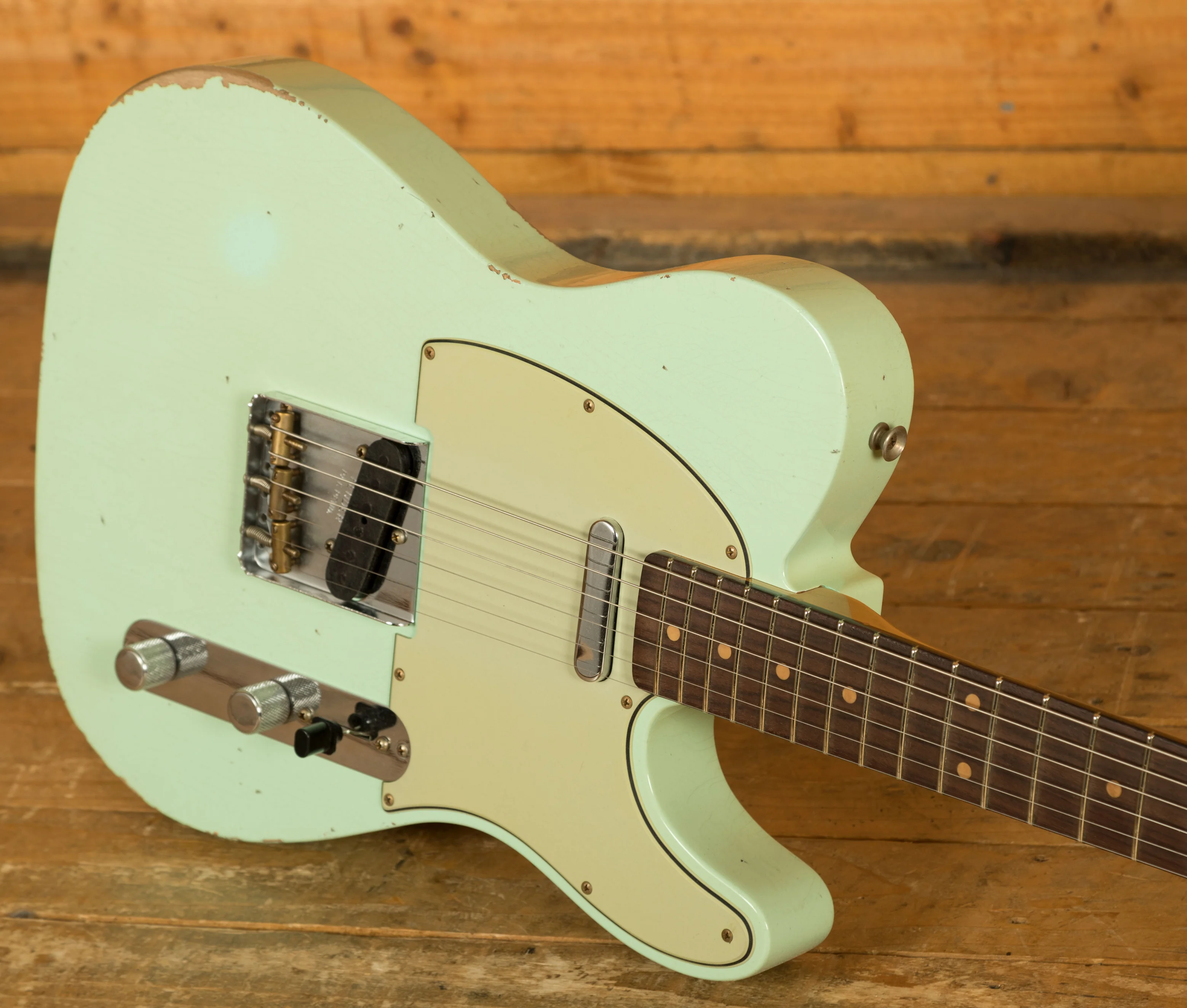 The sort for lightweight Alder body is finished in a slick Faded Aged Surf Green nitro lacquer. Authentically aged, this finish will wear beautifully with time and develop its own character even further. It also allows the natural resonance of the body to sing and sustain much more effectively compared with other more modern finishes.