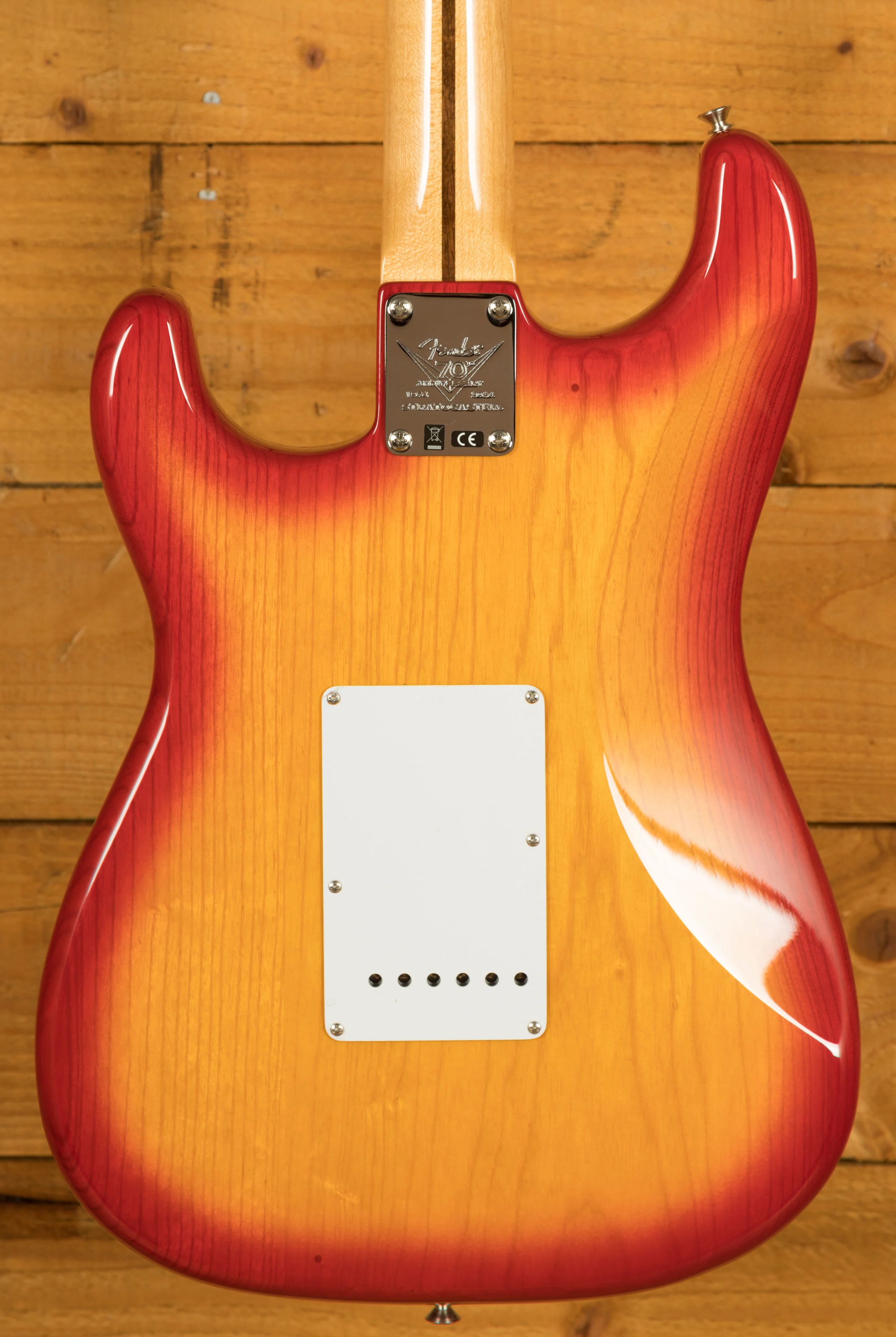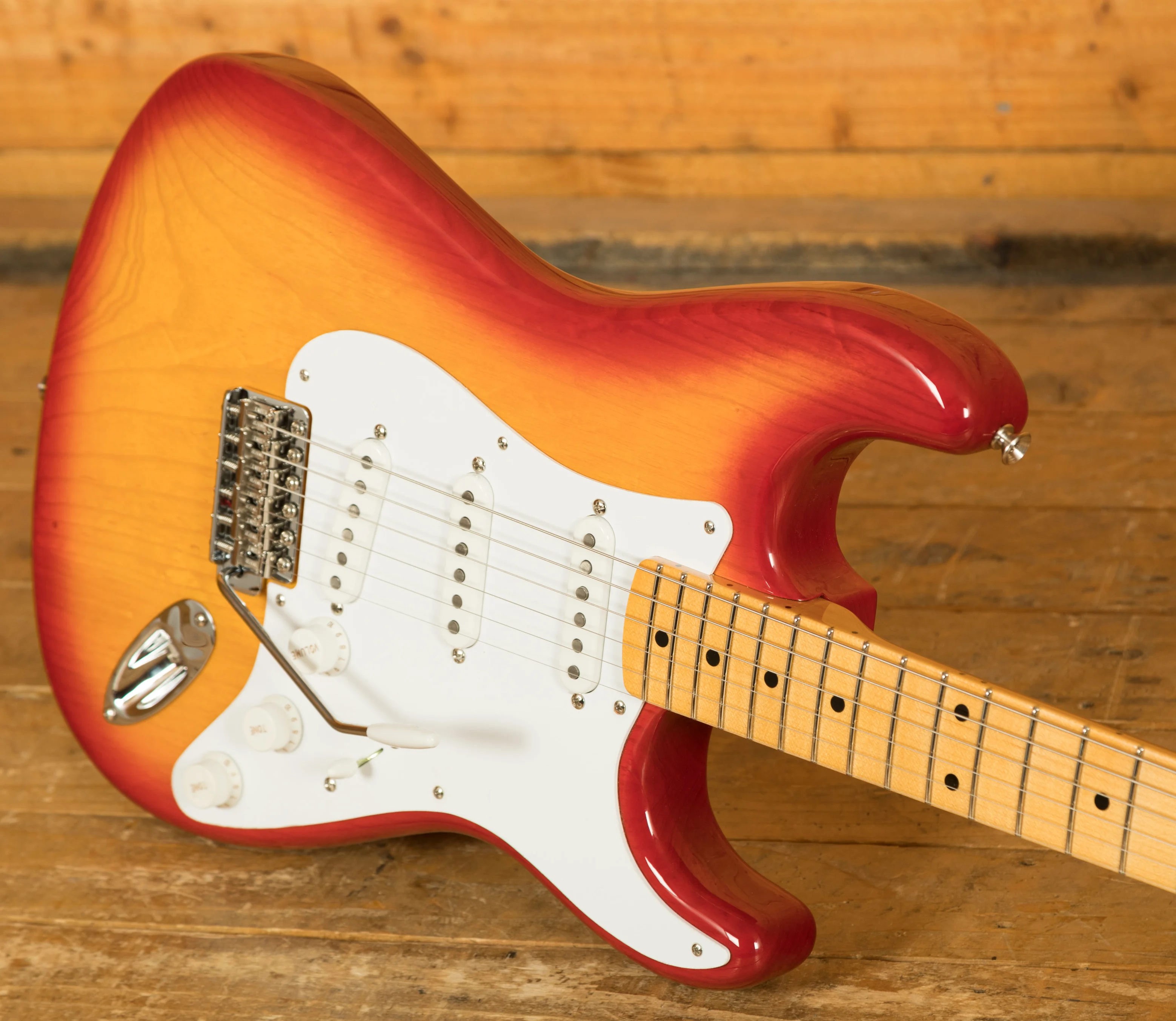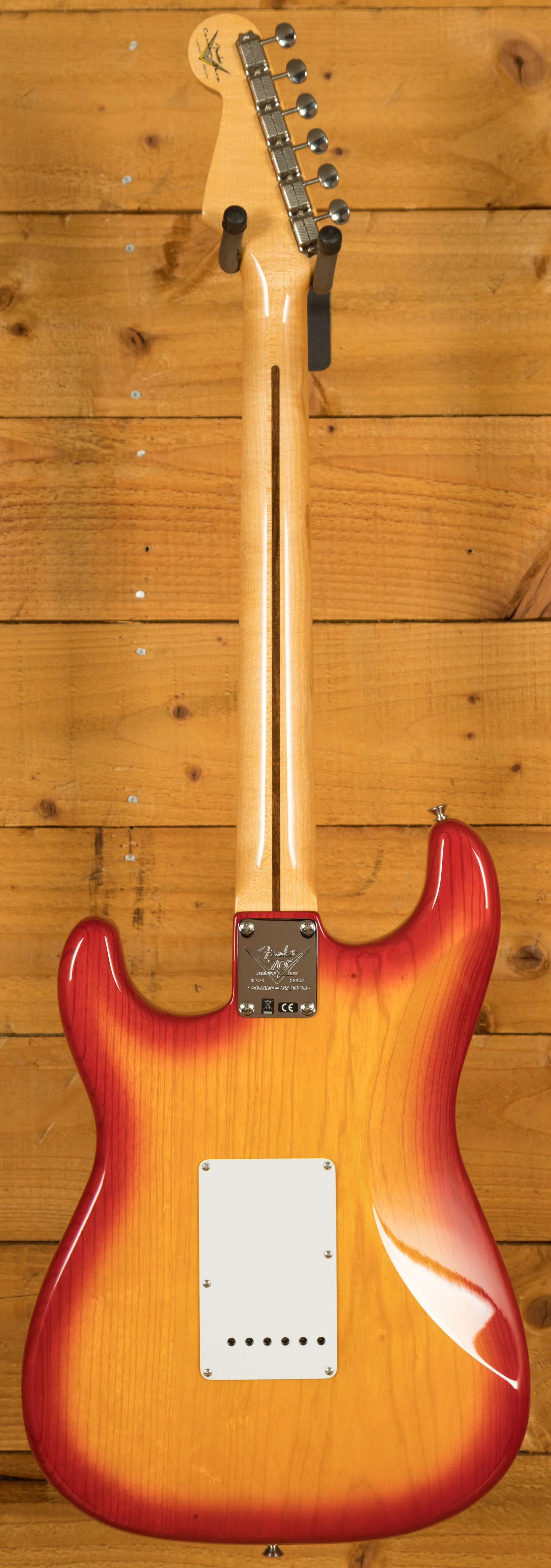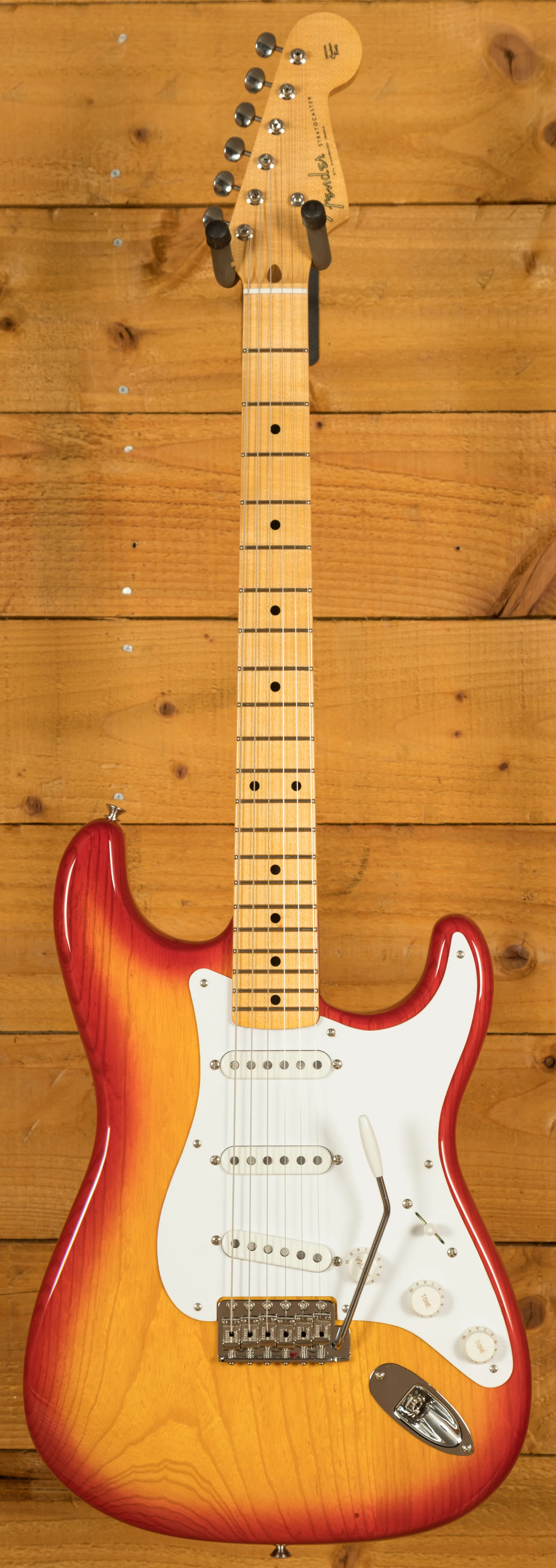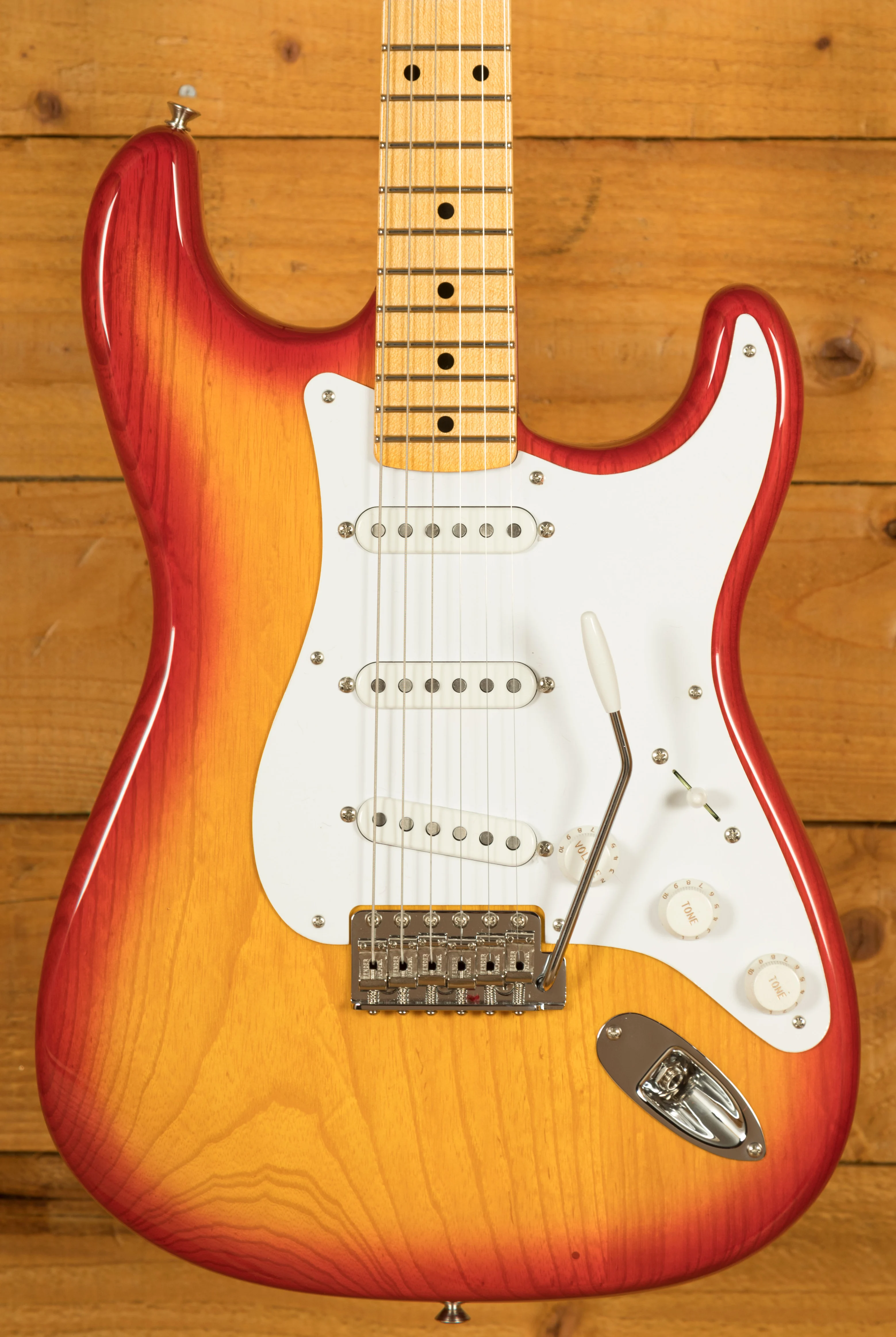 Peach's John designed this exceptional guitar with a specific audience in mind - those who appreciate the unparalleled craftsmanship of a Fender Custom Shop instrument but prefer their guitars pristine and untouched by the renowned yet intentionally destructive hands of the Fender Custom Shop's relic artists! He selected a vibrant Cherry-style Sunburst finish to inject a fresh, lively character into the instrument, perfectly complemented by a crisp, clean white pickguard that adds to its classy appeal.