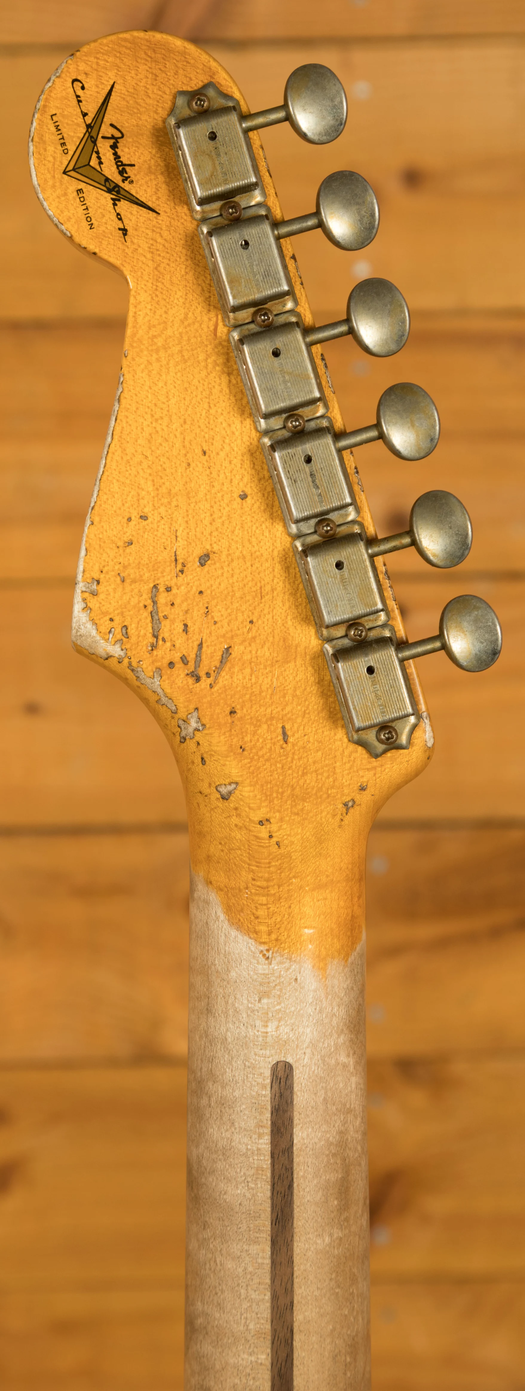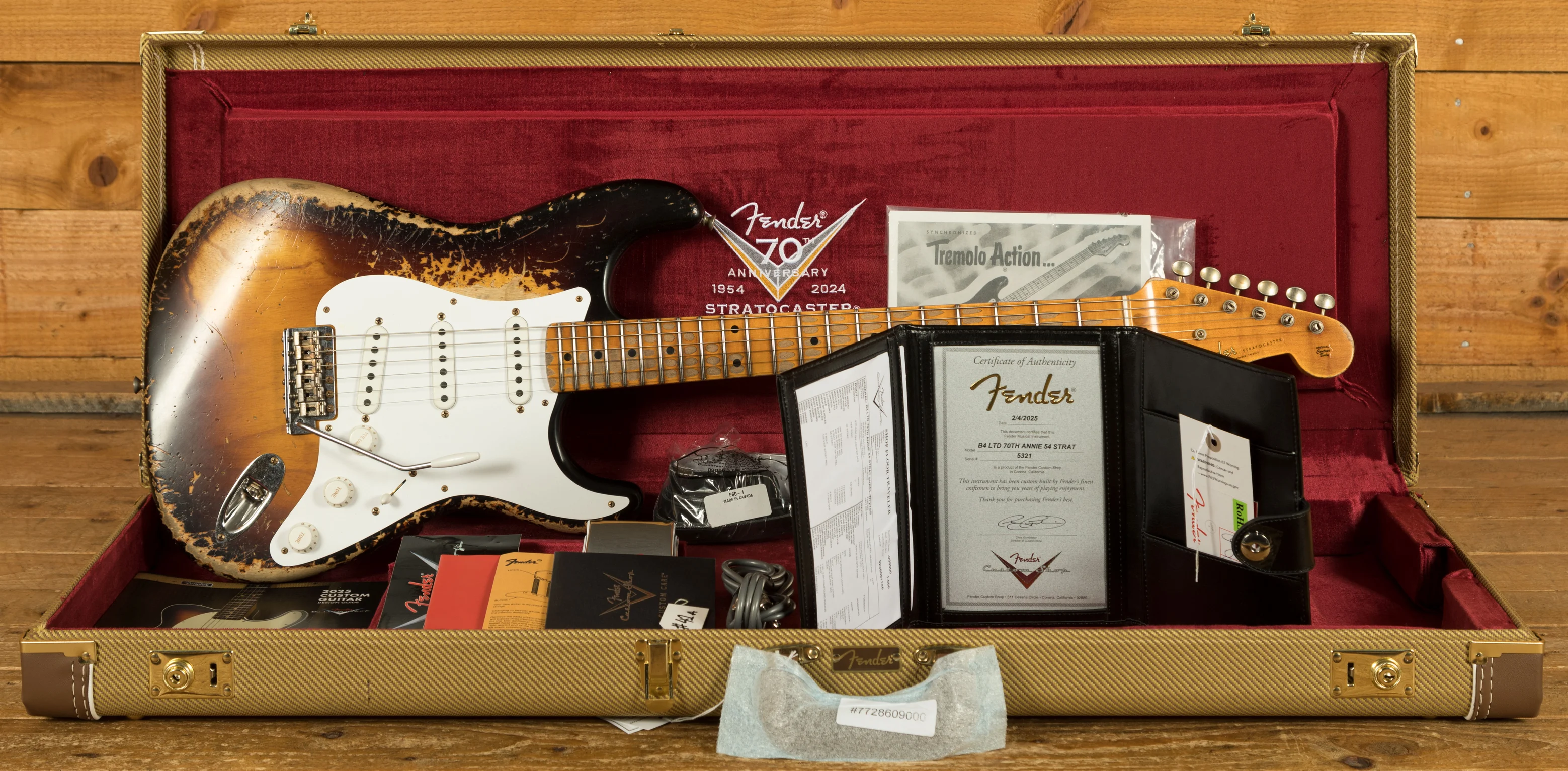 Introducing the Fender Custom Shop Limited Edition 70th Anniversary Stratocaster, meticulously crafted to honour the seven-decade legacy of the iconic Stratocaster. This exclusive model faithfully captures the essence of the original 1954 Stratocaster while showcasing authentic vintage appointments and premium craftsmanship. Tghis guitar has one of the most authentic Super Heavy Relic finishes that we've seen. This could've come straight out of the Joe Bonamssa collection!