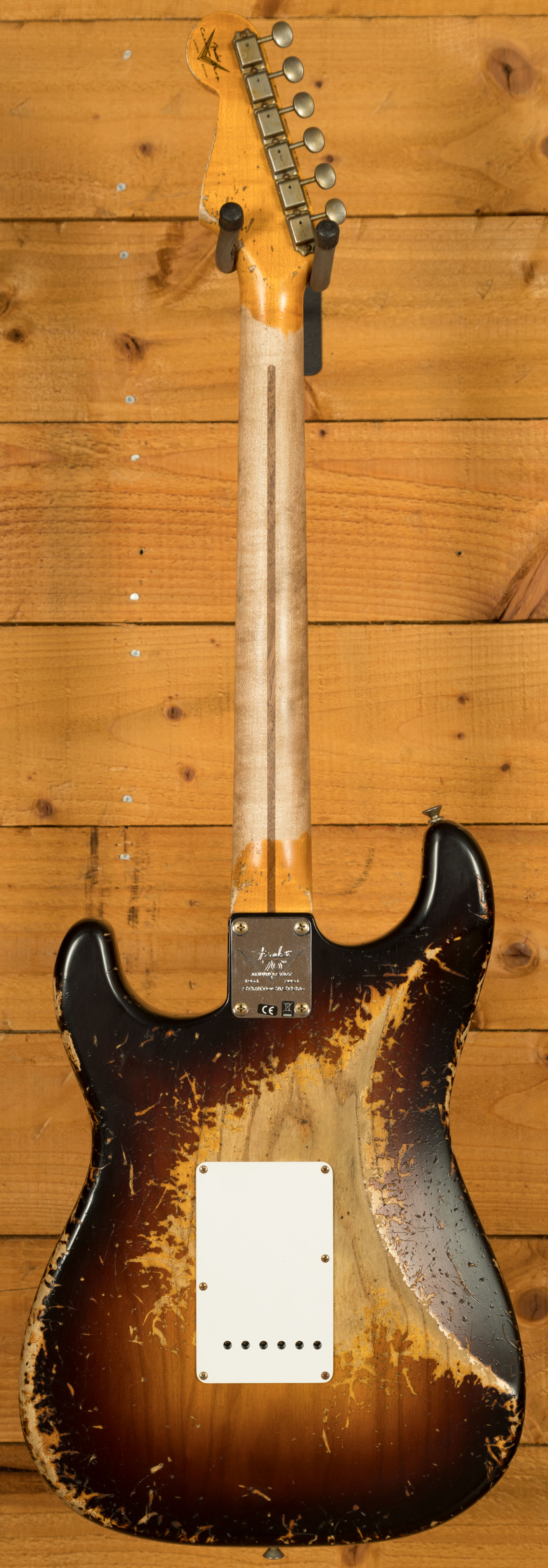 Constructed with a two-piece select ash body, featuring an offset seam on the treble side, this Stratocaster resonates with a balanced tonal spectrum - delivering articulate highs, rich midrange, and defined lows. Adorned with a stunning Wide Fade Two-Colour Sunburst lacquer finish, completed with an authentic Super Heavy Relic finish.