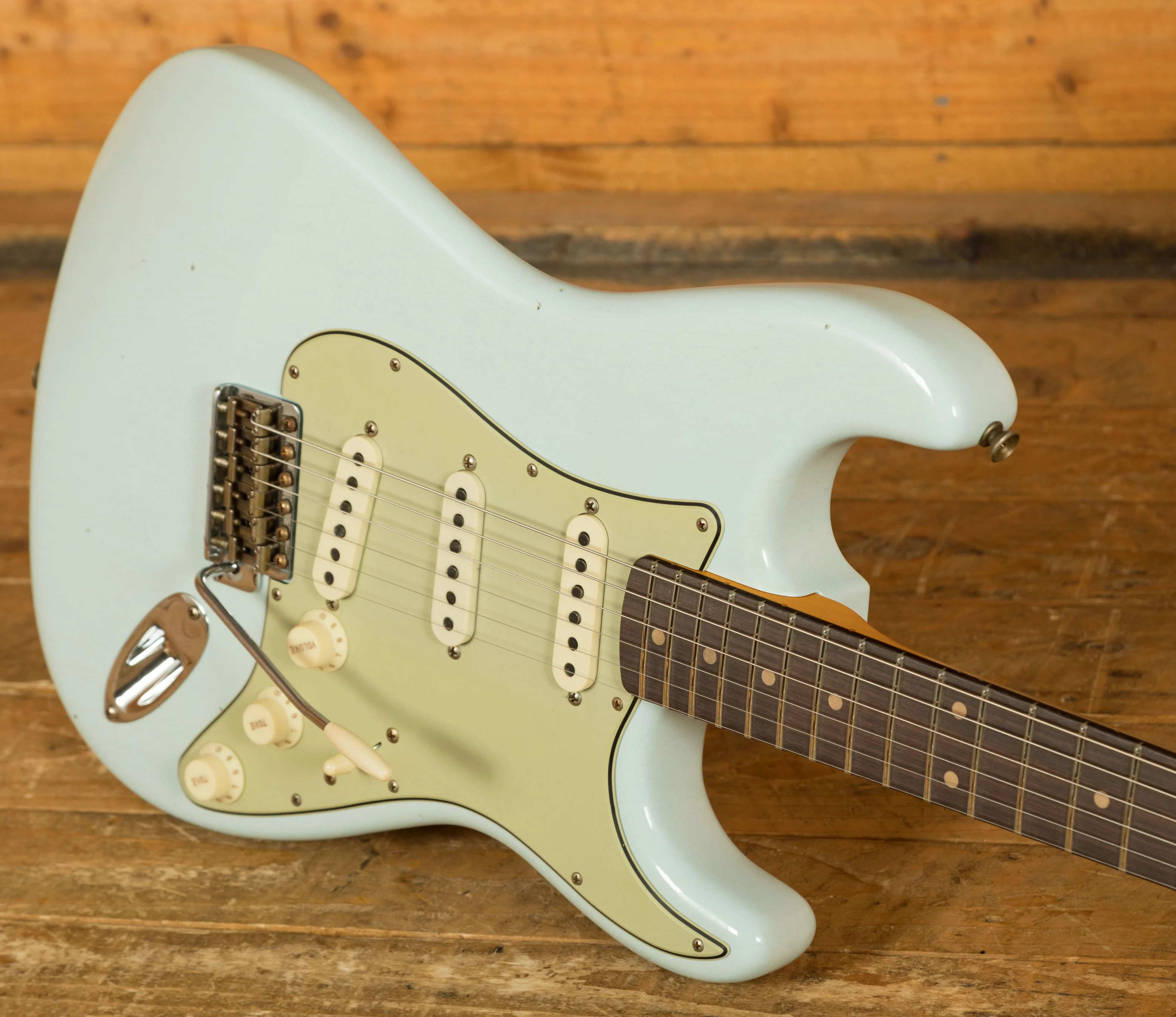 For those who relish the feel of a well-worn guitar with a comfortable neck and flawless fretwork ensuring spot-on intonation, Peach offers the ideal axe! The '60 Relic Strat is equipped with jumbo frets and a 9.5-inch radius, facilitating high bends without fretting out - an exquisite blend of vintage charm and contemporary performance.