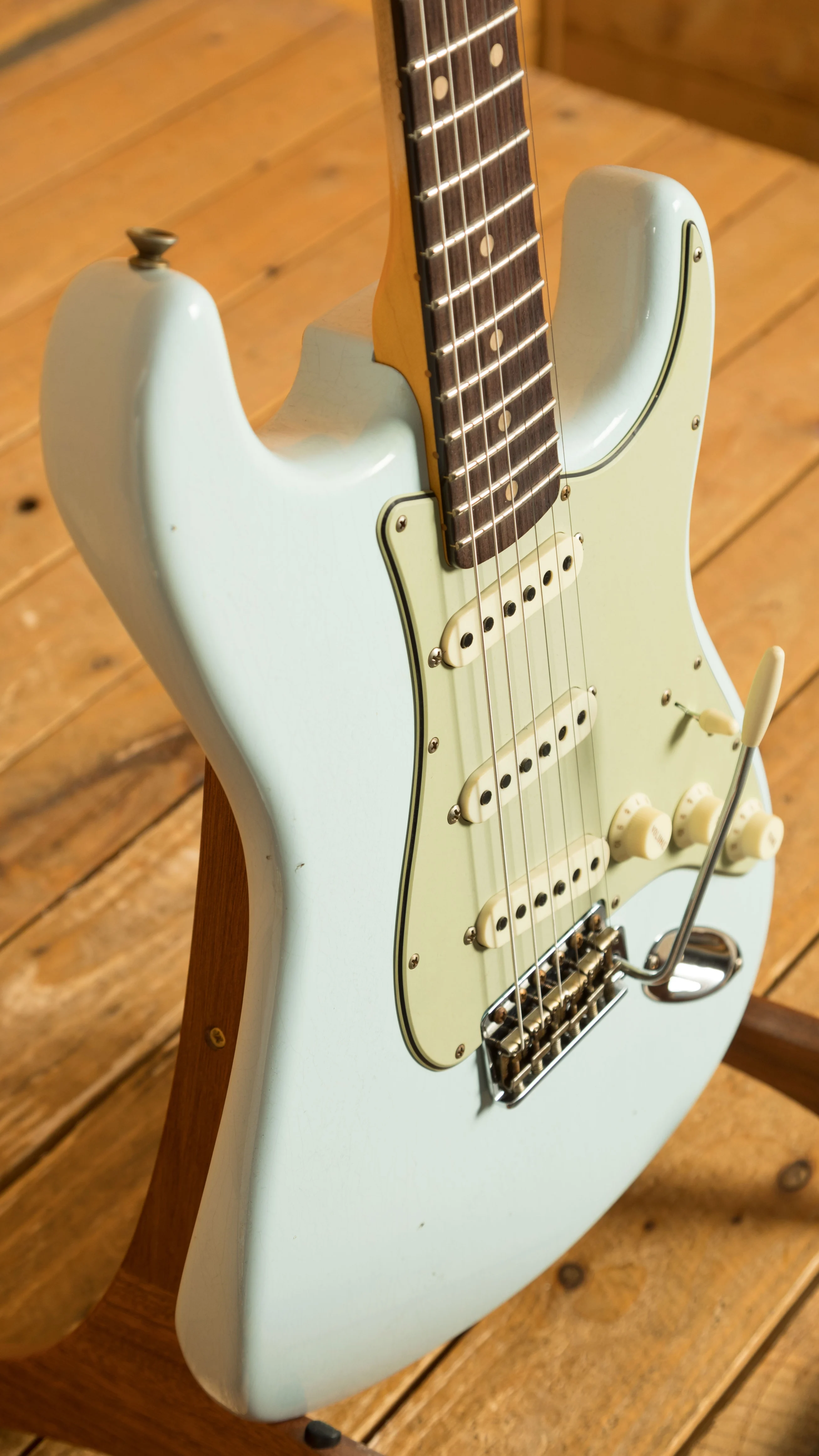 Remaining faithful to the essence of a genuine '60s model while incorporating modern player-friendly enhancements, the Fender Custom Shop Limited-edition 1960 Stratocaster Journeyman Relic features an AAA rosewood fingerboard adorned with Vintage Clay Dot inlays. The modern 9.5-inch radius and jumbo frets enhance playability, catering to players who enjoy executing wide bends and vibrant vibrato techniques.