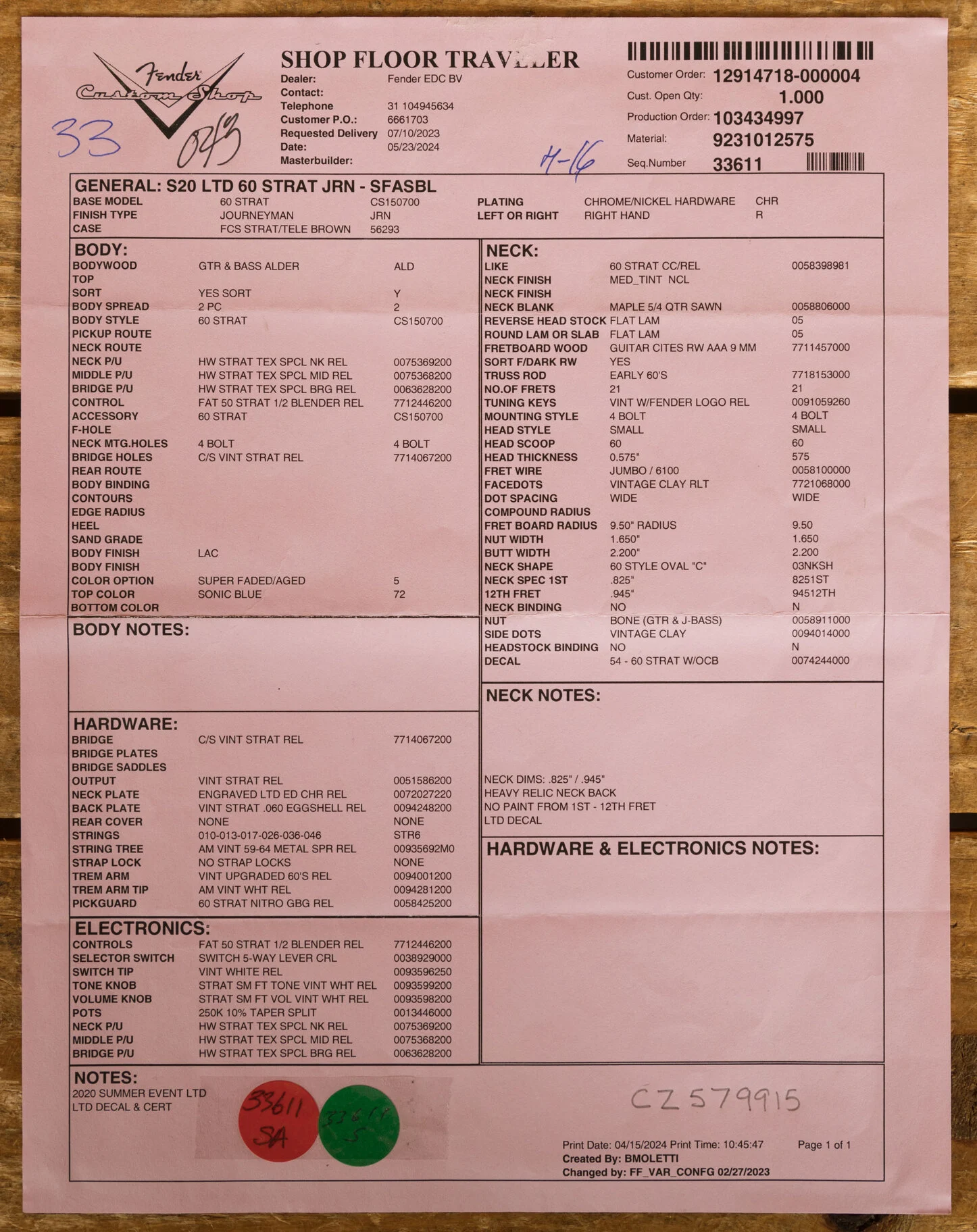 This 1960 reproduction Strat has been meticulously crafted by master luthiers at Fender's Custom Shop to capture the iconic spank, sparkle, and vibe of the original, all without requiring a hefty investment or frequent visits to your luthier. Despite its vintage appearance, thanks to its Journeyman Relic finish, this axe boasts a remarkably playable '60s Oval "C"-profile maple neck and modern jumbo frets on a 9.5-inch-radius rosewood fingerboard. Equipped with genre-defining Texas Special single-coils and classic 5-way switching, the Fender Custom Shop Limited-edition 1960 Stratocaster Journeyman Relic is primed to satisfy your craving for impeccable tone and addictive playability.