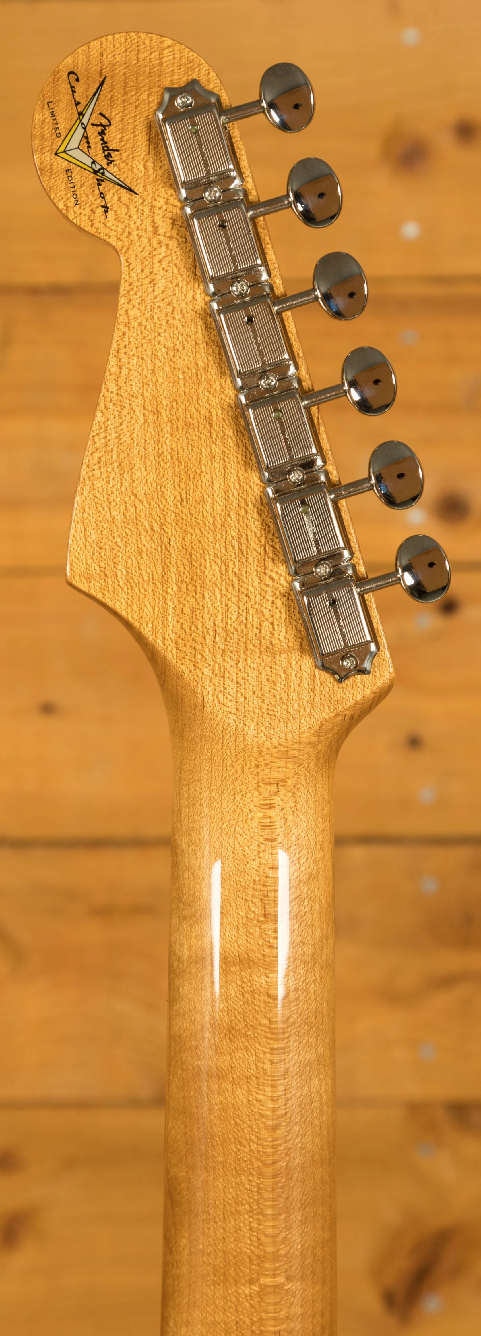 The Roasted Quartersawn Maple neck has a slick finish. With a 9.5" radius and 21 6105 frets, the Custom Shop Stratocaster also features a Large “C" neck shape which measures .850" at the 1st fret and .990" at the 12th fret. It's supremely comfortable and well balanced.
