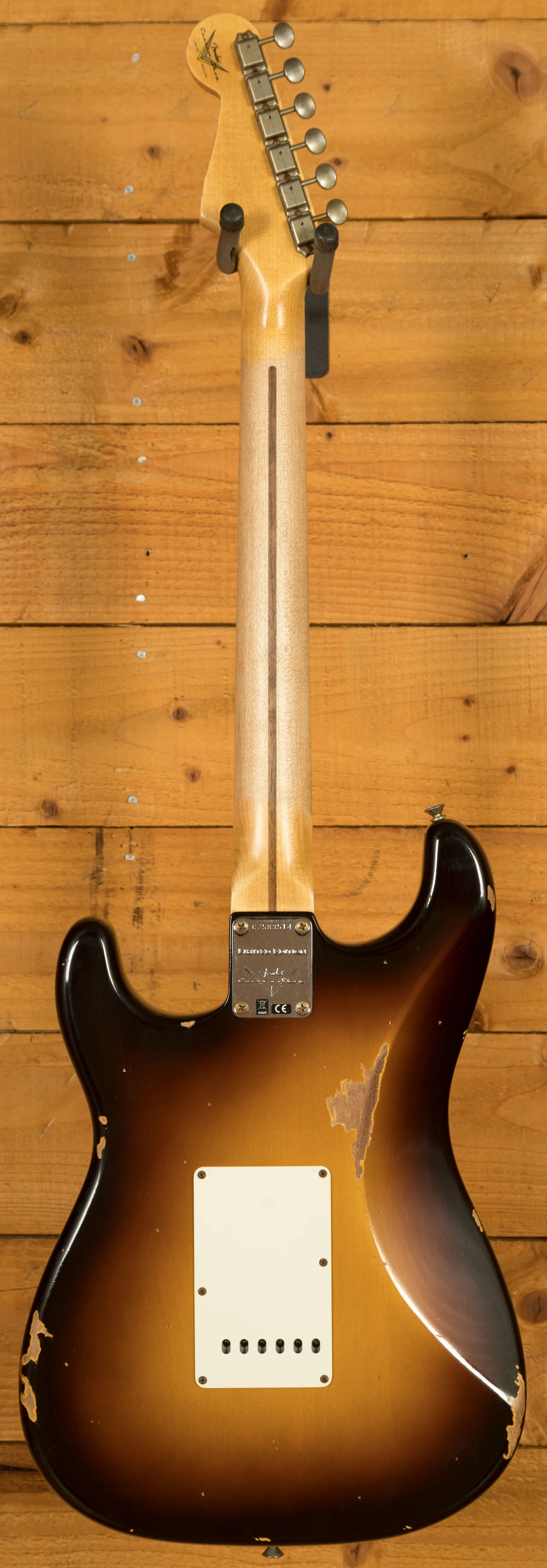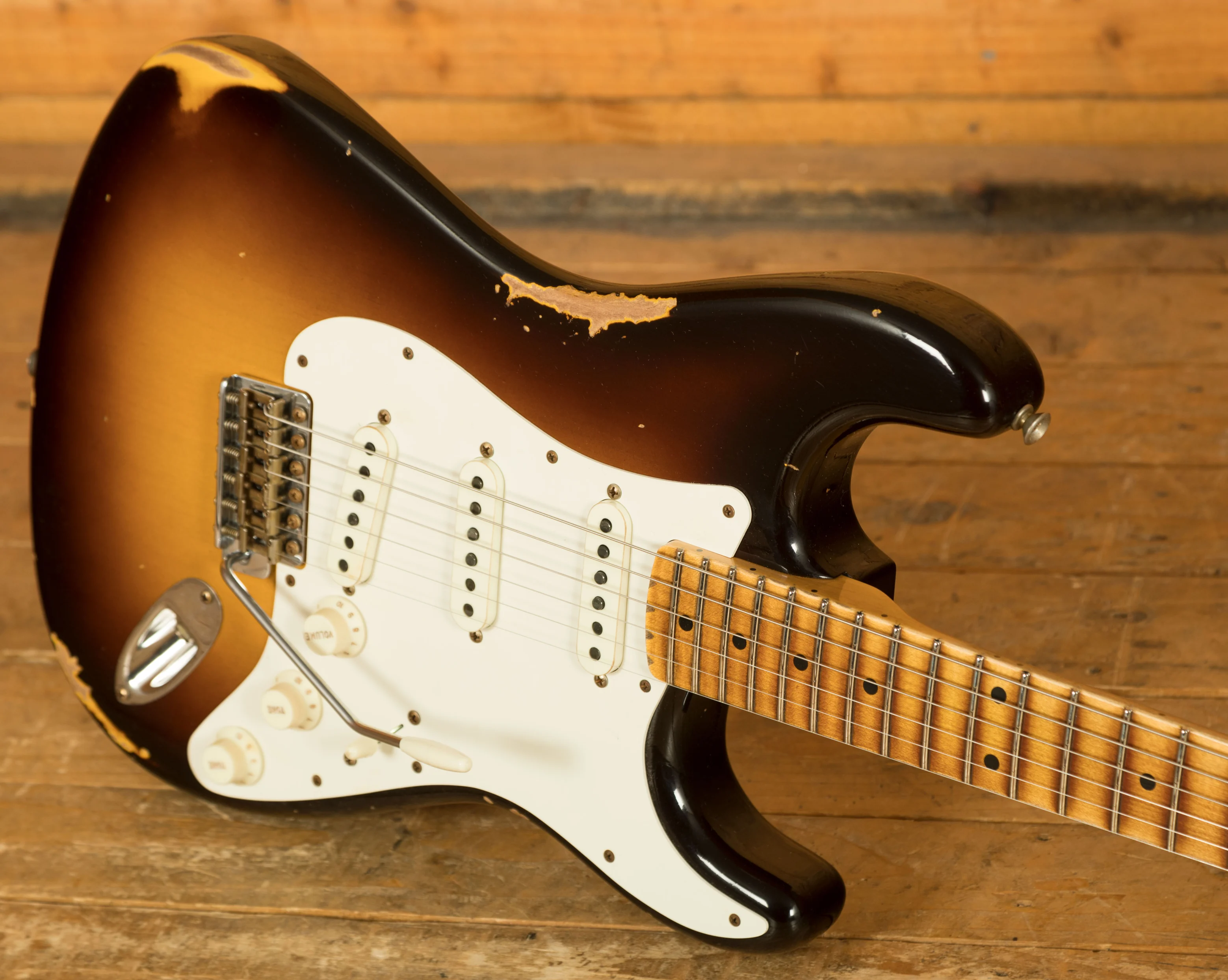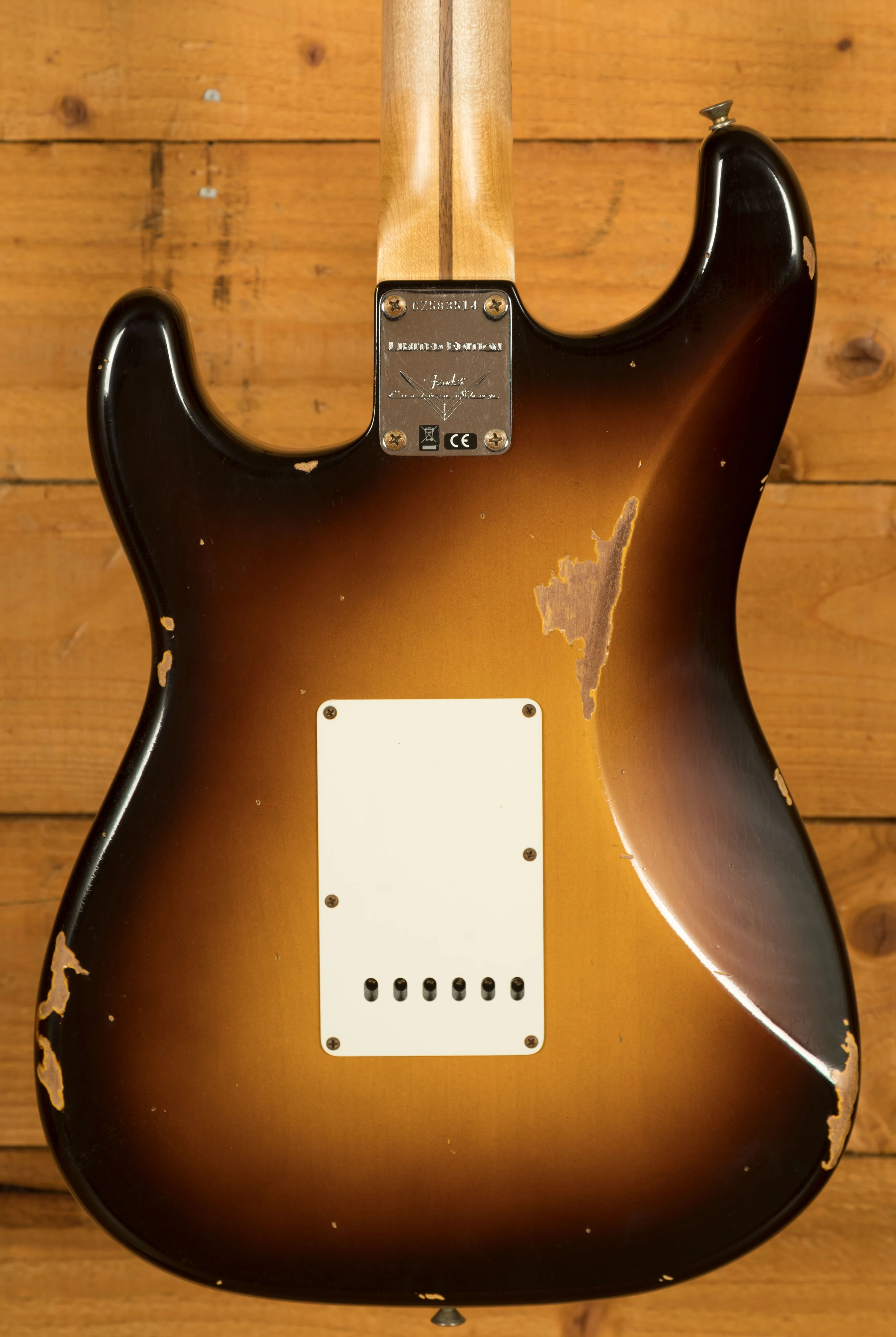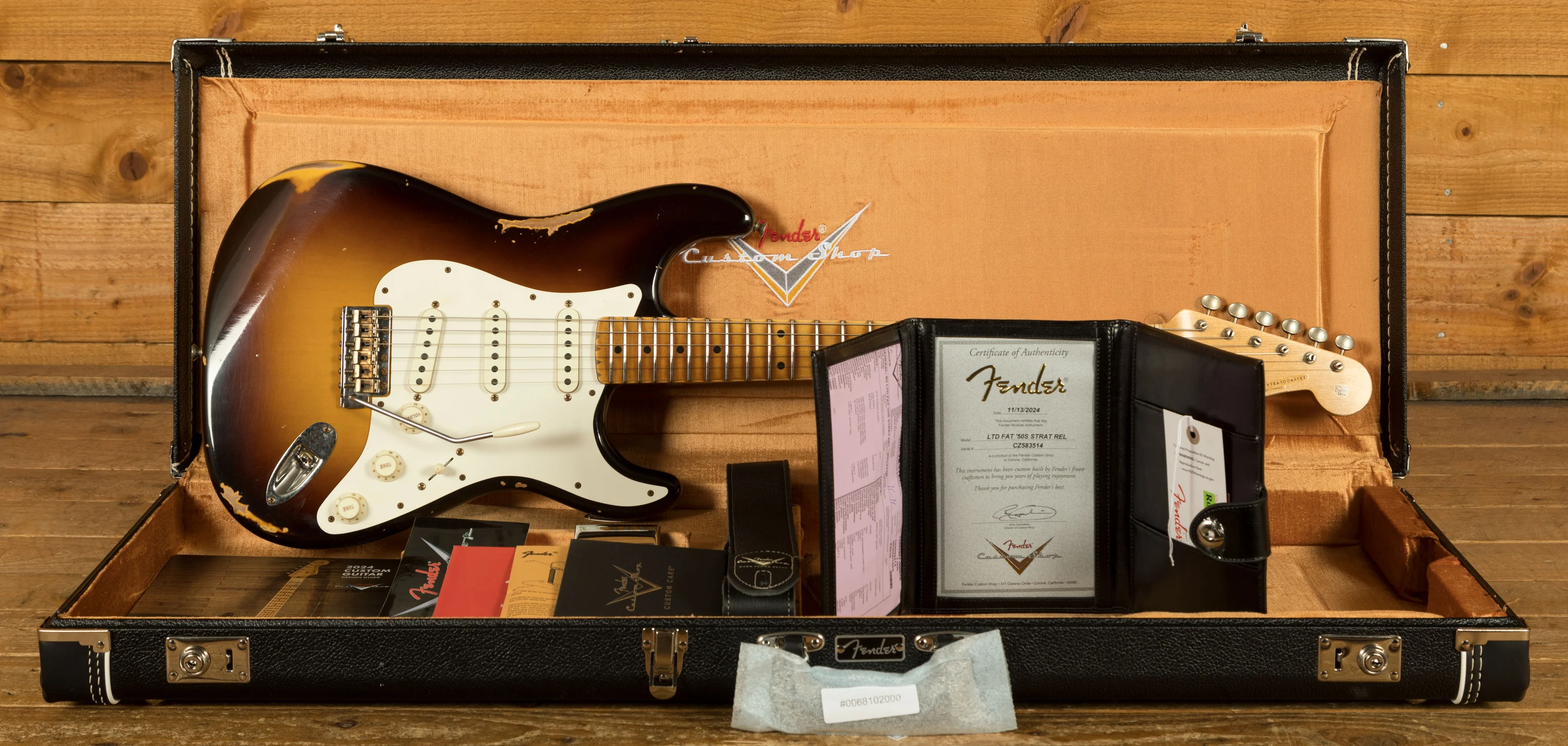 The Fender Custom Shop Limited Fat '50s Stratocaster is a meticulously crafted guitar that pays tribute to the iconic design and sound of the 1950s while incorporating modern enhancements. Built with a two-piece select alder body, it features deep contours for exceptional playing comfort and a Relic lacquer finish with finely detailed finish checking. This creates the look and feel of a vintage instrument that would take decades to achieve naturally, achieved by the skilled artisans at the Fender Custom Shop.
