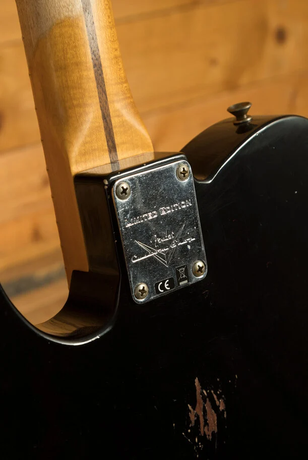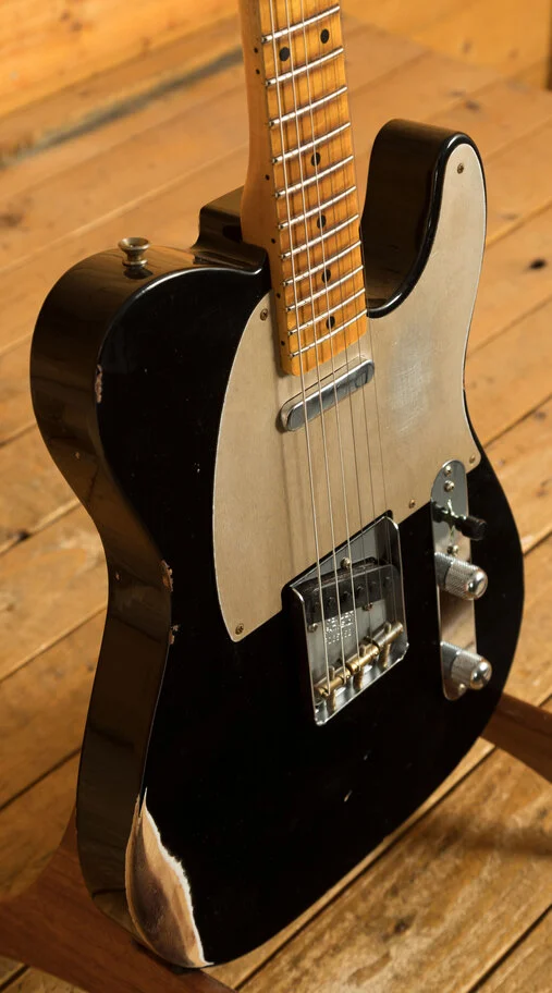 The sort for lightweight Ash body is finished in a slick Aged Black nitro lacquer. Authentically aged, this finish will wear beautifully with time and develop its own character even further. It also allows the natural resonance of the body to sing and sustain much more effectively compared with other more modern finishes. The addition of a gold anodized pickguard is a lovely touch!