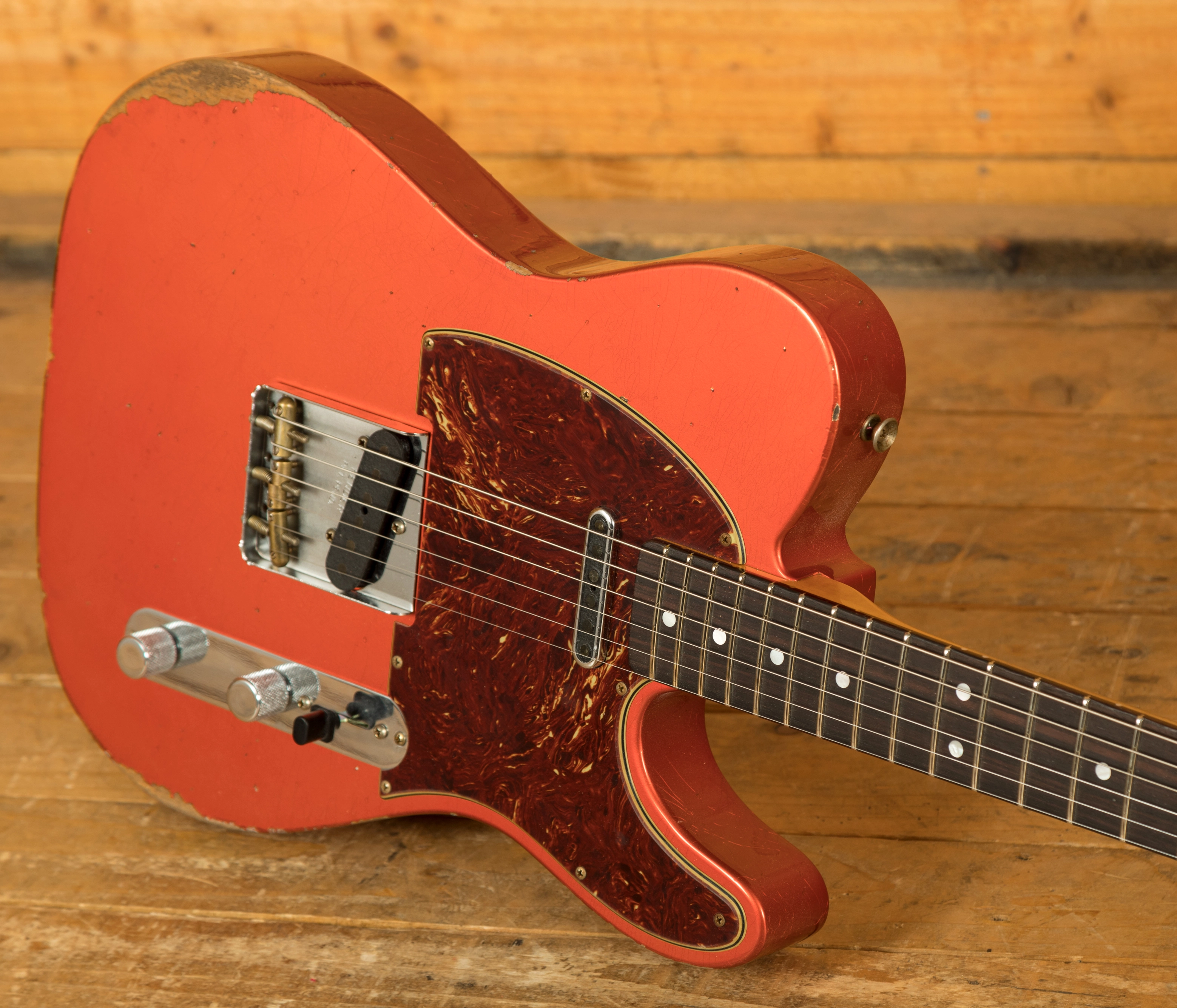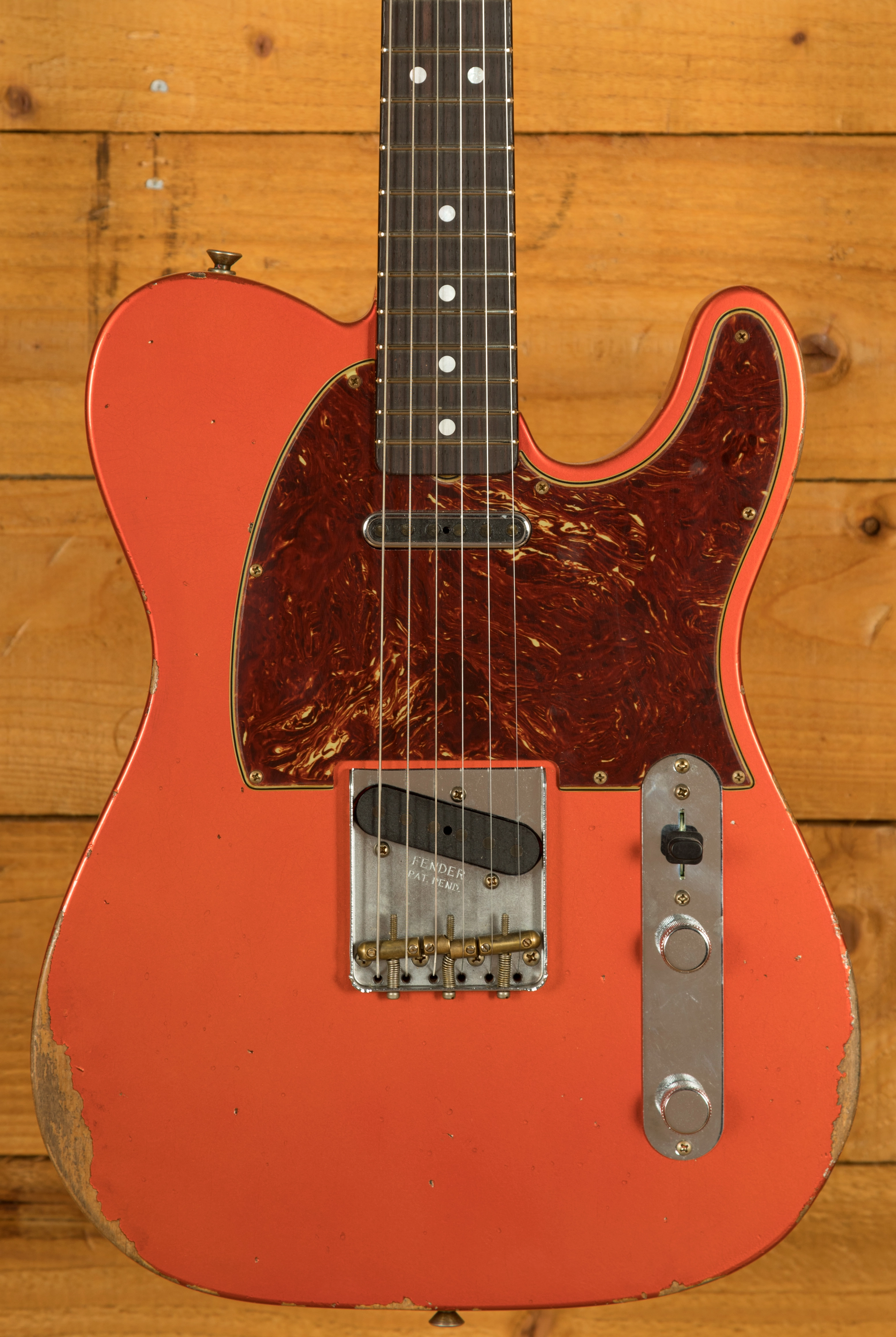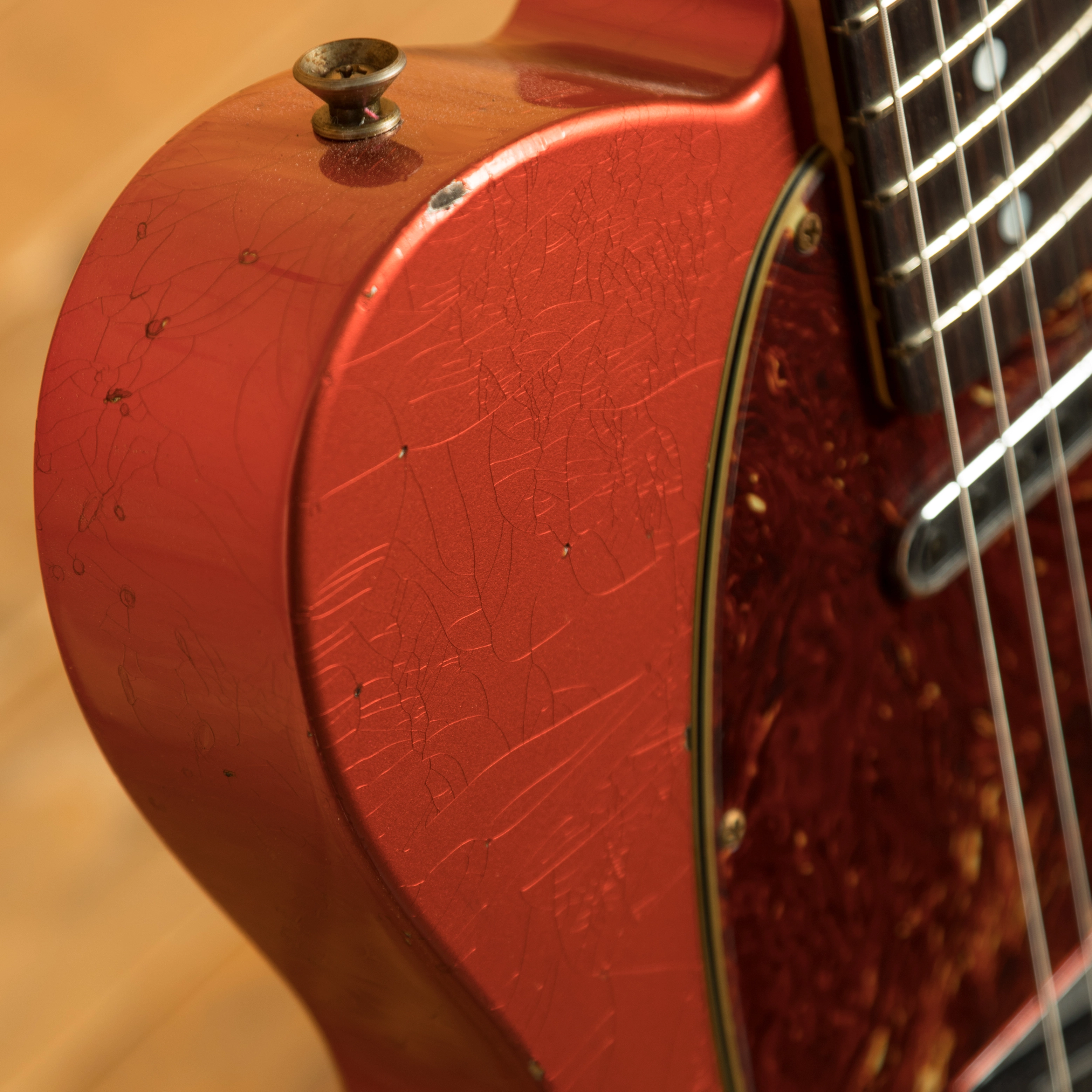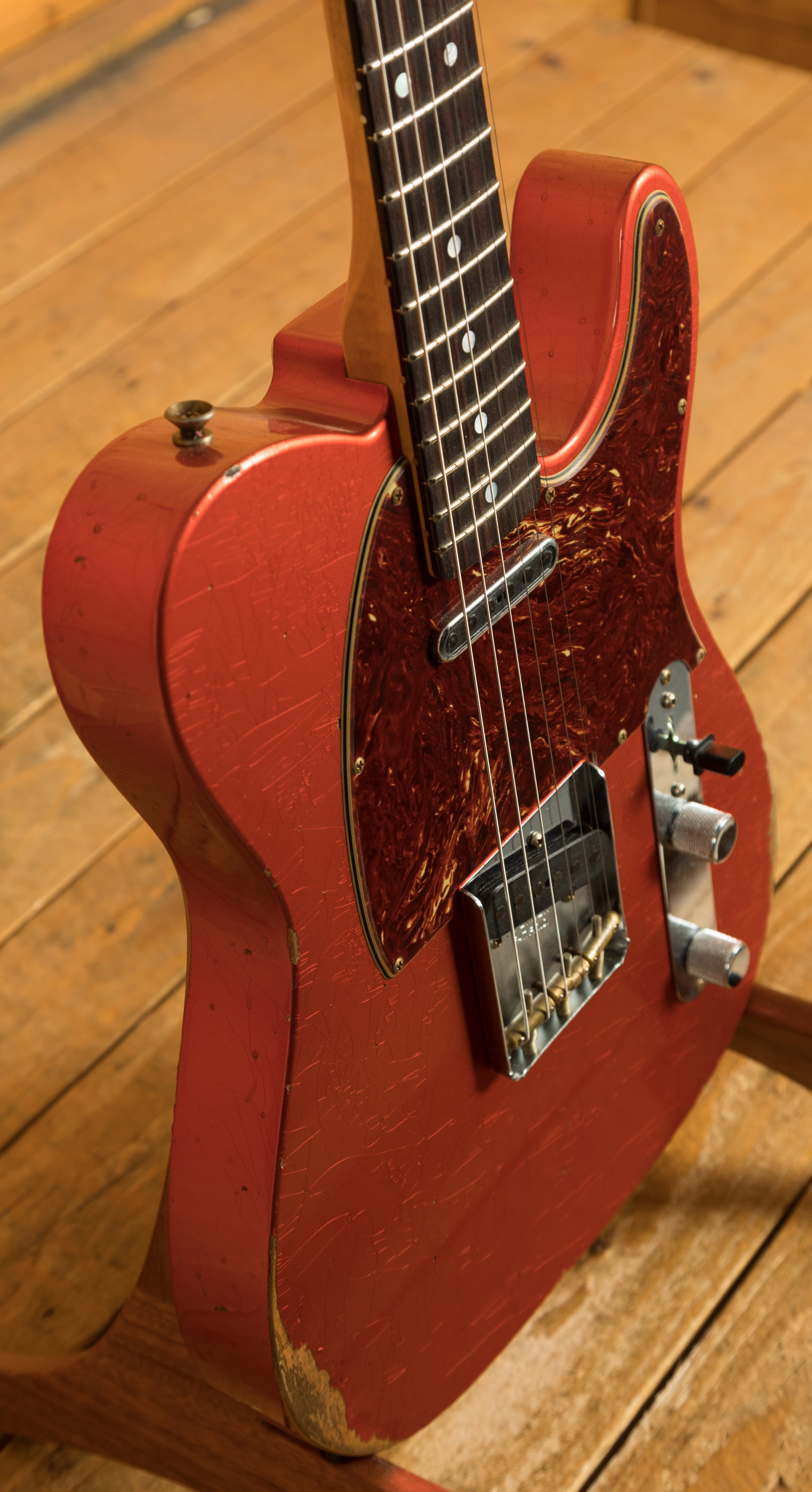 The sort for lightweight Alder body is finished in a classic Aged Candy Tangerine nitro lacquer, period correct, this finish will wear beautifully with time and develop its own character even further. It also allows the natural resonance of the body to sing and sustain much more effectively compared with other finishes. The ageing on display here is just incredible, authentic and meticulously applied, it’s a work of art.