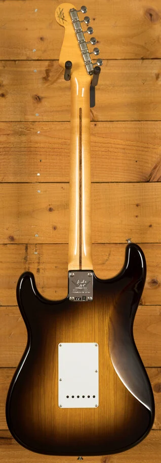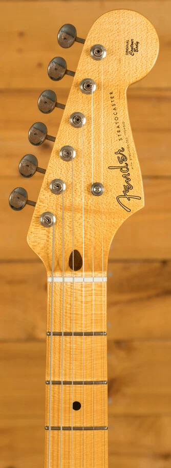 The neck of the 70th Anniversary 1954 Stratocaster is constructed from one-piece quartersawn maple, boasting a special Soft "V" profile inspired by a renowned Strat neck from July 1954. Paired with a vintage compound-radius fingerboard ranging from 7.25" to 9.5" and adorned with 21 medium vintage frets, this neck offers exceptional playability and comfort. Equipped with three Custom Shop hand-wound '54 Strat pickups, this instrument captures the timeless Stratocaster sound, characterised by clear, bell-like highs and versatile tonal options facilitated by vintage '54 Strat wiring and a five-way switching system.