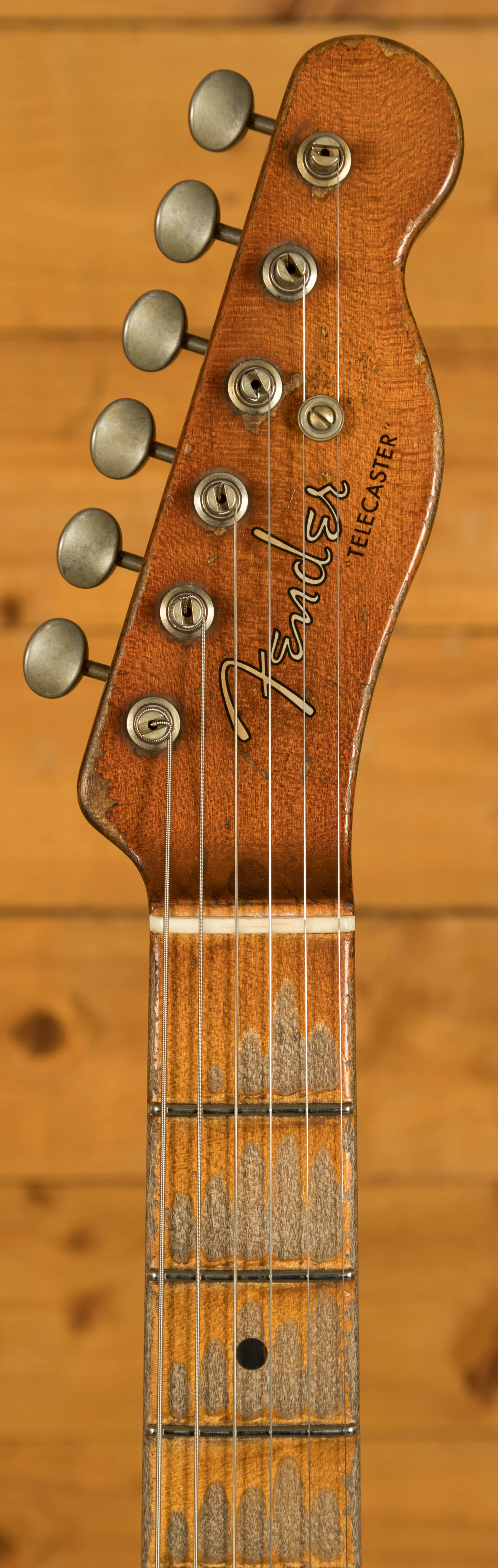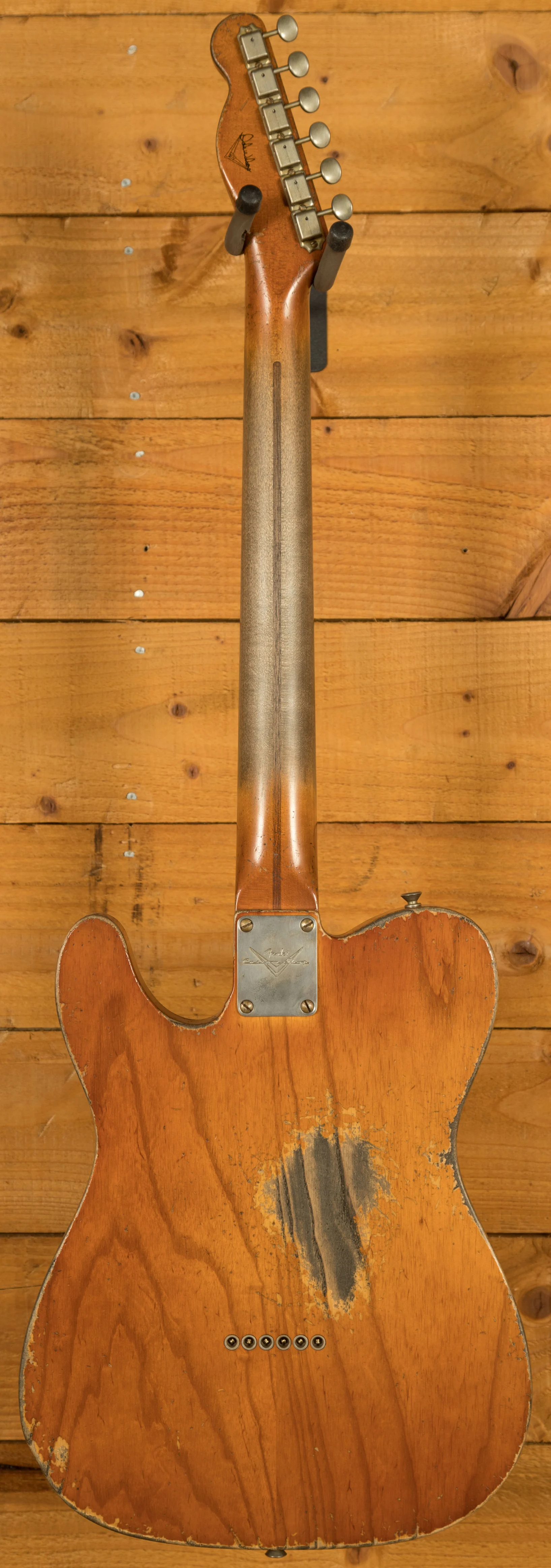 The Dirty Aged Natural nitrocellulose lacquer finish is a stunning heavy-relic work of art, giving the guitar an amazing aged appearance with intricate details. Every nick, wear spot, and relic treatment has been applied meticulously to create an authentic, time-worn aesthetic that feels like a guitar with decades of stage experience. It's been done by the best of the best. This piece also features Vintage Style Fender Relic Tuning Keys, narrow tall 6105 frets, and a classic Fender Custom Shop Tweed Hardcase for safe transport and storage.