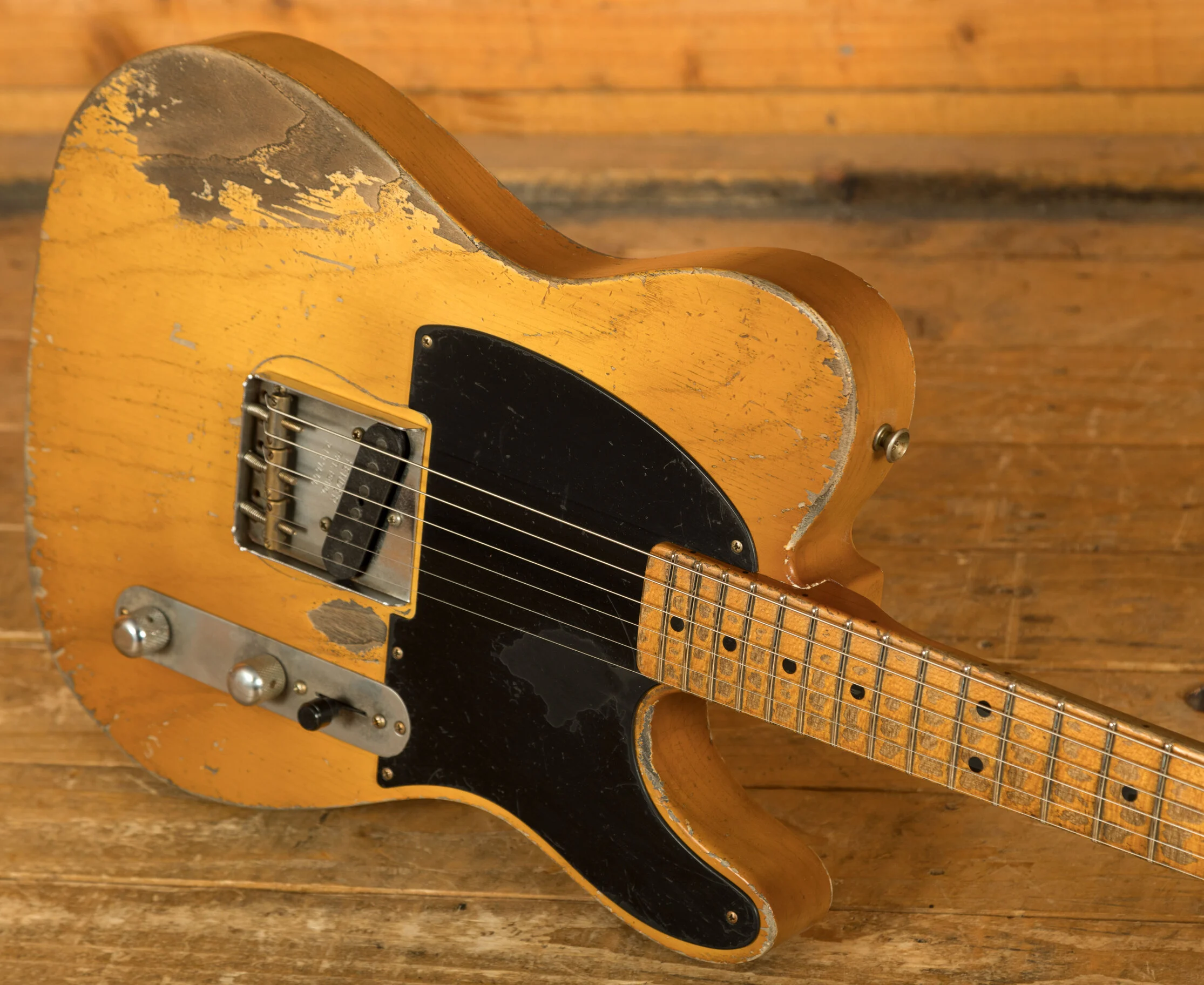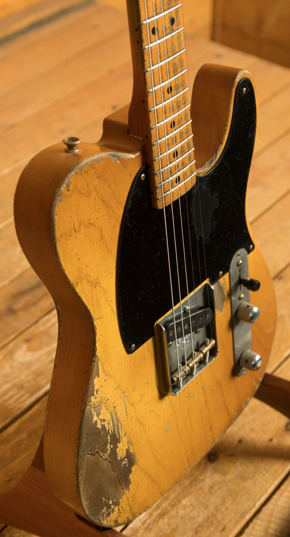 The body is crafted from sort-for-lightweight ash, ensuring excellent resonance while keeping the instrument comfortable during extended playing sessions. It features a Nocaster Blonde nitrocellulose lacquer finish in Fender's Heavy Relic ageing, providing the look and feel of a well-played vintage instrument without sacrificing structural integrity. This ageing process is applied by hand and showcases Wilson's mastery of vintage aesthetics.