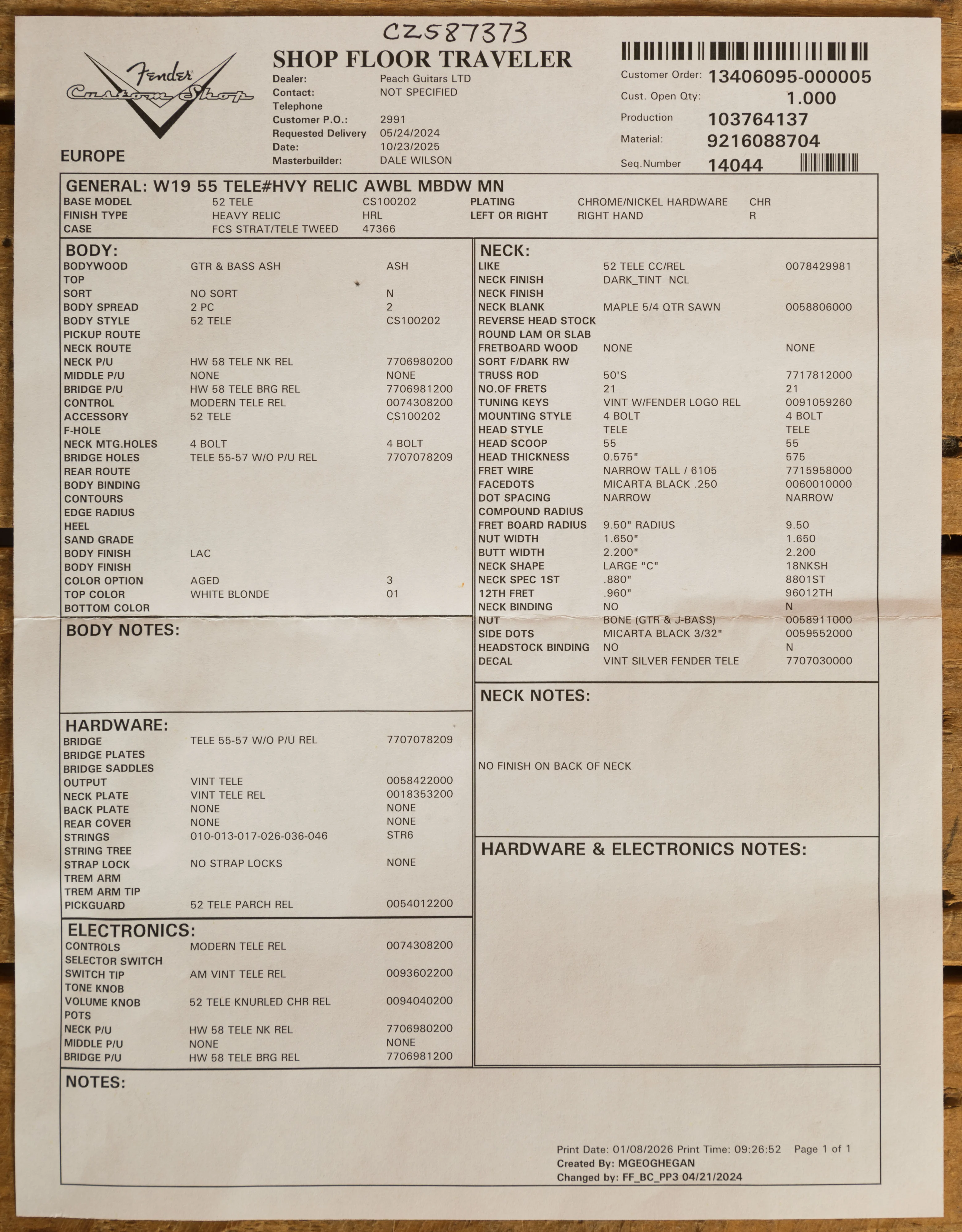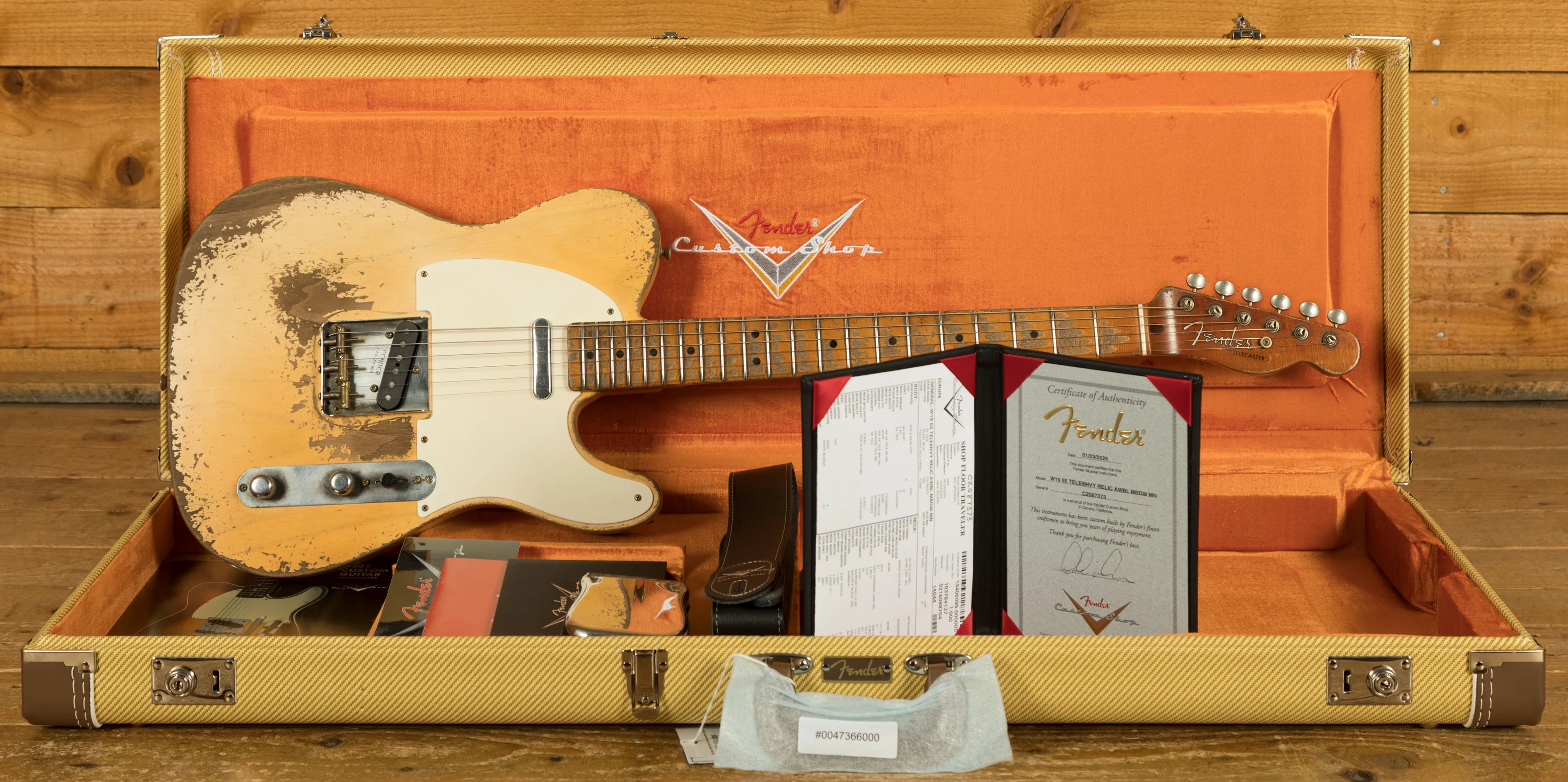 The Ash body is finished in a Heavy Relic Aged White Blonde nitro lacquer, period correct, this finish will wear beautifully with time and develop its own character even further. It also allows the natural resonance of the body to sing and sustain much more effectively compared with other finishes. The Heavy Relic really showcases just why Dale Wilson is the king of the Fender Custom Shop - with exquisite attention to detail, it looks just like it's been on tour since 1955.