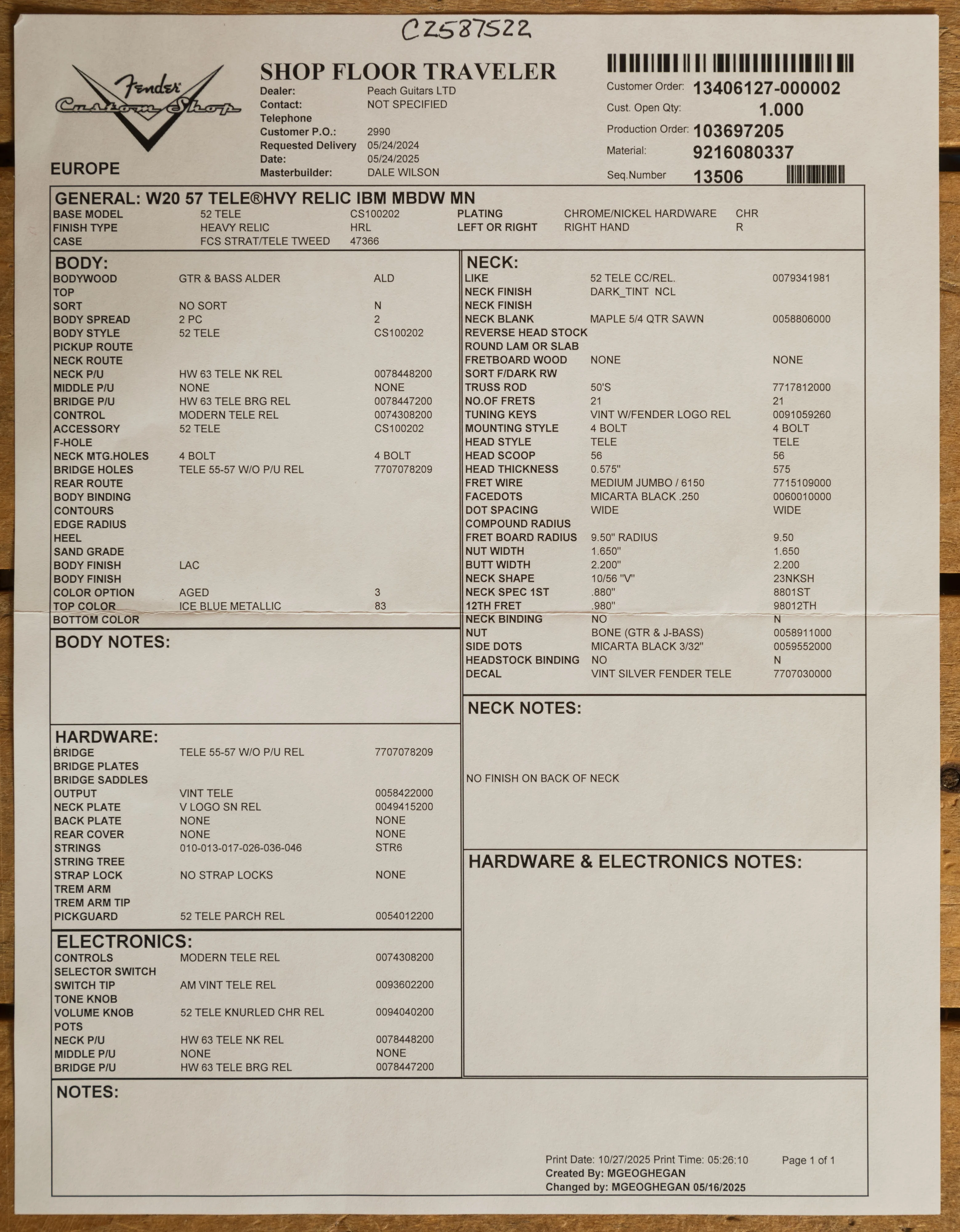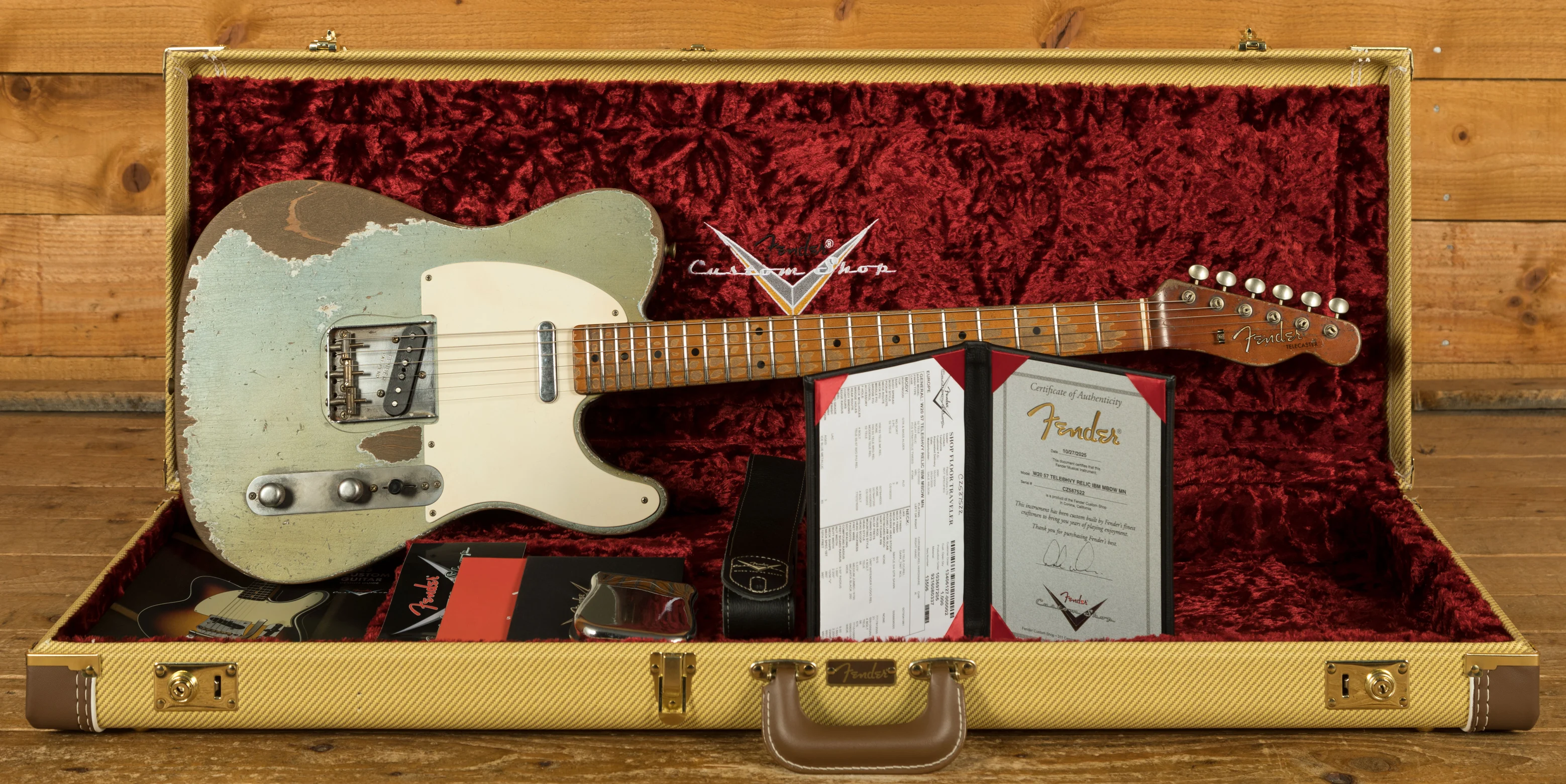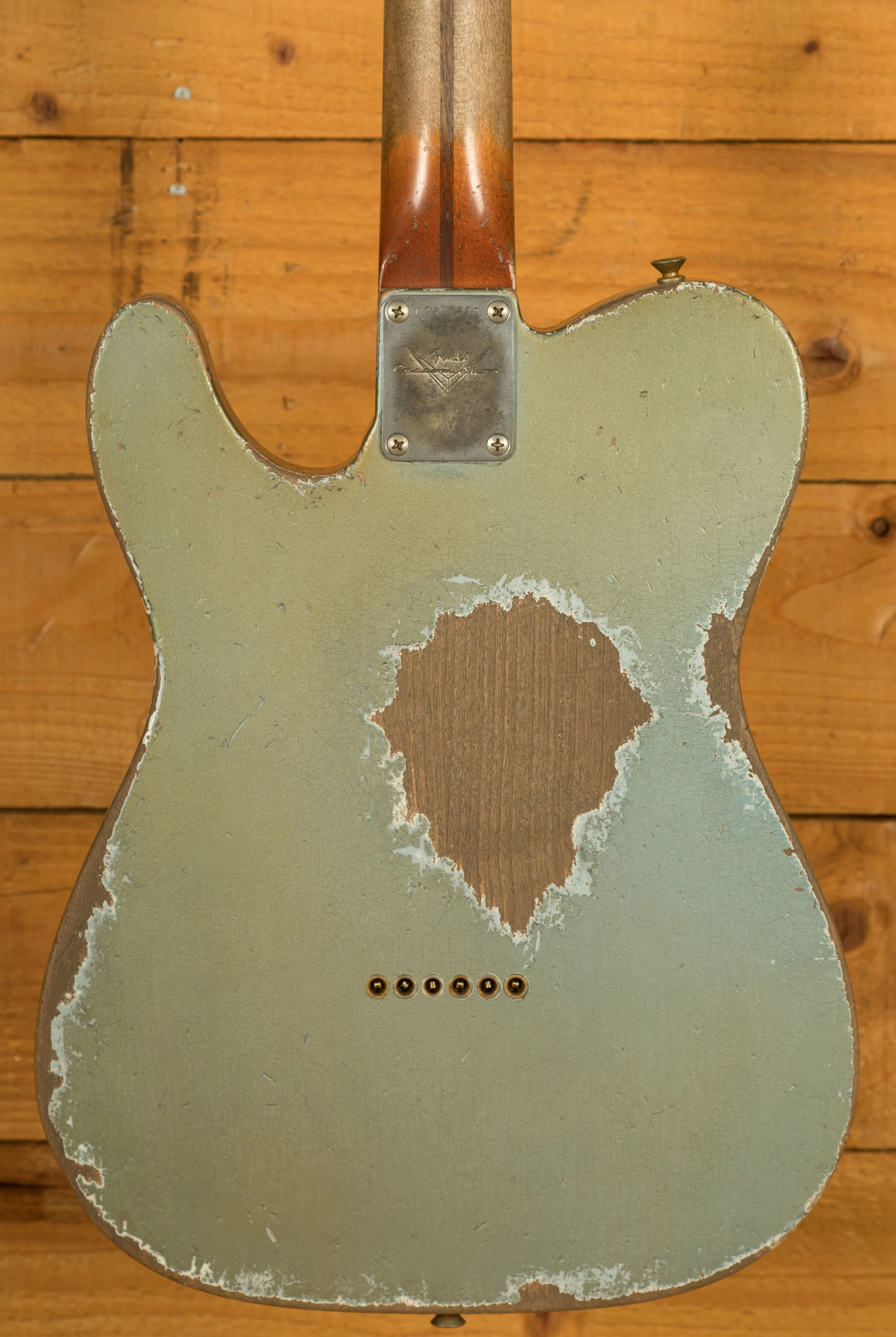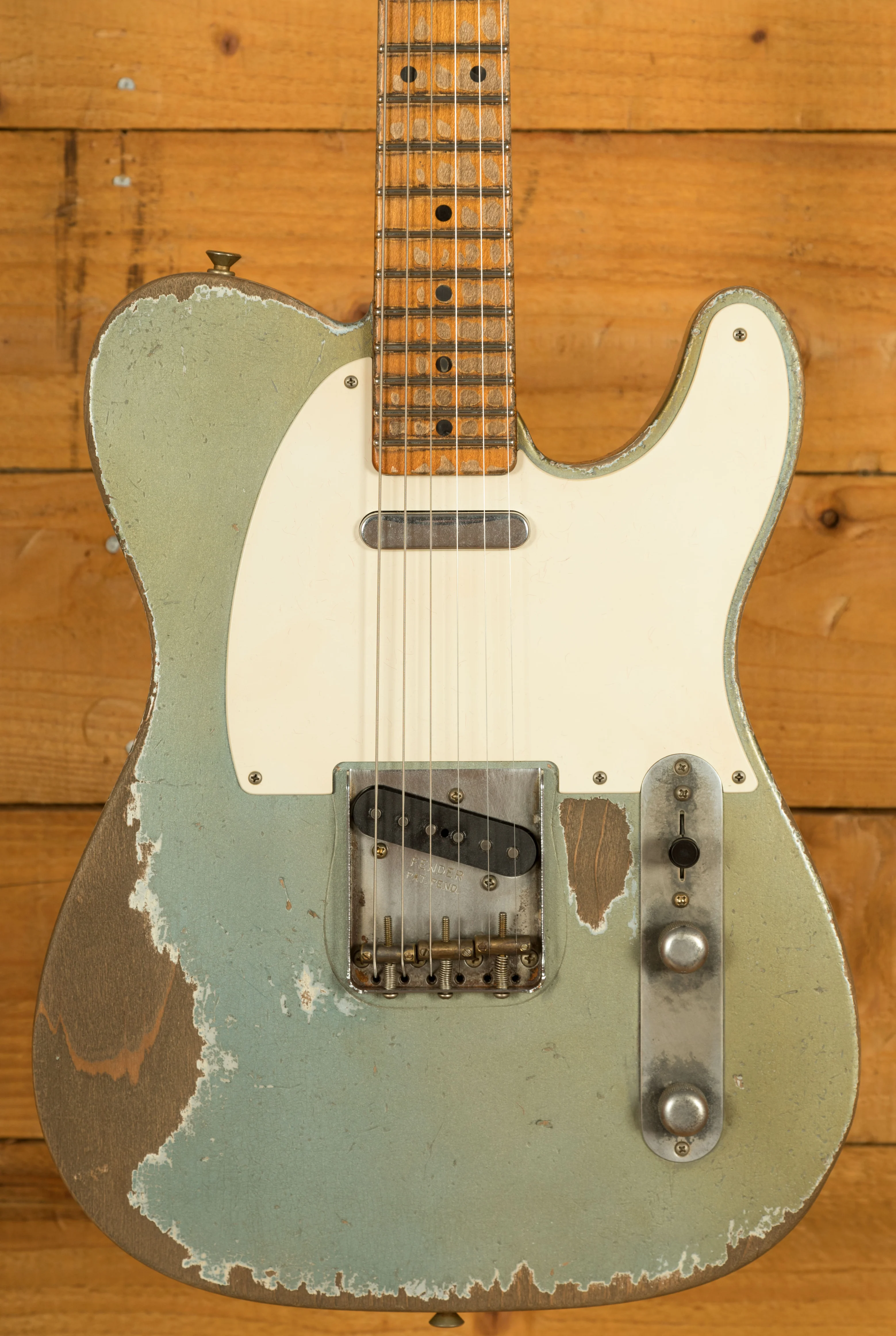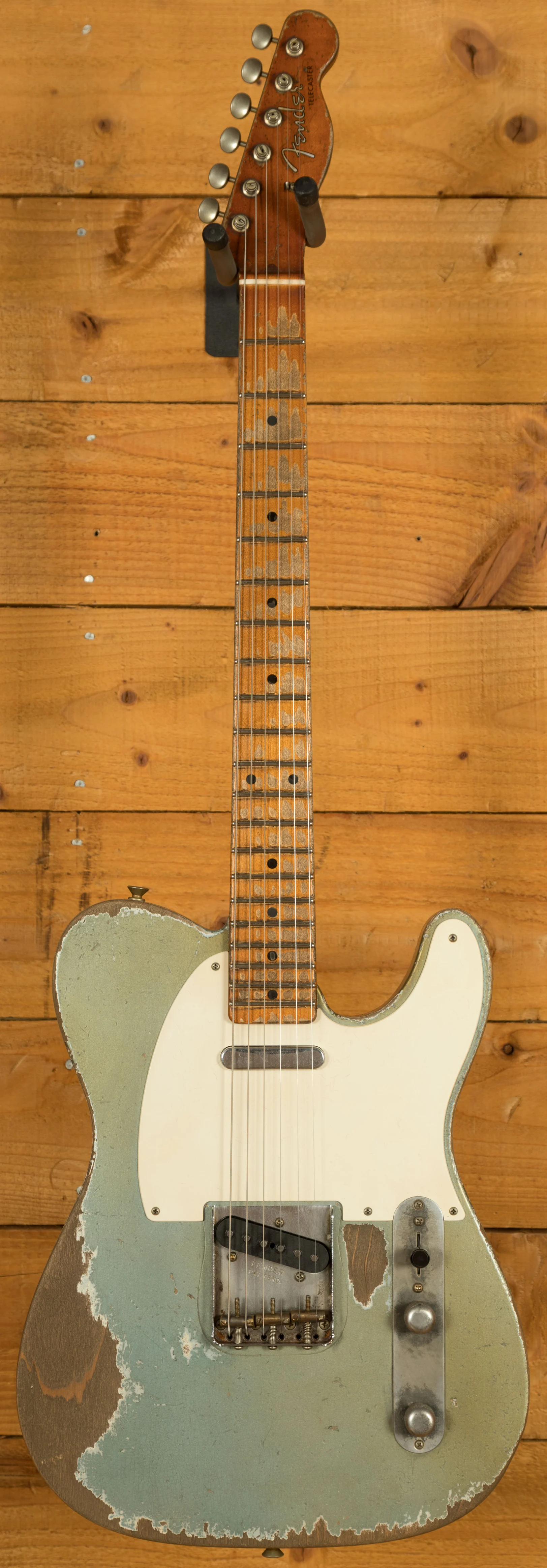 The Alder body is finished in a Heavy Relic Ice Blue Metallic nitro lacquer, period correct, this finish will wear beautifully with time and develop its own character even further. It also allows the natural resonance of the body to sing and sustain much more effectively compared with other finishes. The Heavy Relic really showcases just why Dale Wilson is the king of the Fender Custom Shop - with exquisite attention to detail, it looks just like it's been on tour since 1957.