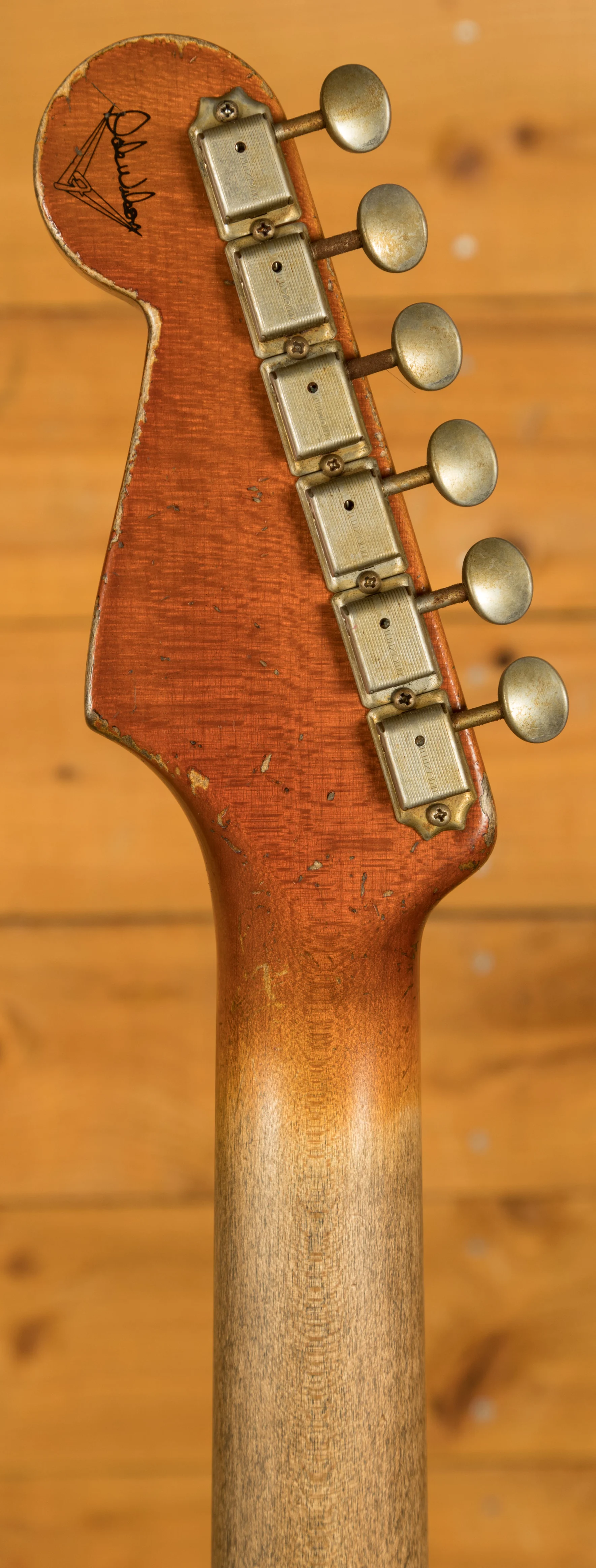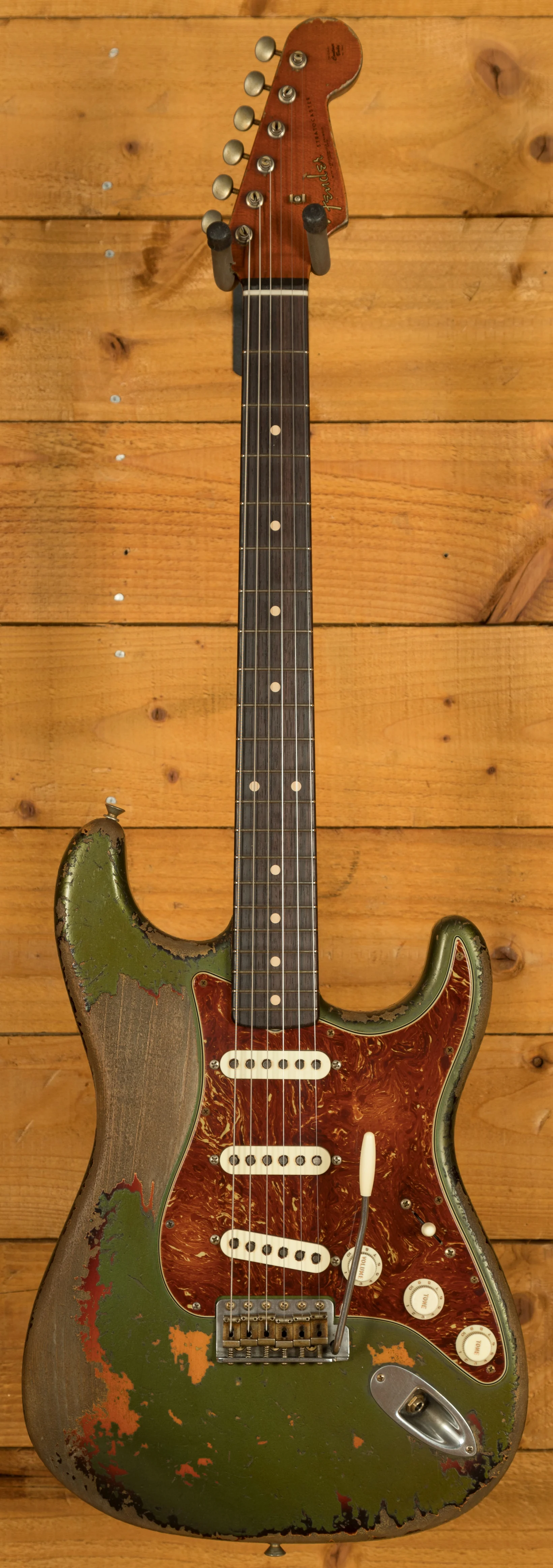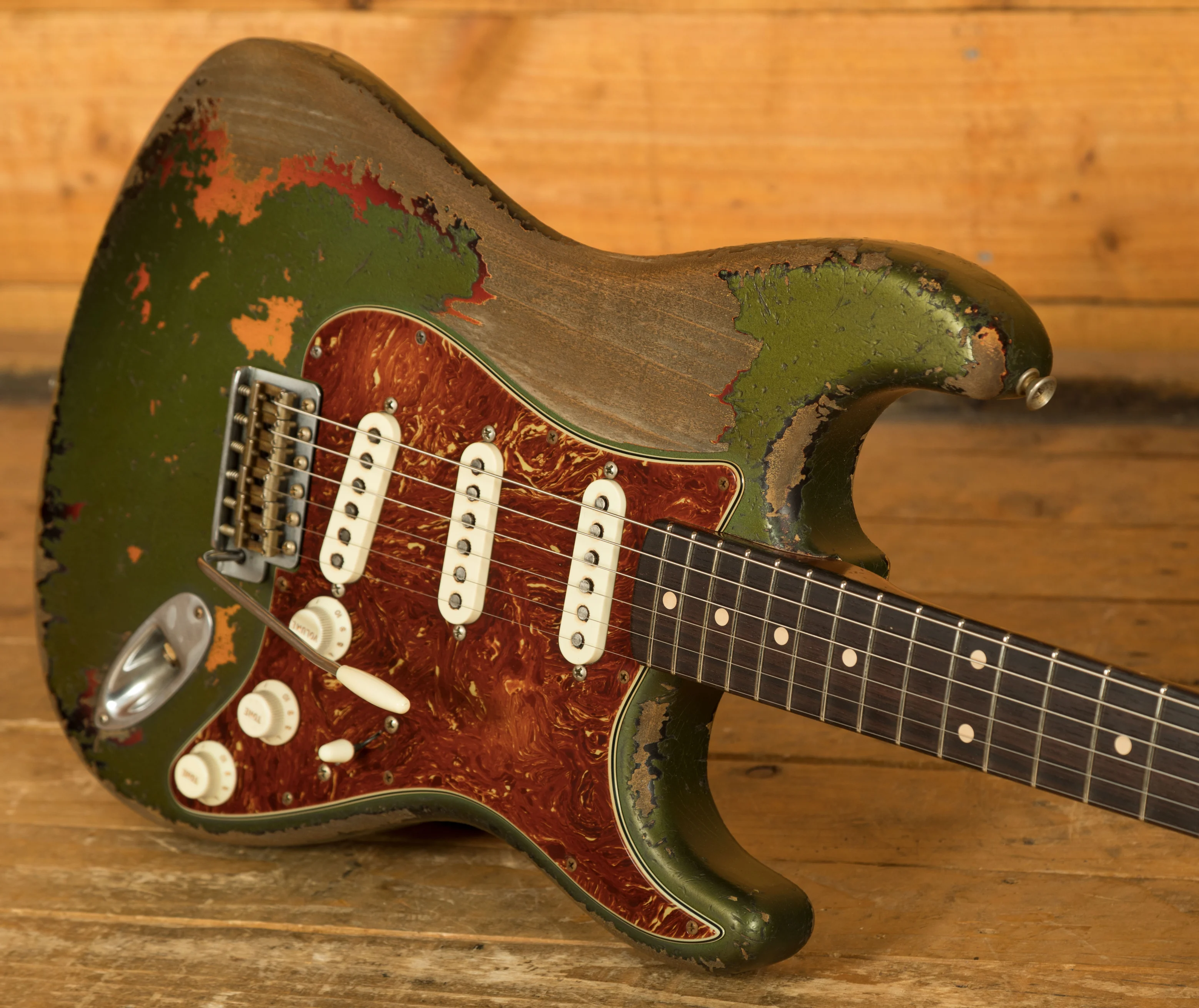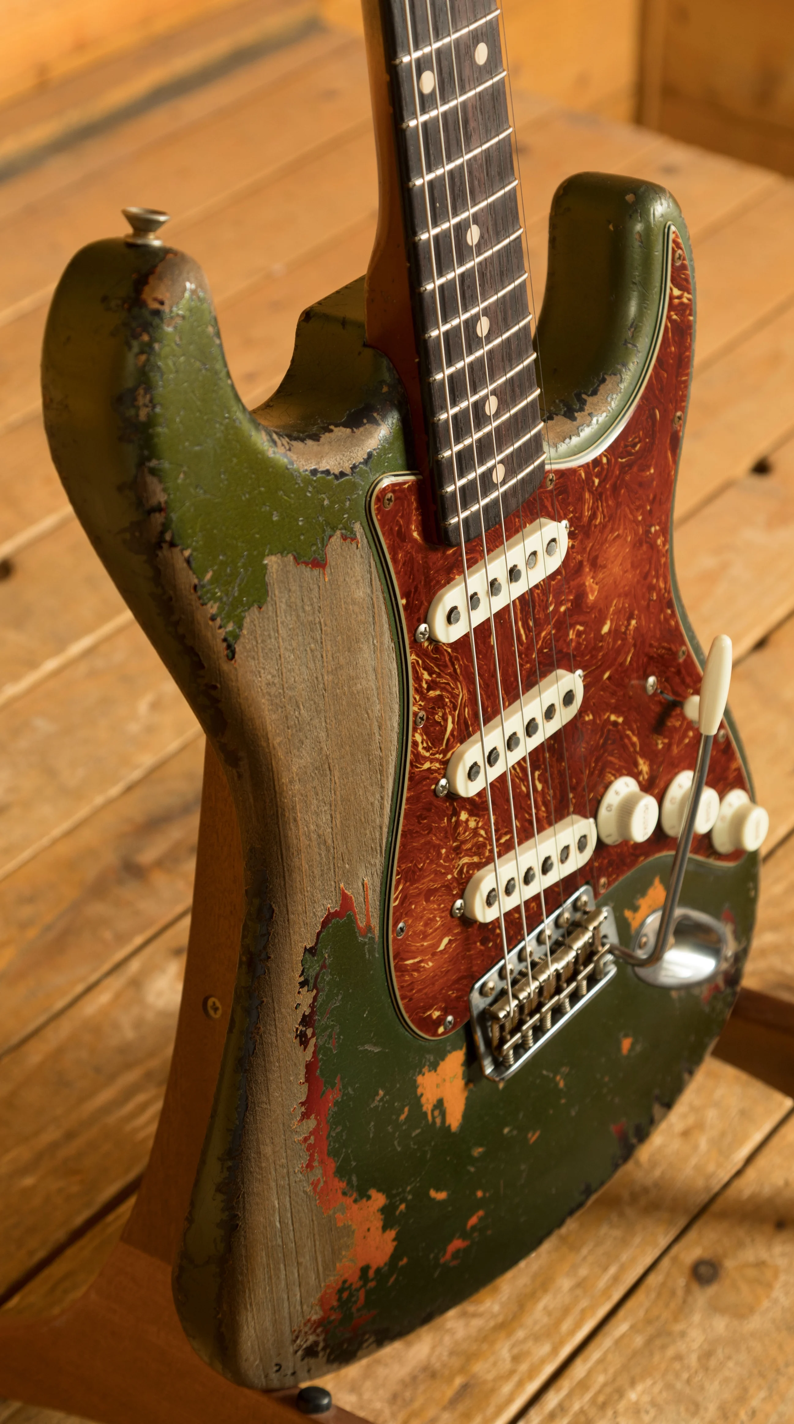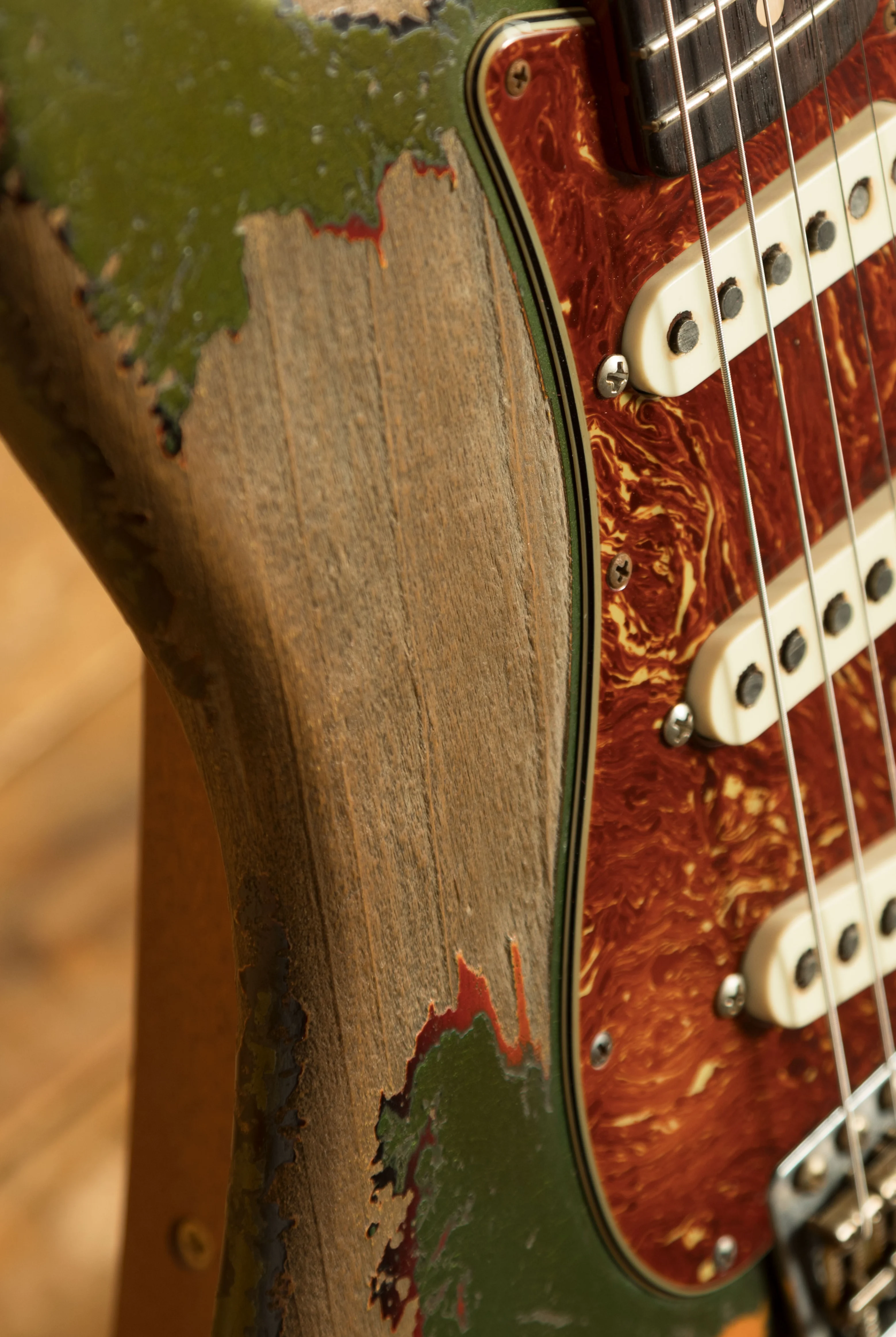 The traditional Alder body is finished in a stunning Heavy Relic Cadillac Green over 3-Tone Sunburst nitro lacquer. The thin nitro finish also allows the natural resonance of the body to sing and sustain much more effectively.