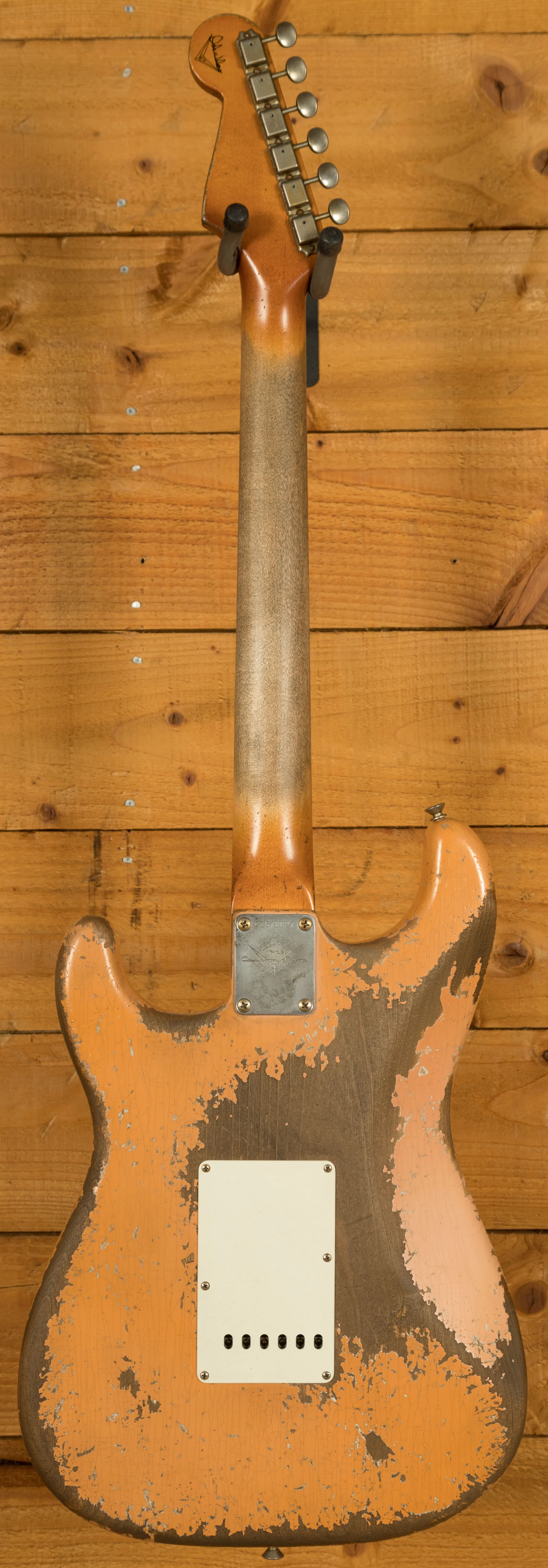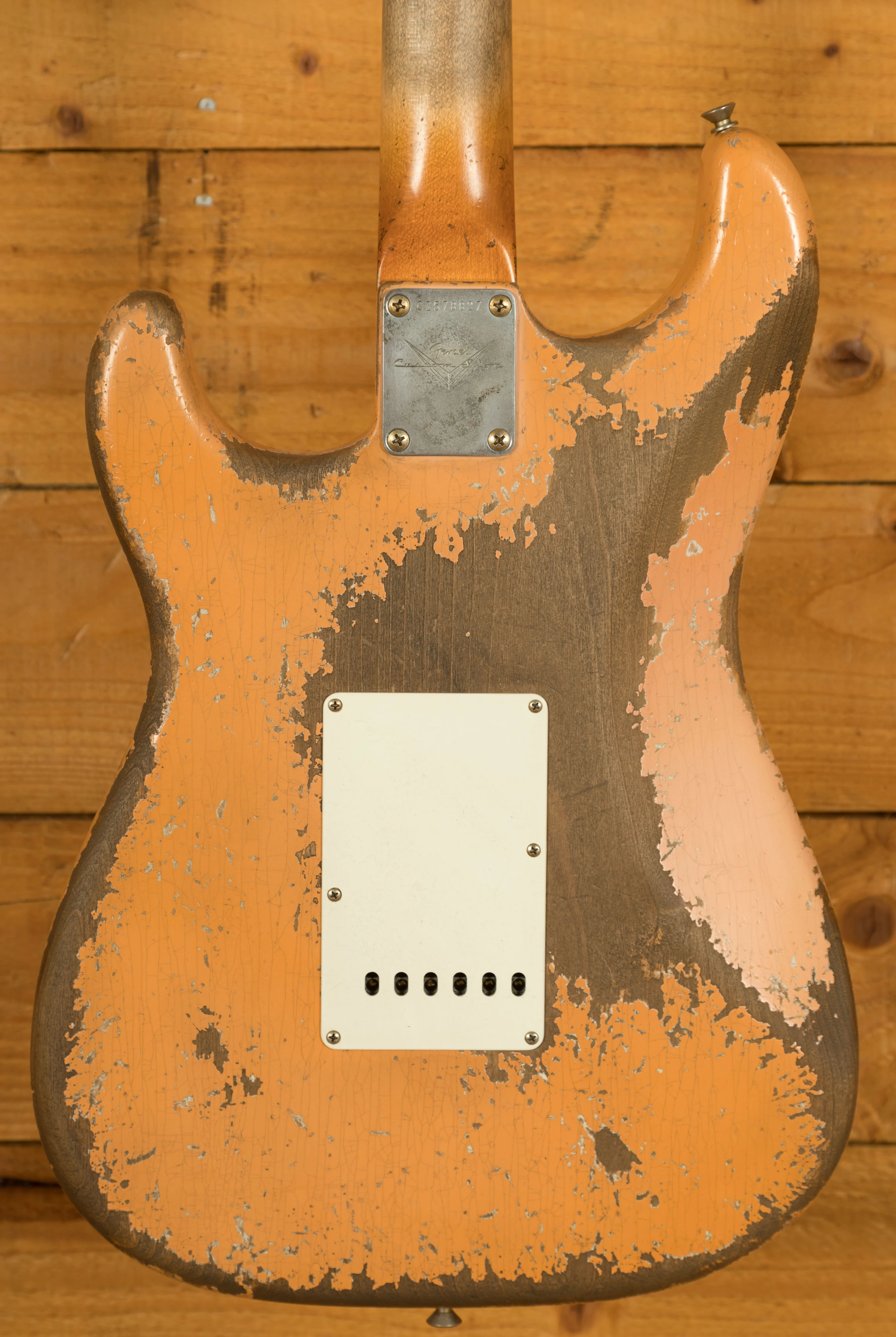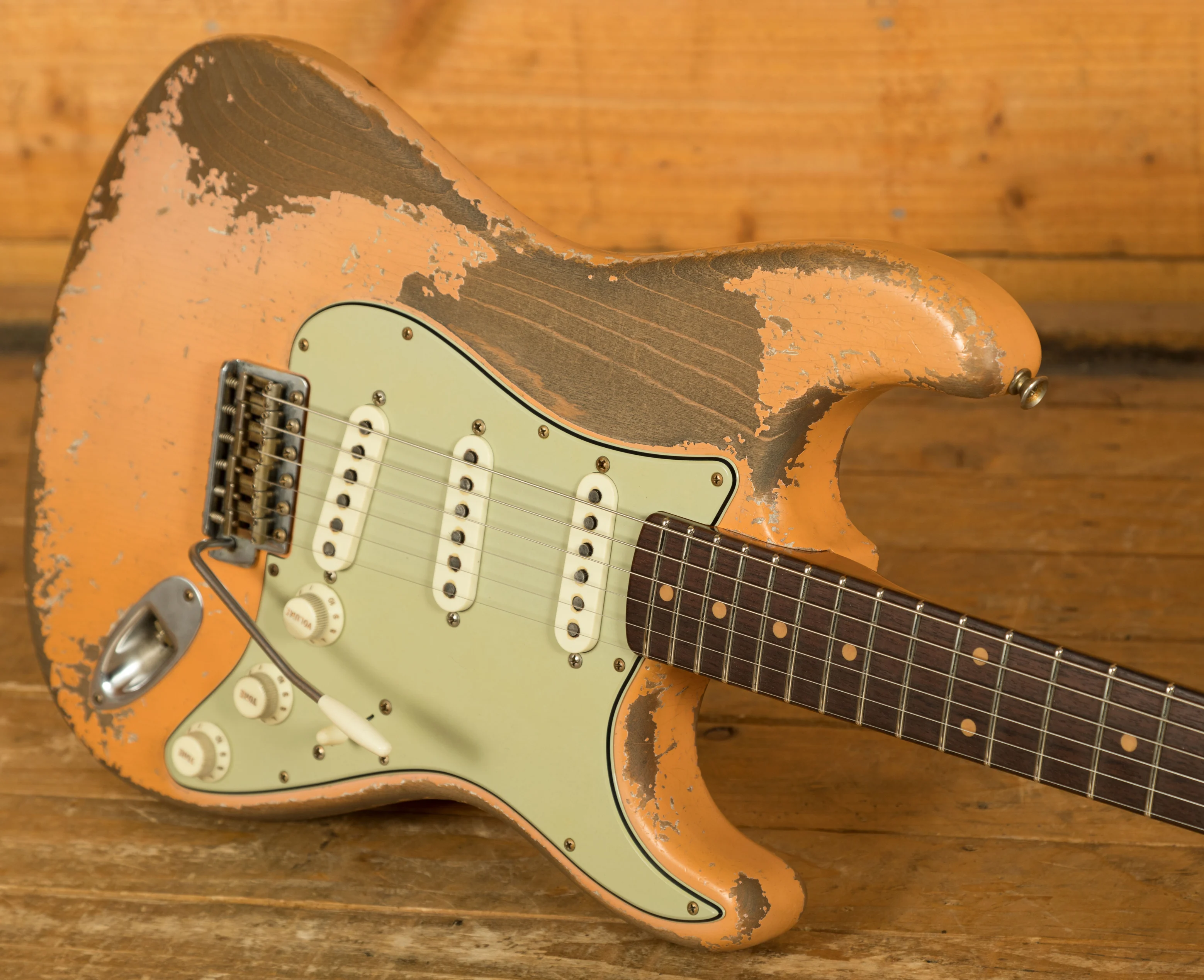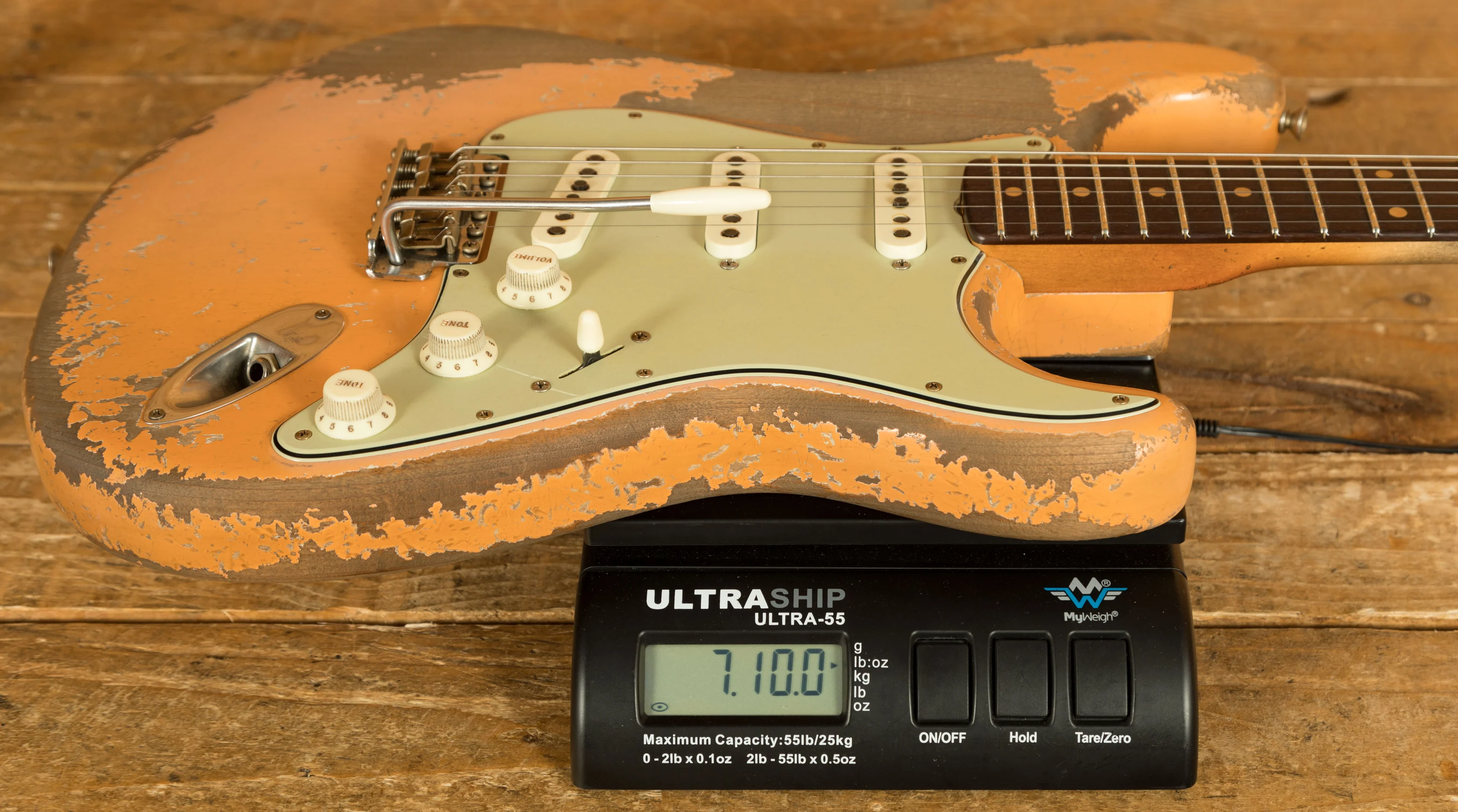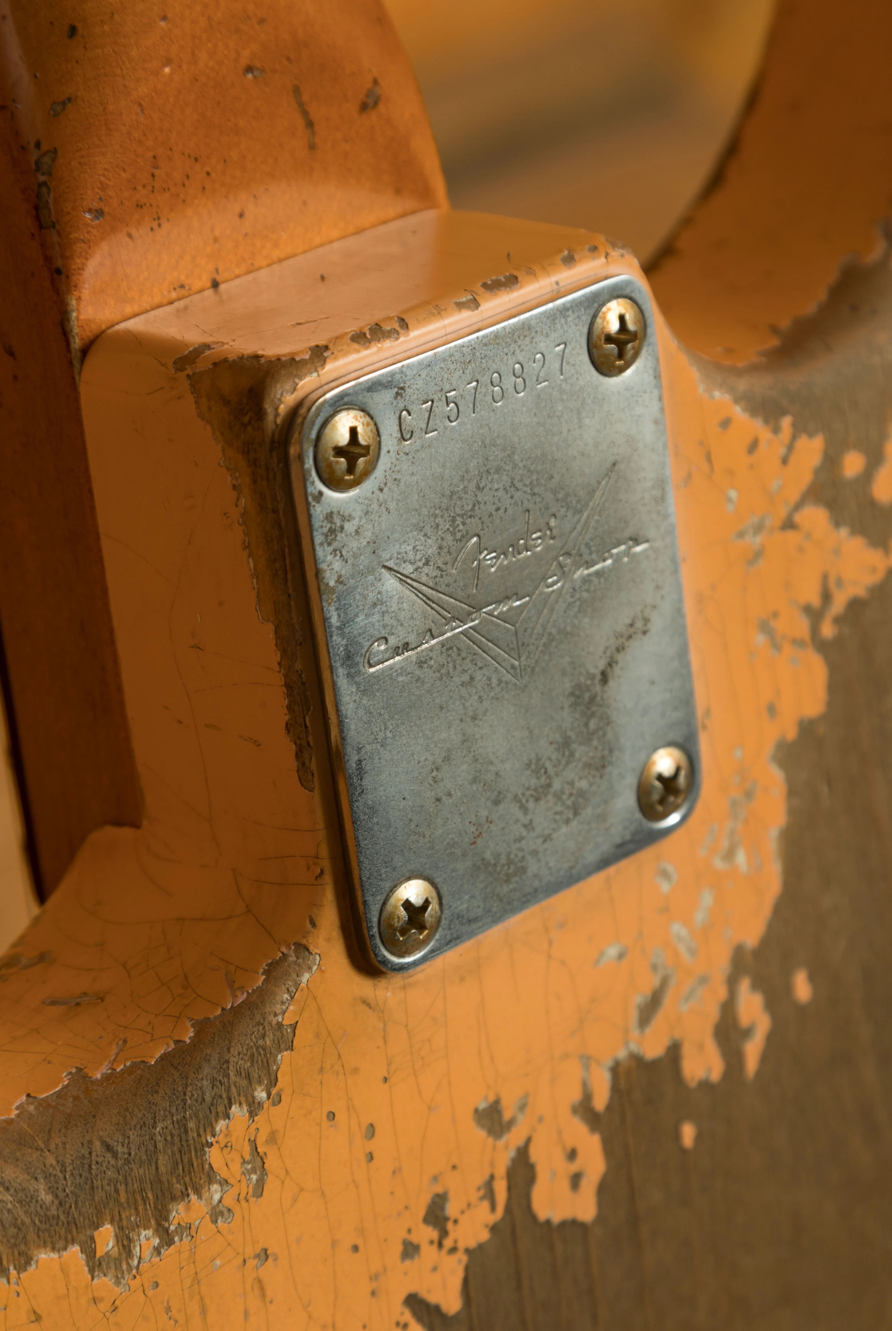 A sort for lightweight Alder body is finished in a super cool Shell Pink nitro lacquer. Heavily aged, this finish will wear beautifully with time and develop its own character even further. The thin nitro finish also allows the natural resonance of the body to sing and sustain much more effectively. Dale is the King of relic work at the custom shop and this certainly doesn't disappoint though!