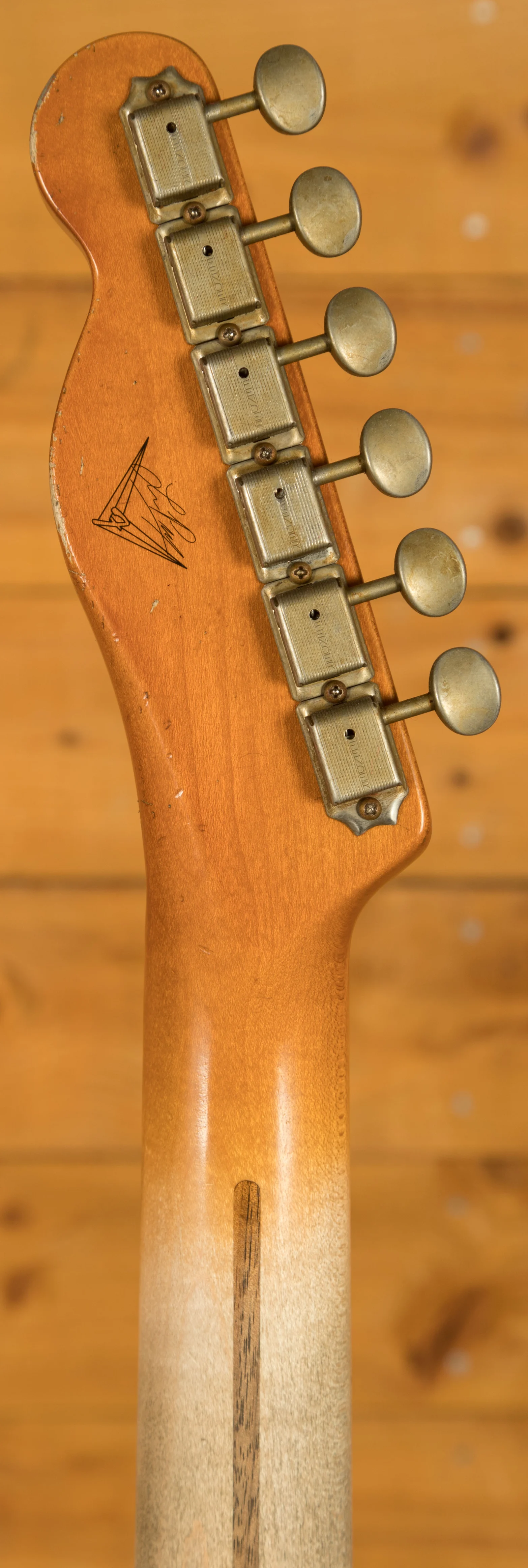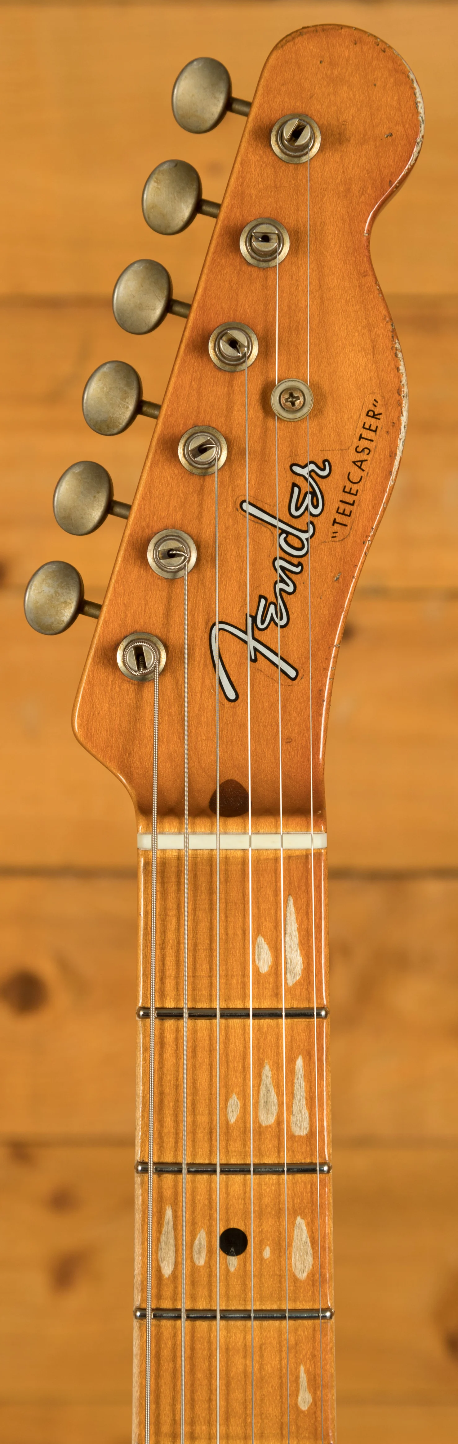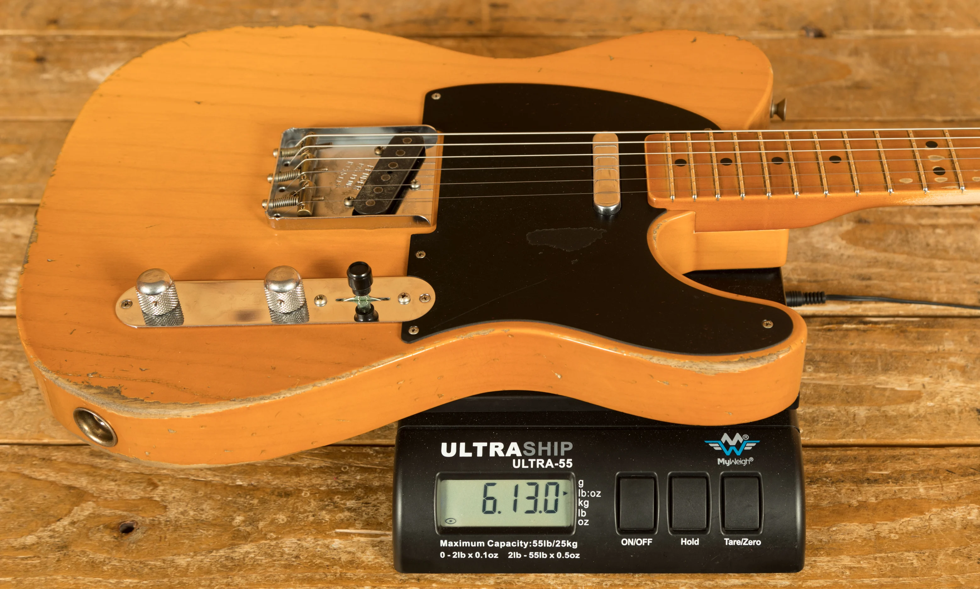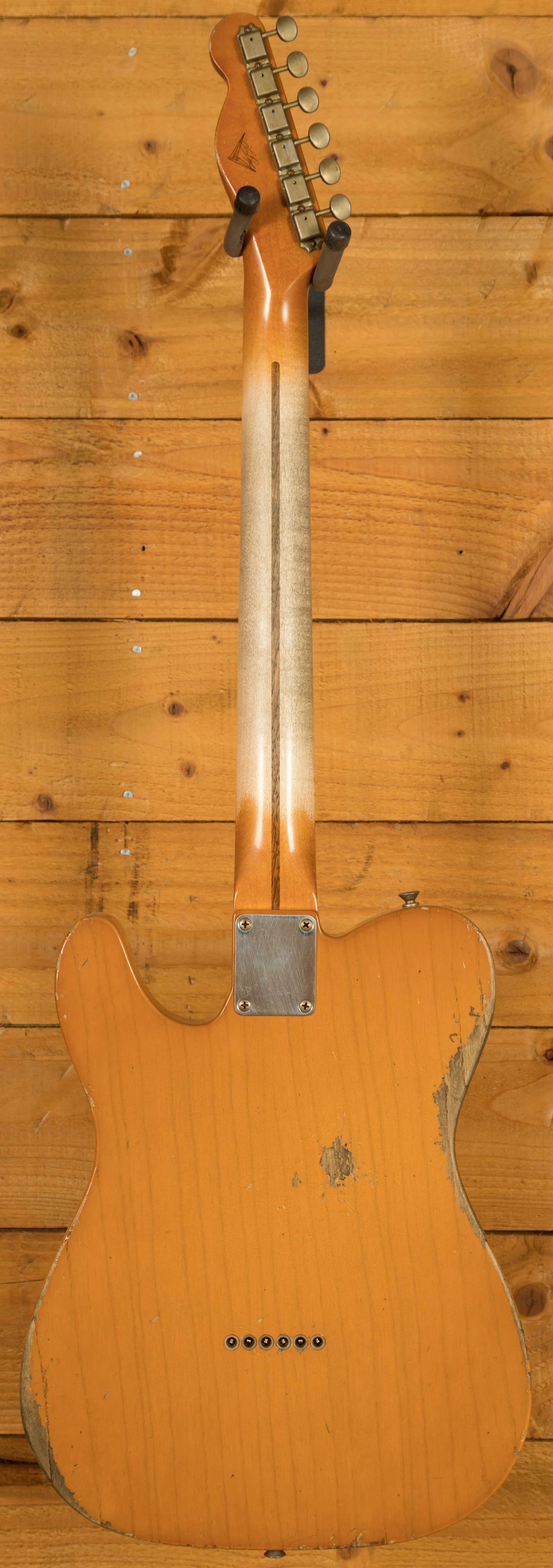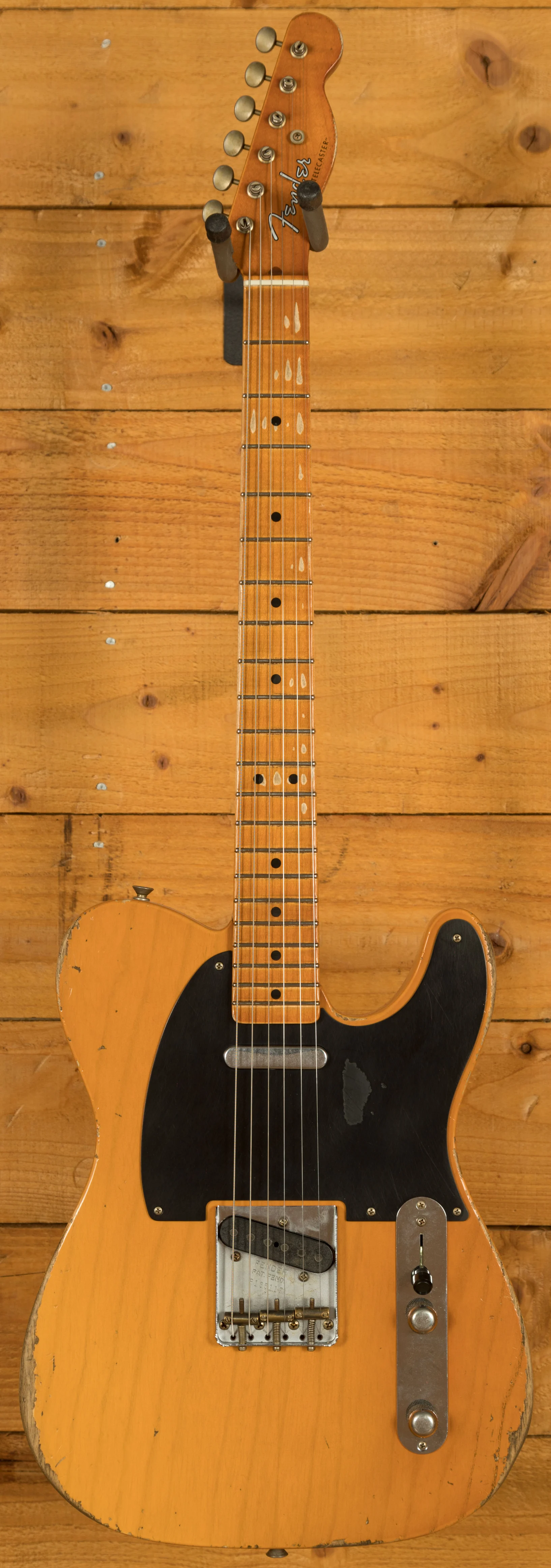 The foundation of this Telecaster is a carefully selected ash body. Ash, a tonewood favoured by Fender for decades, is known for its balanced tonal characteristics. It offers a resonant blend of brightness and warmth, with a well-defined midrange and a strong, clear low end. The hand-selection process ensures that only the finest ash, exhibiting optimal grain patterns,weight, and resonance was used for this exceptional Tele. The Relic Butterscotch Blonde finish gives the guitar the appearance of a well-loved and often-played instrument, complete with the subtle nuances of wear and tear that develop over years of use. This ageing process, painstakingly applied, adds a unique character and vintage vibe to the instrument. The finish checking, dings, dents, and worn areas all contribute to the story the guitar tells, giving it a sense of history and making it feel like a cherished instrument from the past. This Relic treatment extends to the neck, which boasts a '52 Tele Style "U" shape, providing a substantial and comfortable feel in the hand. The back of the neck is finished with a "Closet Classic Relic" and a worn and dirty look, enhancing the vintage aesthetic.