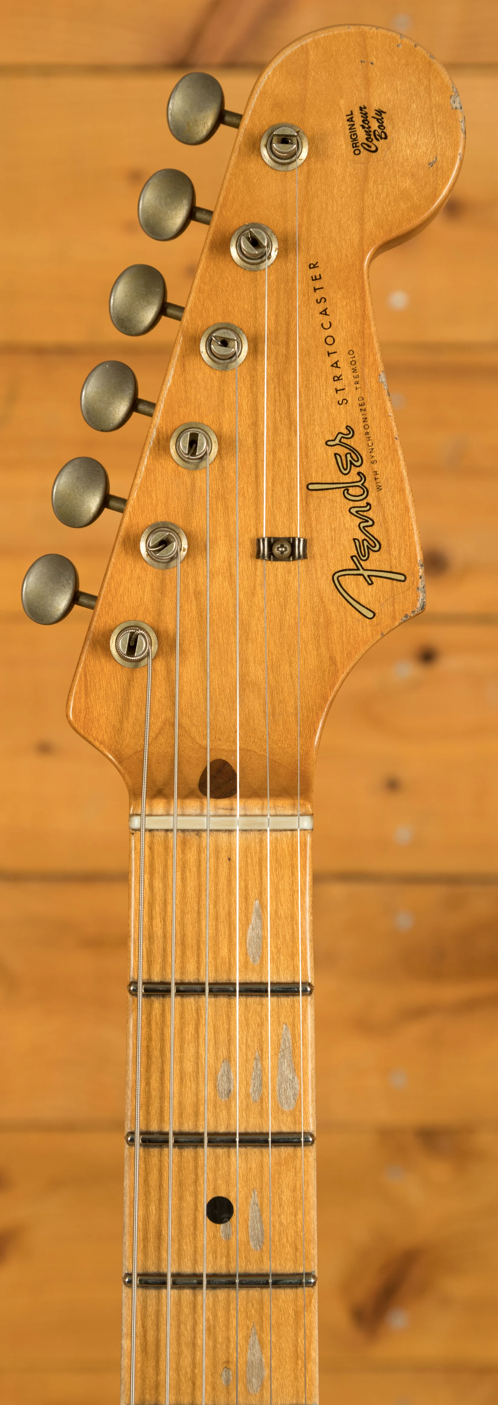 The medium tint Plain Grain Maple neck has a smooth finish. With a matching fingerboard, 10.5" radius, and 21 jumbo frets, the '56 Custom Shop Stratocaster can handle anything you throw at it without even breaking a sweat; it's supremely comfortable and well balanced. The 10/56 "V" neck profile is extremely comfortable and easy to play. It measures .880" at the 1st fret and .980" at the 12th fret.