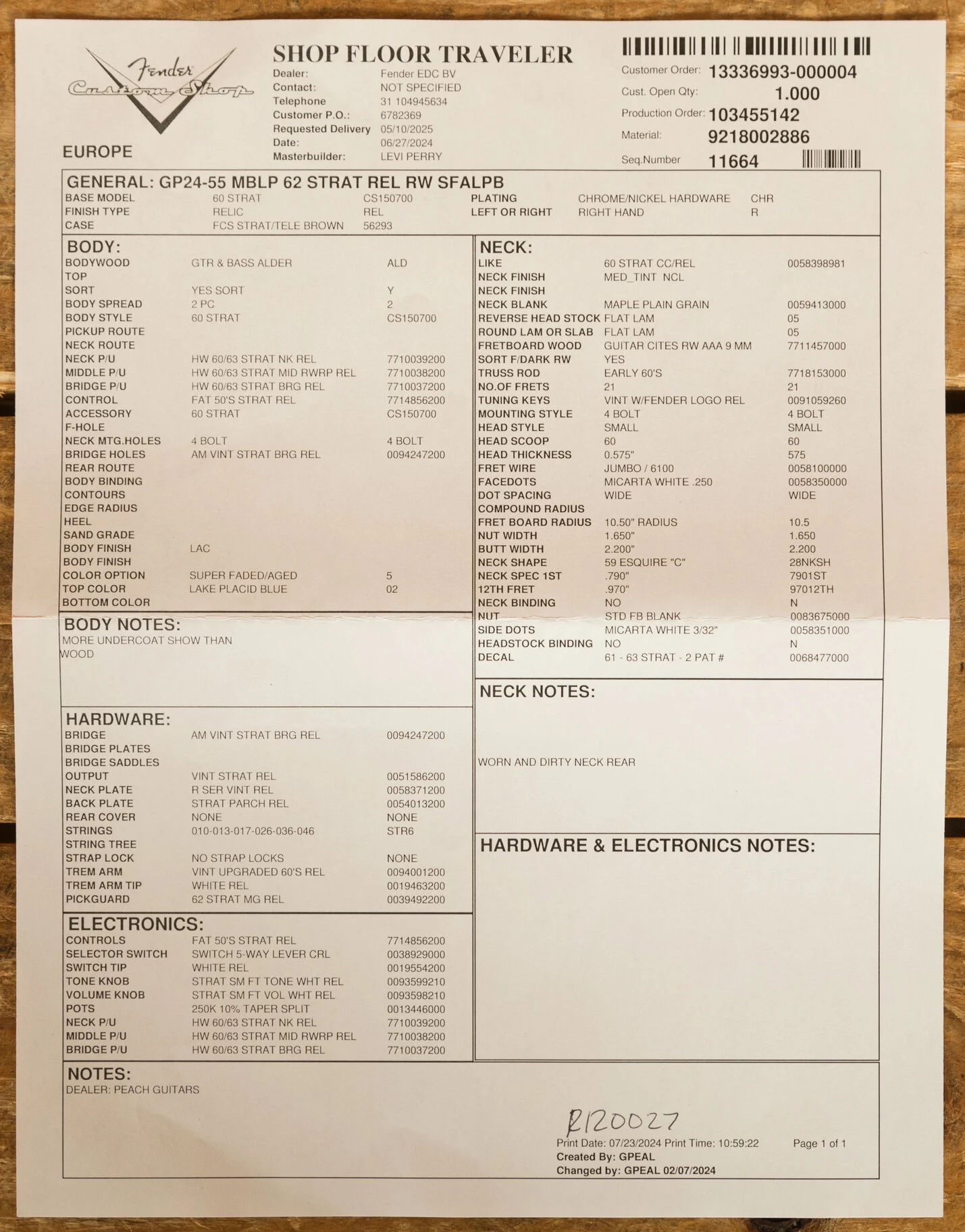 Levi is the heir to the DW and VVT Fender CS Masterbuilder throne!