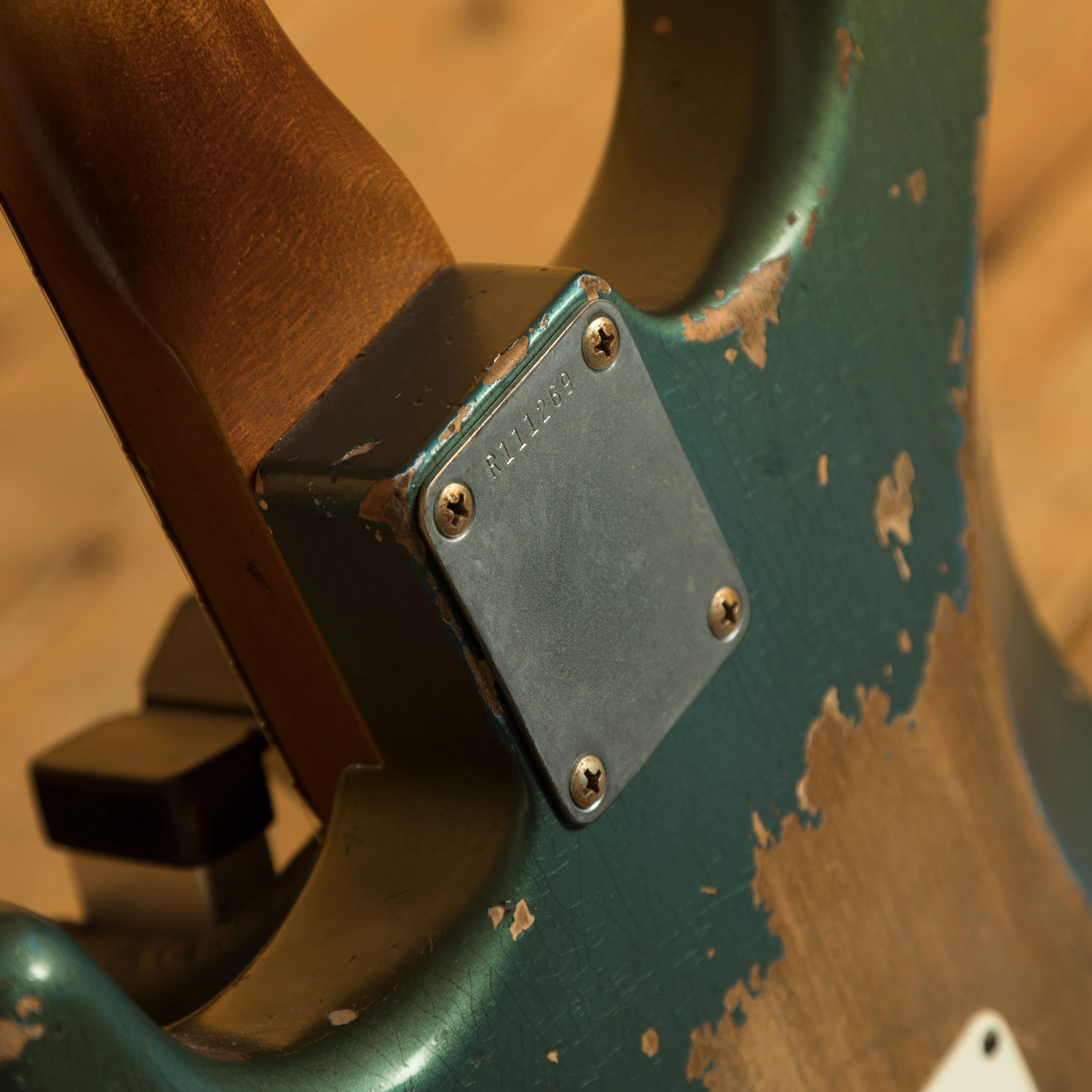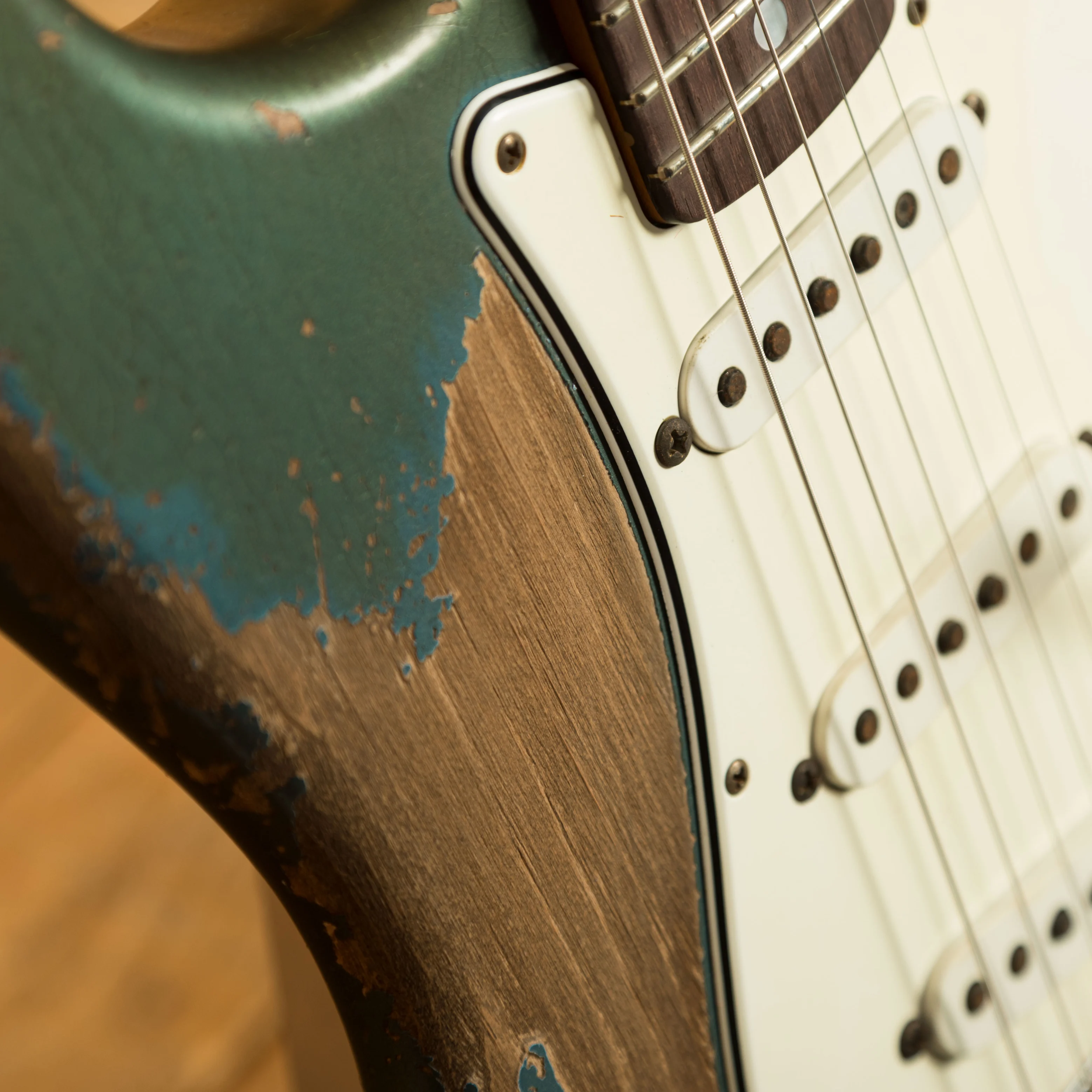 An Alder body is finished in the super sweet Aged Lake Placid Blue, one of Fender's most loved finish options, it's a real beauty! Authentically aged, this finish will wear beautifully with time and develop its own character even further. The thin nitro finish also allows the natural resonance of the body to sing and sustain much more effectively. Vincent is one of the Kings of relic work at the custom shop and this certainly doesn't disappoint though!