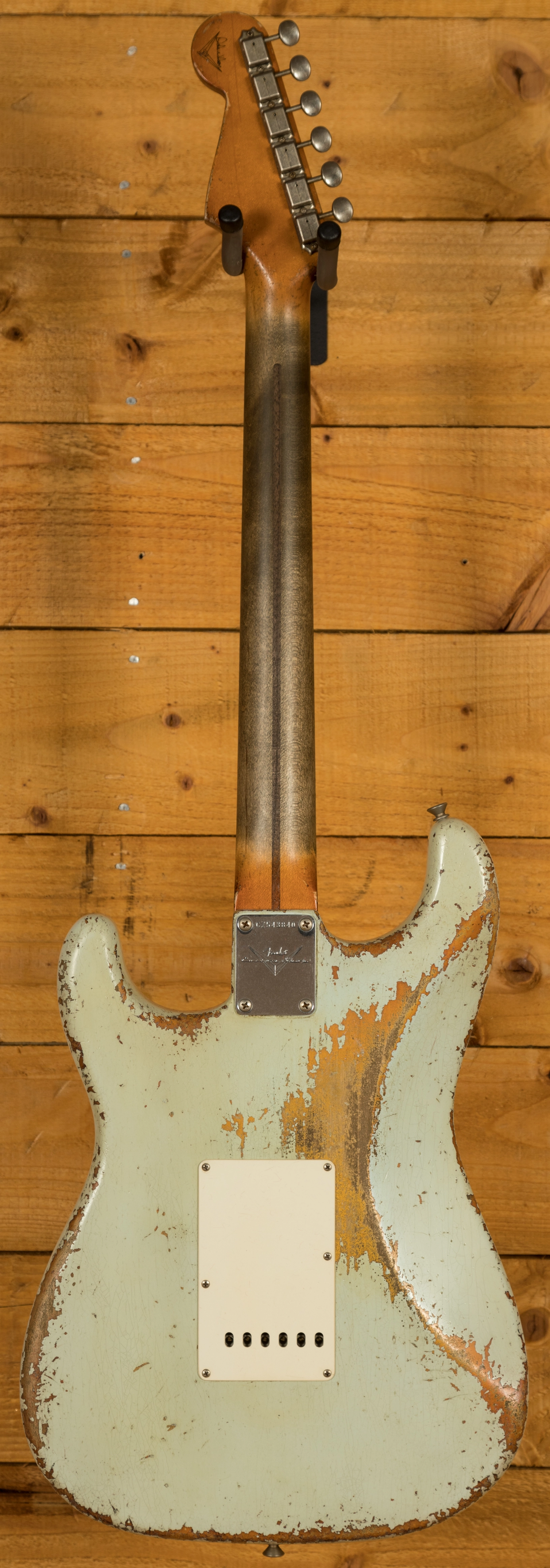 An Alder body is finished in a custom Master Builders choice colour over 3-Tone Sunburst, it's a real beauty! Authentically aged, this finish will wear beautifully with time and develop its own character even further. The thin nitro finish also allows the natural resonance of the body to sing and sustain much more effectively. Dale is the King of relic work at the custom shop and this certainly doesn't disappoint though!