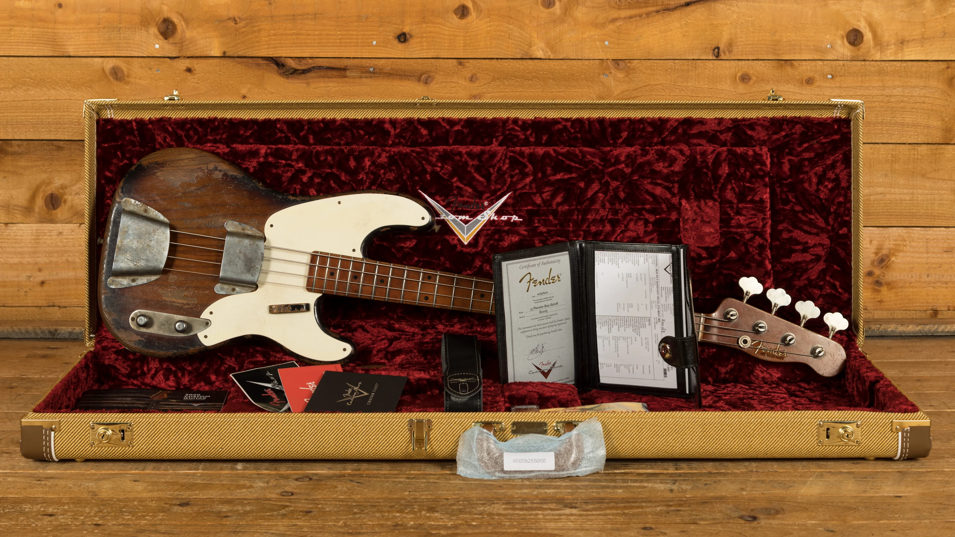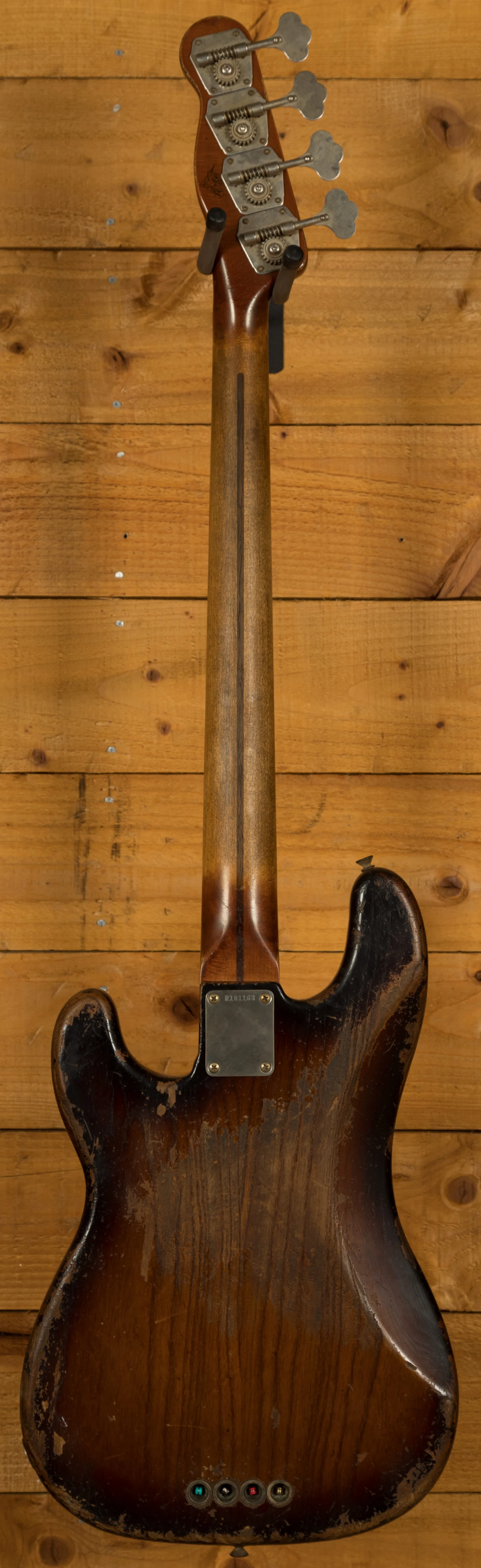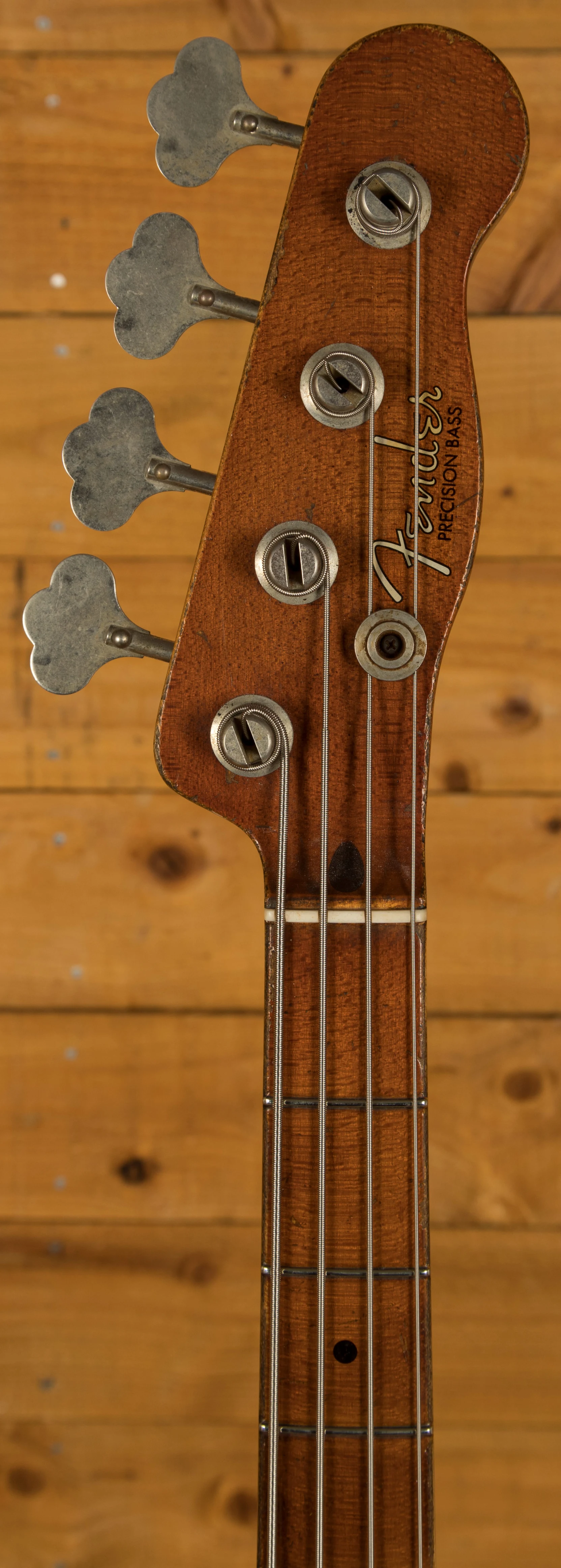 Loaded with a Custom Shop '55 Handwound Precision Bass pickup, you get period correct Fender tone, theres just no mistaking that signature Fender bass thump! it really does give off the vintage vibe. Vintage 55 P-Bass machine heads and a 55 P-Bass relic bridge deliver ultimate tuning stability and intonation.