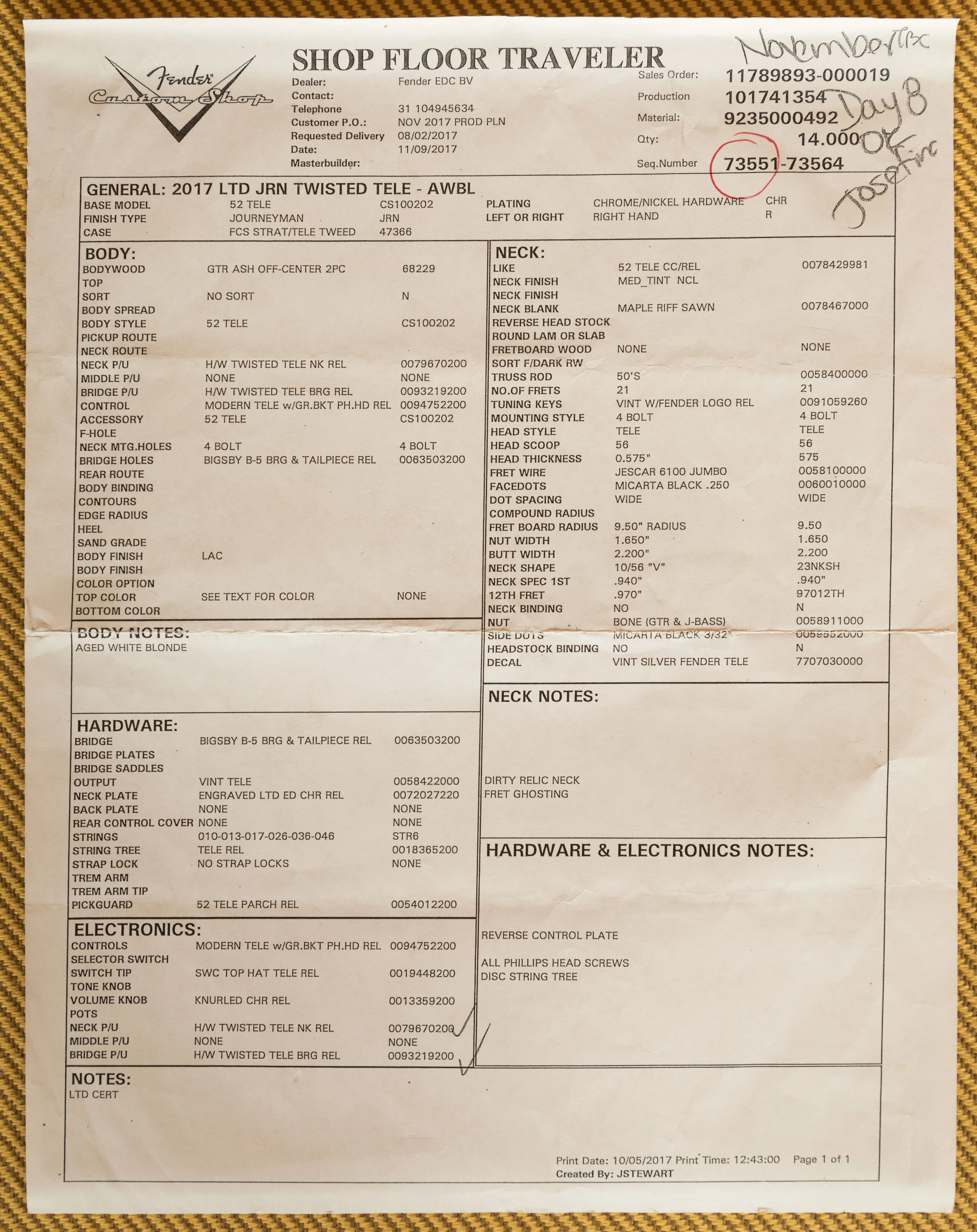 Pickups: HW Twisted Tele with Modern Tele Contols w/Gr.BKT