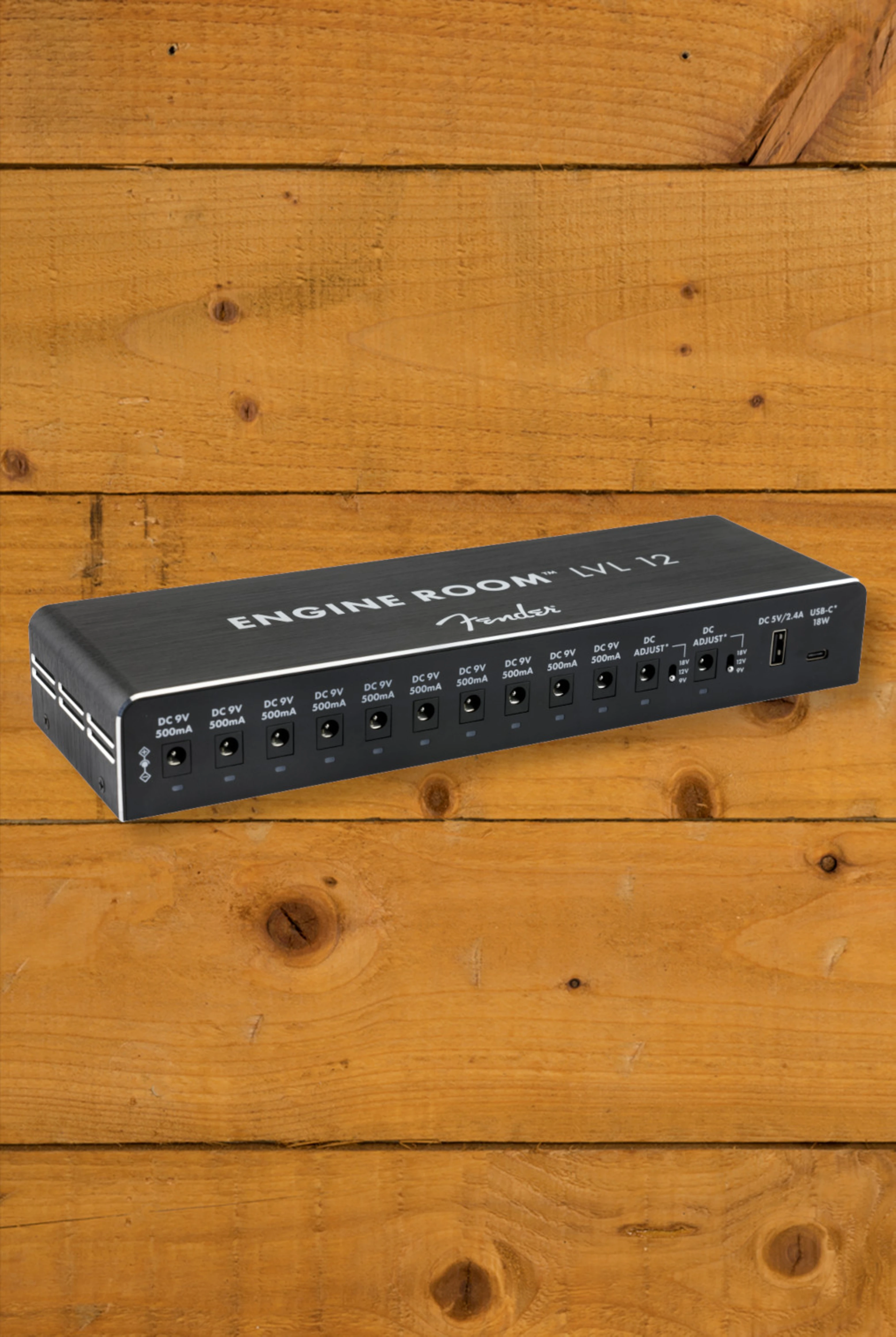 The Engine Room Power Supply was designed by Fender's in-house team of experts in Southern California. The chassis is crafted from lightweight, durable anodised aluminium, and its sleek, low-profile appearance is engineered to accommodate most pedalboards. Road-tested and ready for live or studio use, Fender's Engine Room Power Supply is built to power your performance.