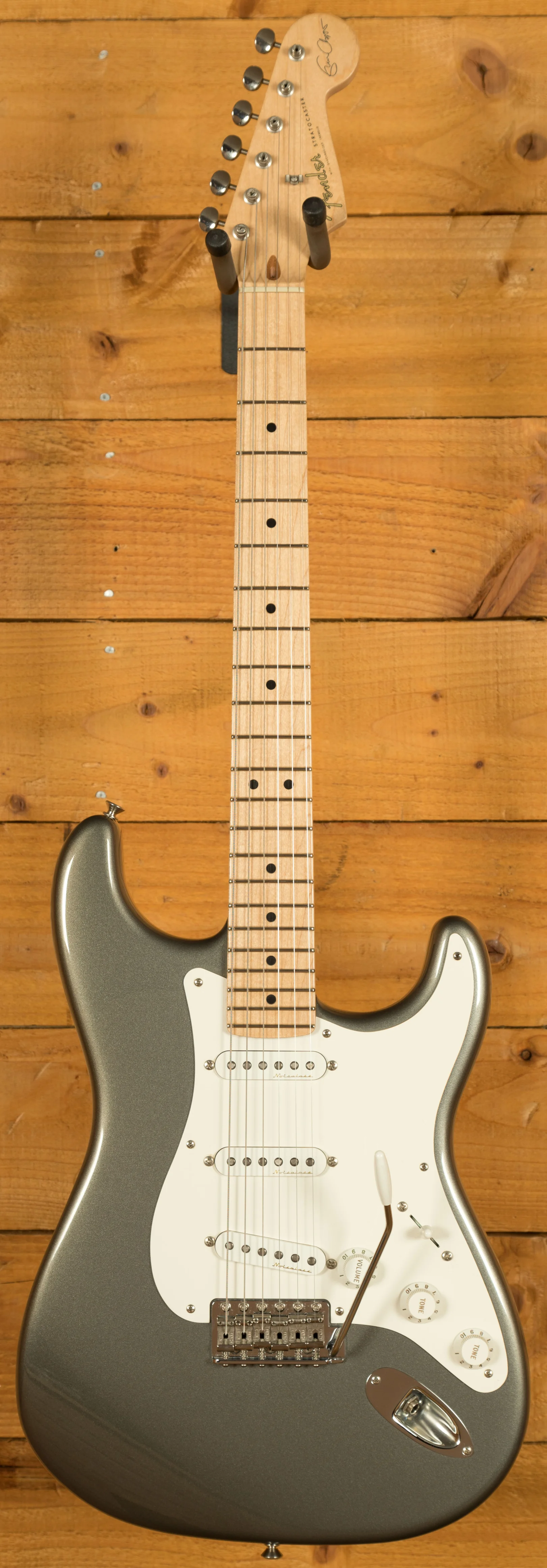 Fender Eric Clapton Strat from 2018, finished in Pewter. This guitar is in good condition, with a few marks here and there.