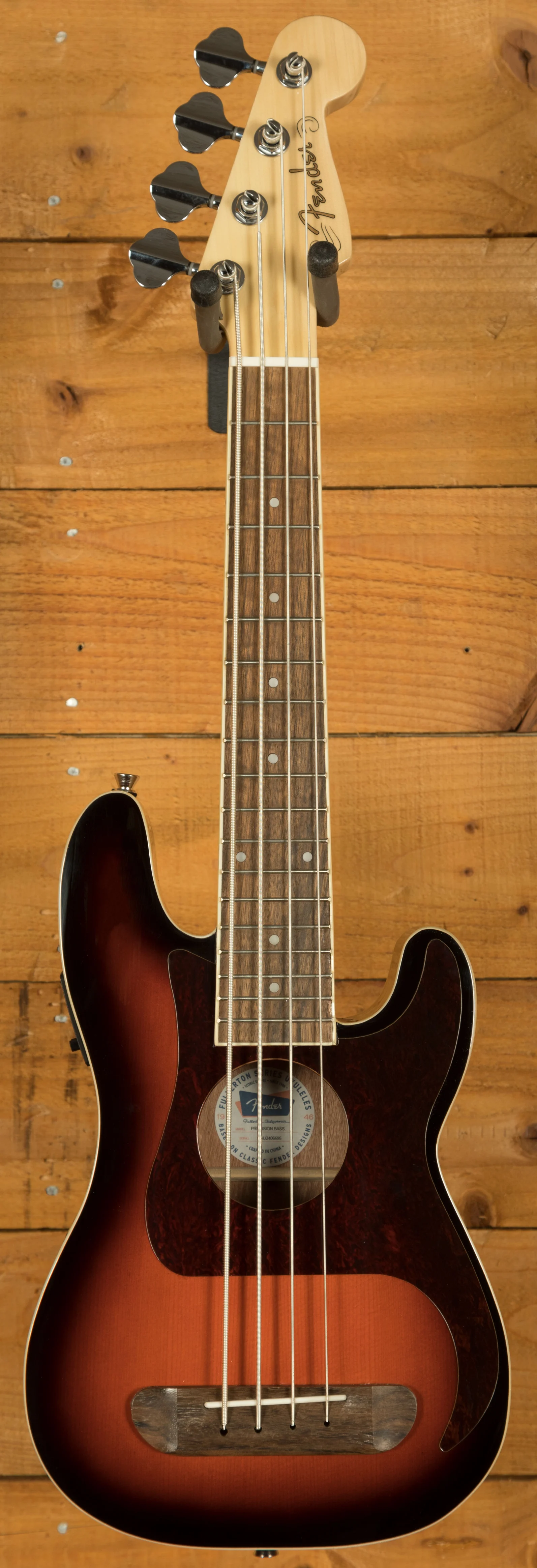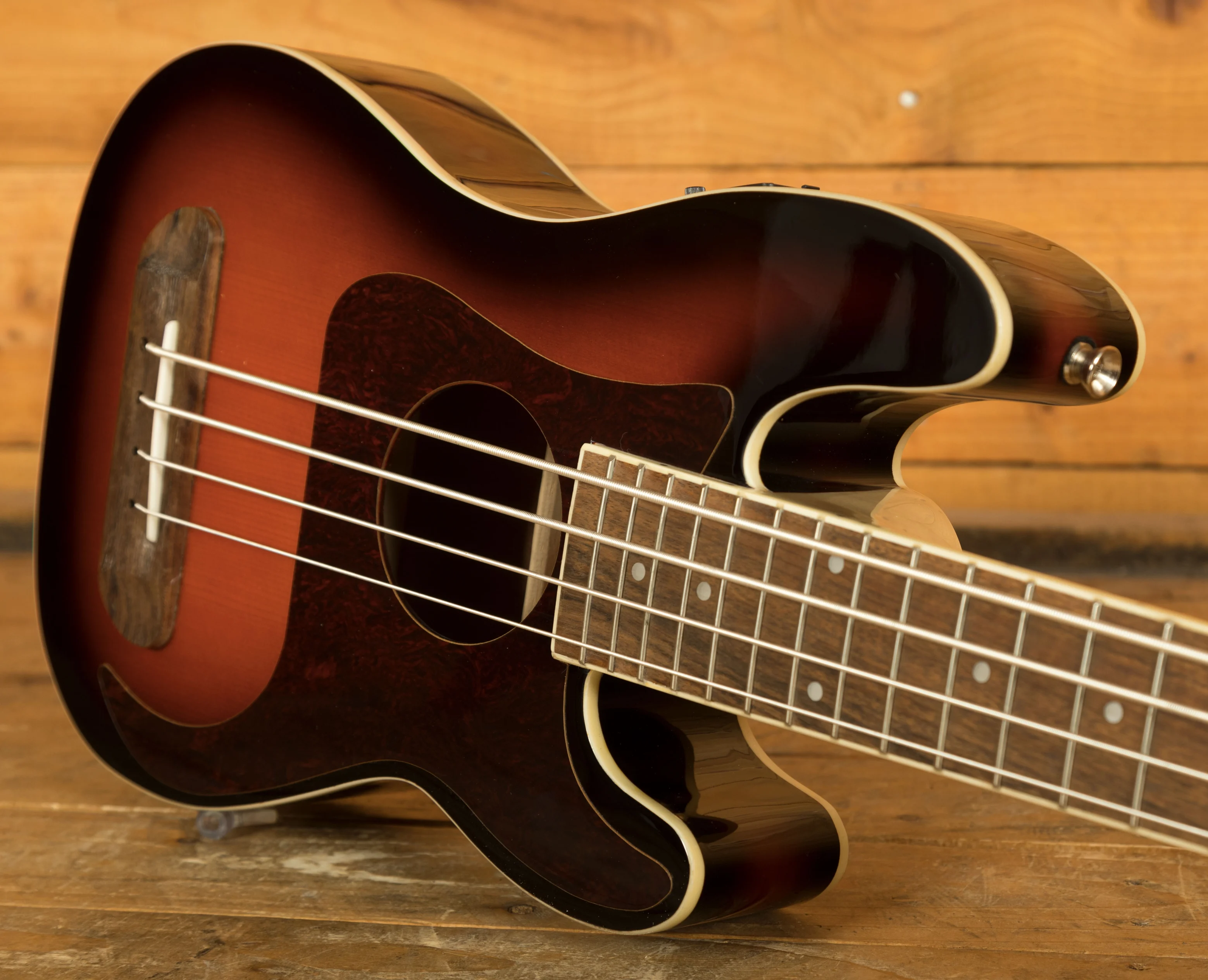 The Fender Fullerton Precision Bass Ukulele offers a compact, portable version of Fender's iconic electric bass design. With a 20.25" scale length, this ukulele is easy to handle and lightweight, making it ideal for musicians on the go. Its user-friendly size ensures that it is comfortable to play for extended periods, whether at home, in the studio, or on stage.