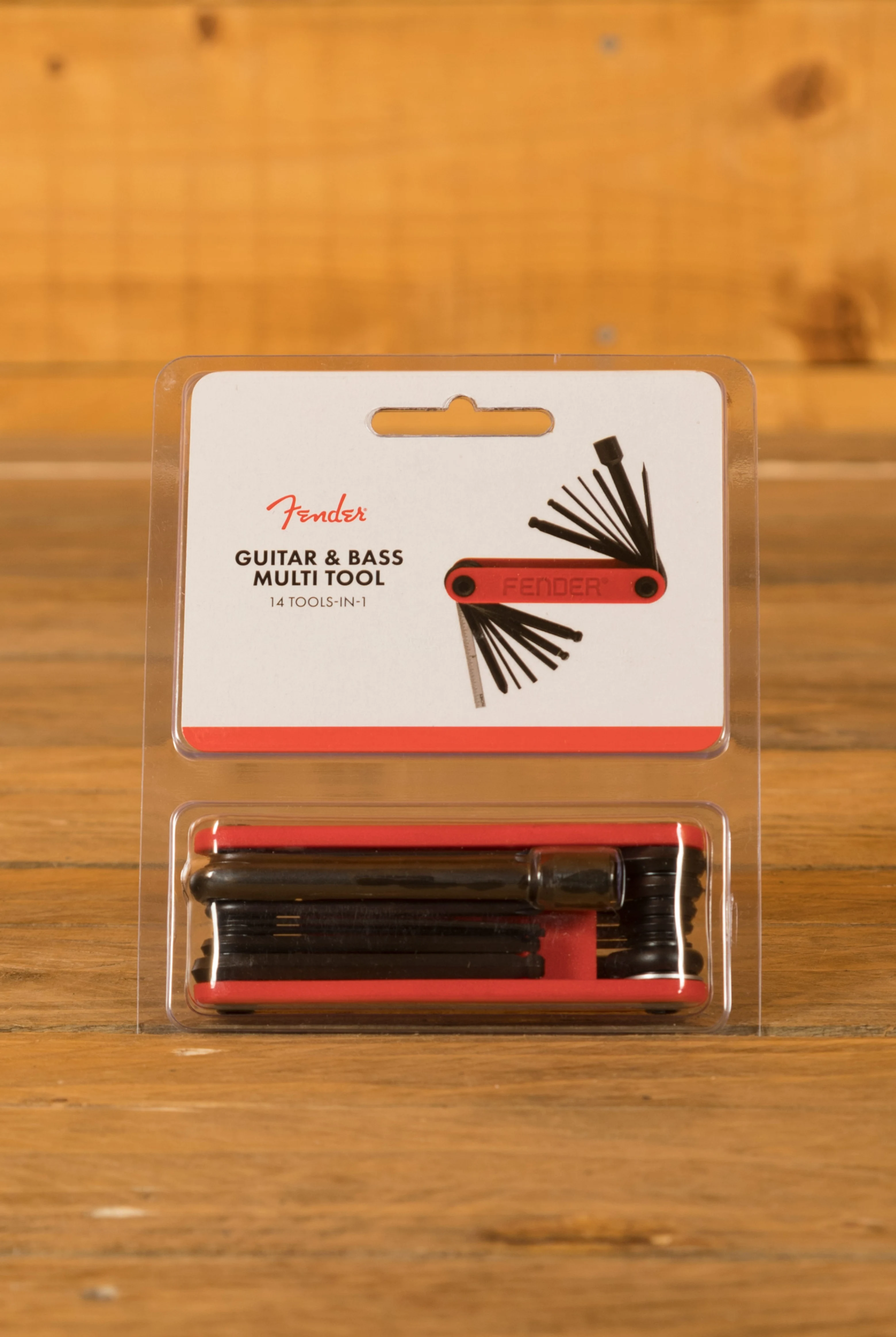 This Guitar and Bass Multi-Tool has 14 different uses! It includes a number of different Hex Wrenches, Screwdrivers, Truss Rod Sockets and a Precision Ruler. Everything you need to get your guitar in top playing shape