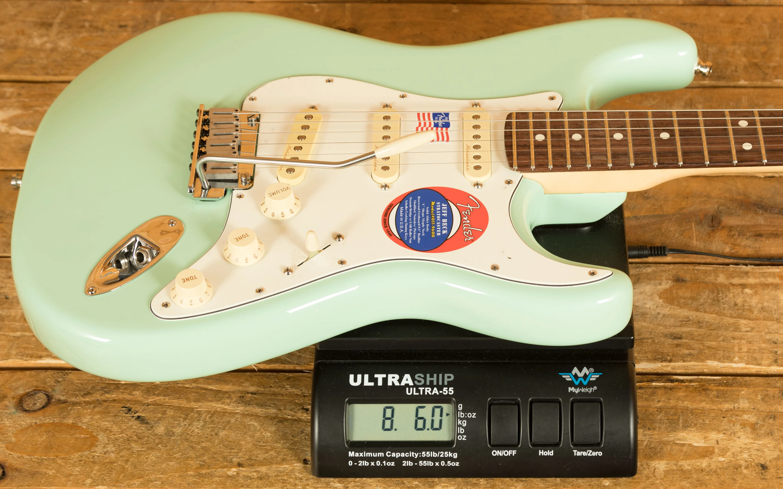 The Fender Jeff Beck Stratocaster in Surf Green is a tone-rich, stage-ready instrument designed to meet the demands of Jeff Beck's dynamic playing style. With its alder body, rosewood fingerboard, and Hot Noiseless pickups, it delivers articulate highs, punchy mids and smooth sustain - all without the hum.